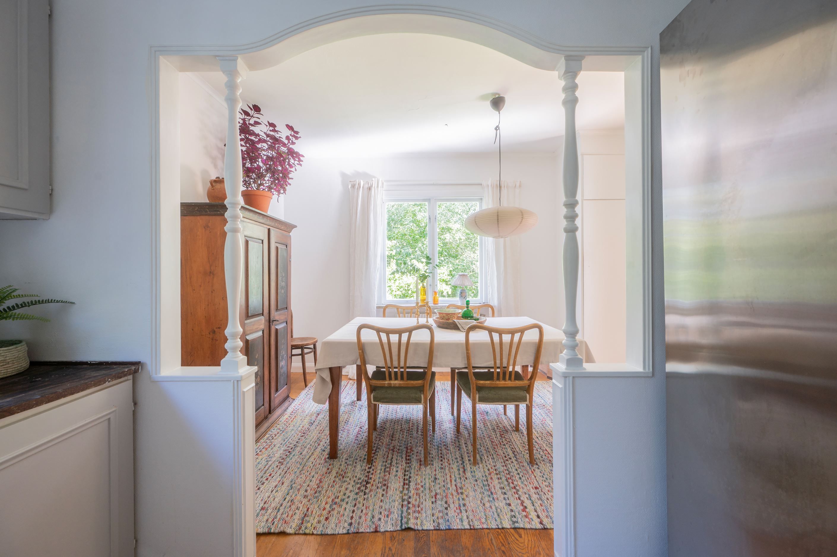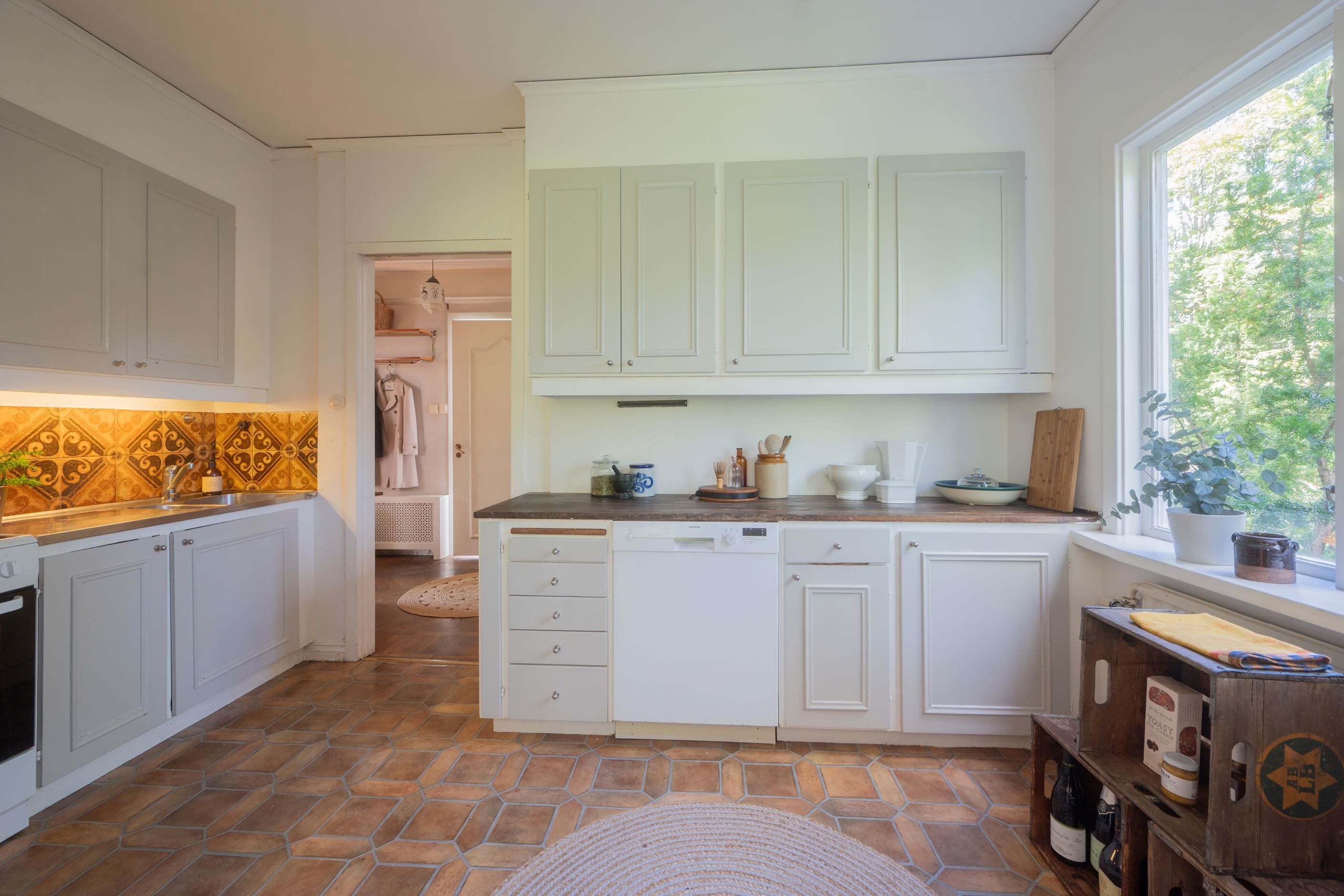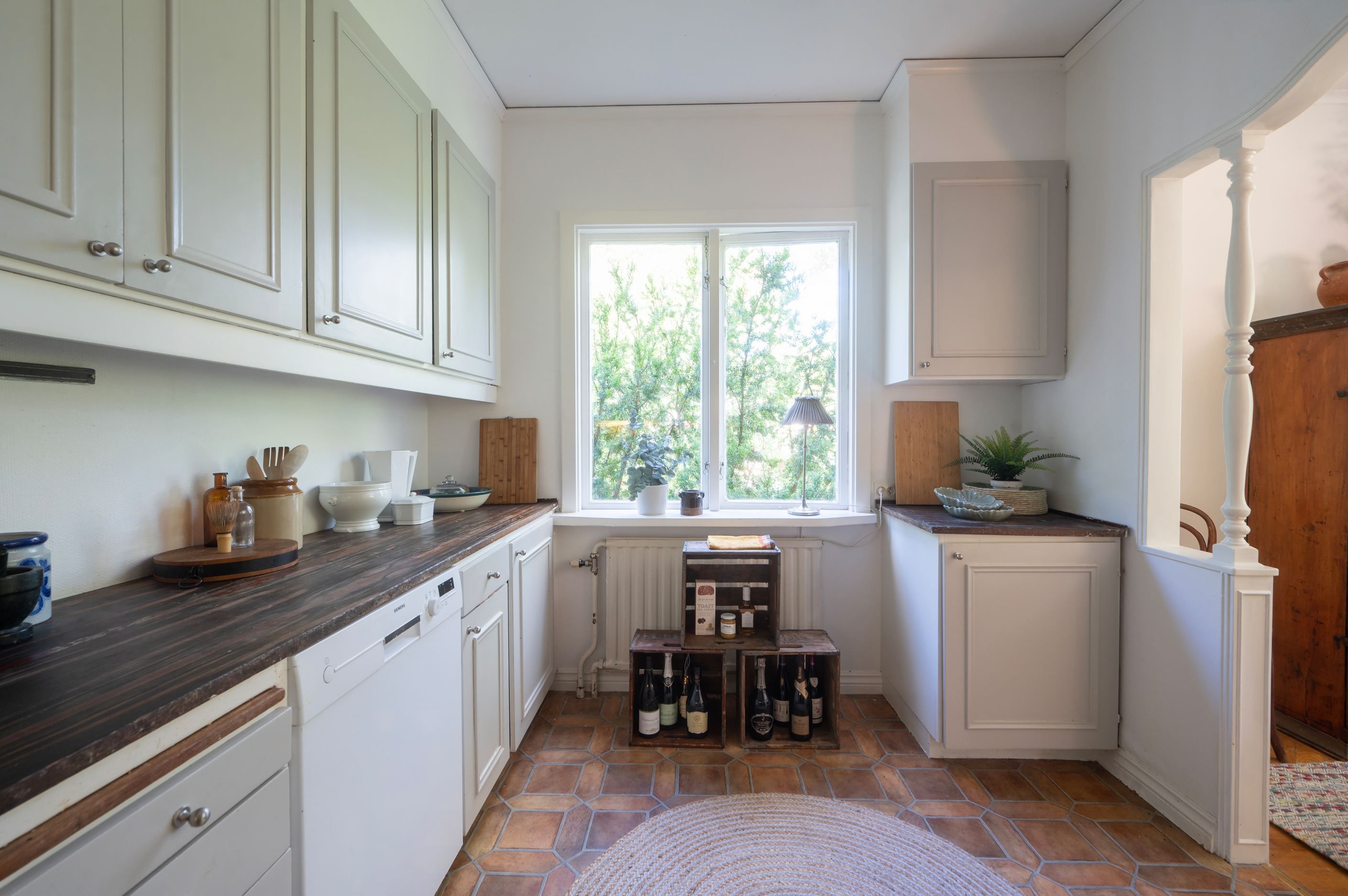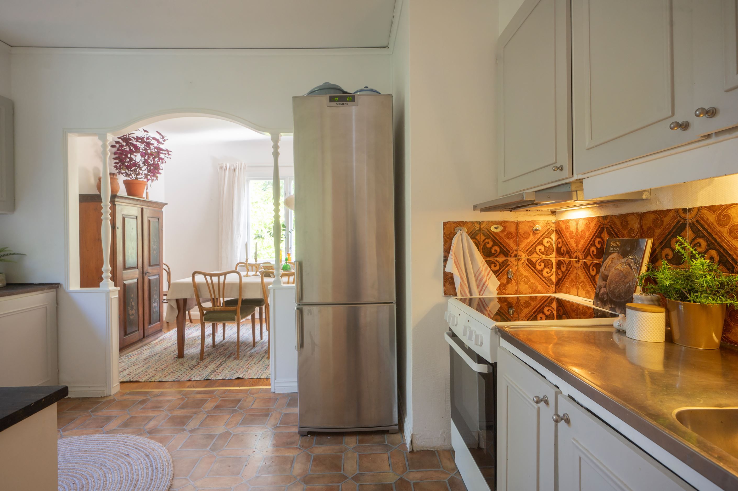 Entréplanet bjuder in till fina sällskapsytor med ett vardagsrum som har en braskamin, perfekt för både mysiga kvällar och som värmande tillskott under årets kalla månader. Här finns också en ljus och inbjudande matsal samt ett kök med plats för ett mindre matbord.