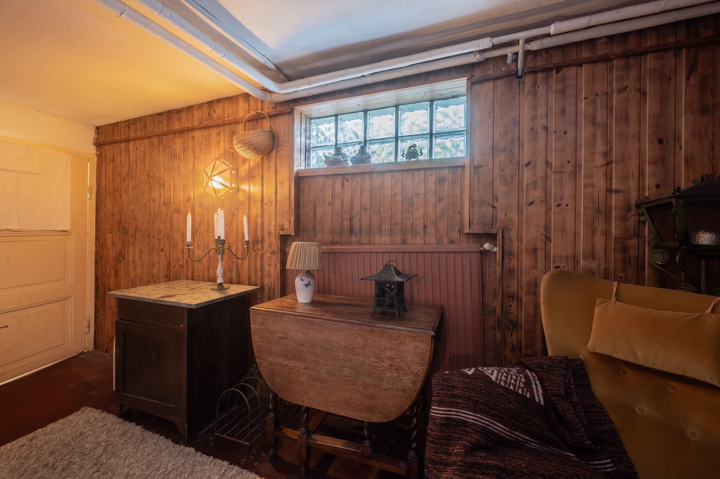 Nedre plan rymmer gott om förvaringsutrymmen samt en praktisk tvättstuga med dusch, bastu och separat WC. Det före detta garaget är idag inrett till ett extra rum/förråd och kan användas flexibelt efter behov.