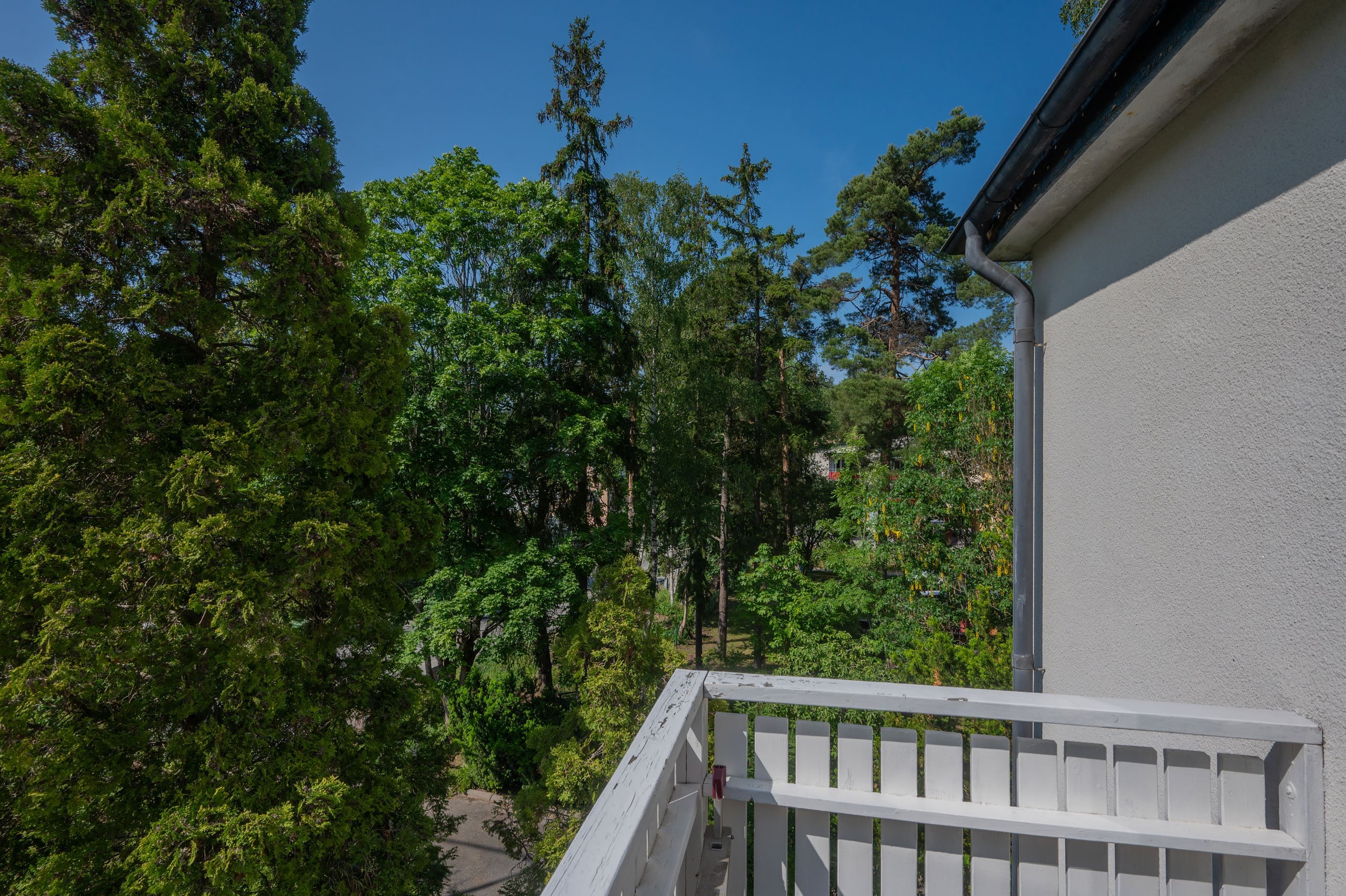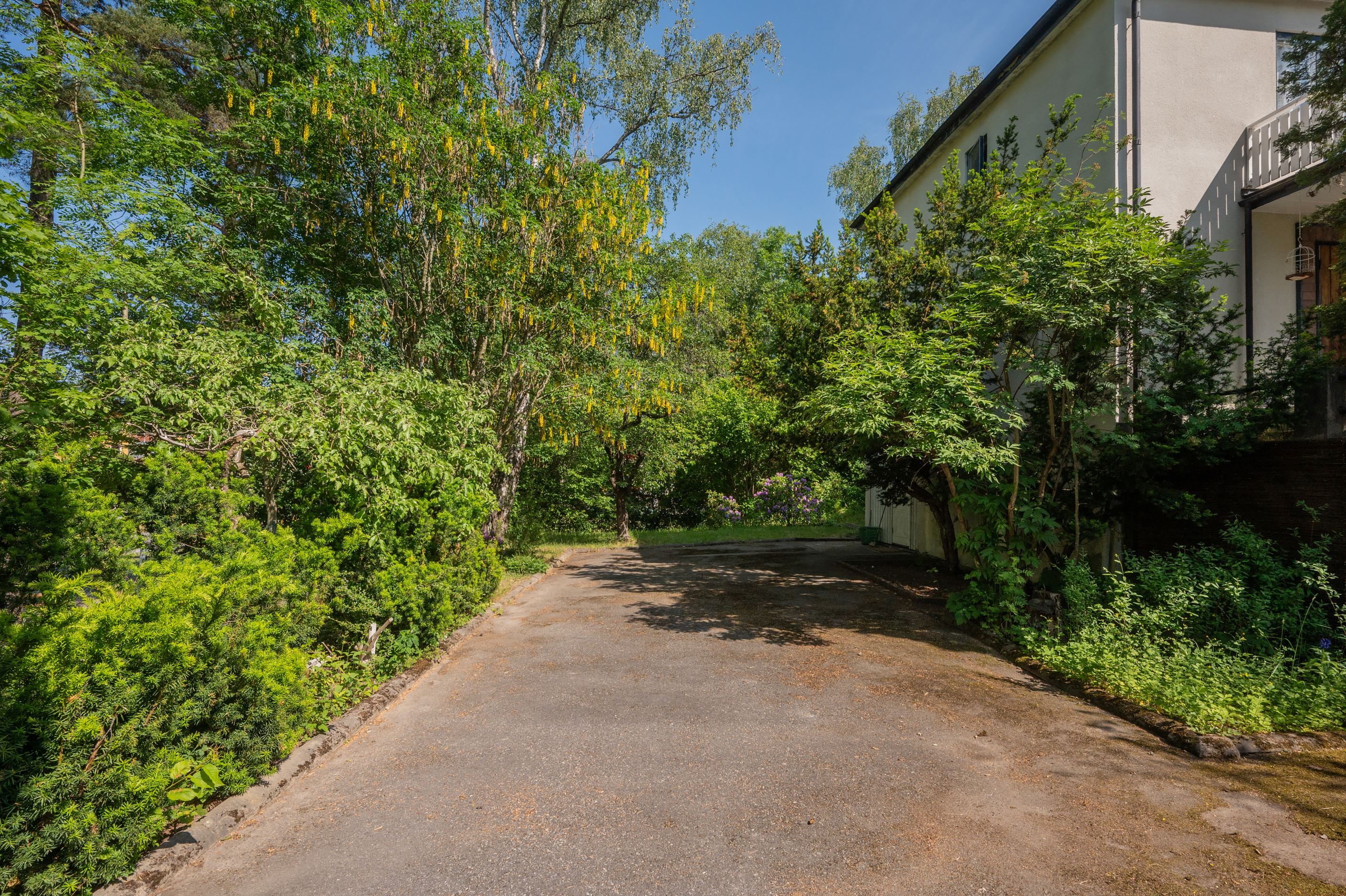 "Villan är granne med Älvsjöskogen naturreservat. För den som vill ut och springa eller promenera finns elljusspår på 1.8 resp 3.8 km strax utanför dörren, vintertid finns där även möjlighet till skidåkning.