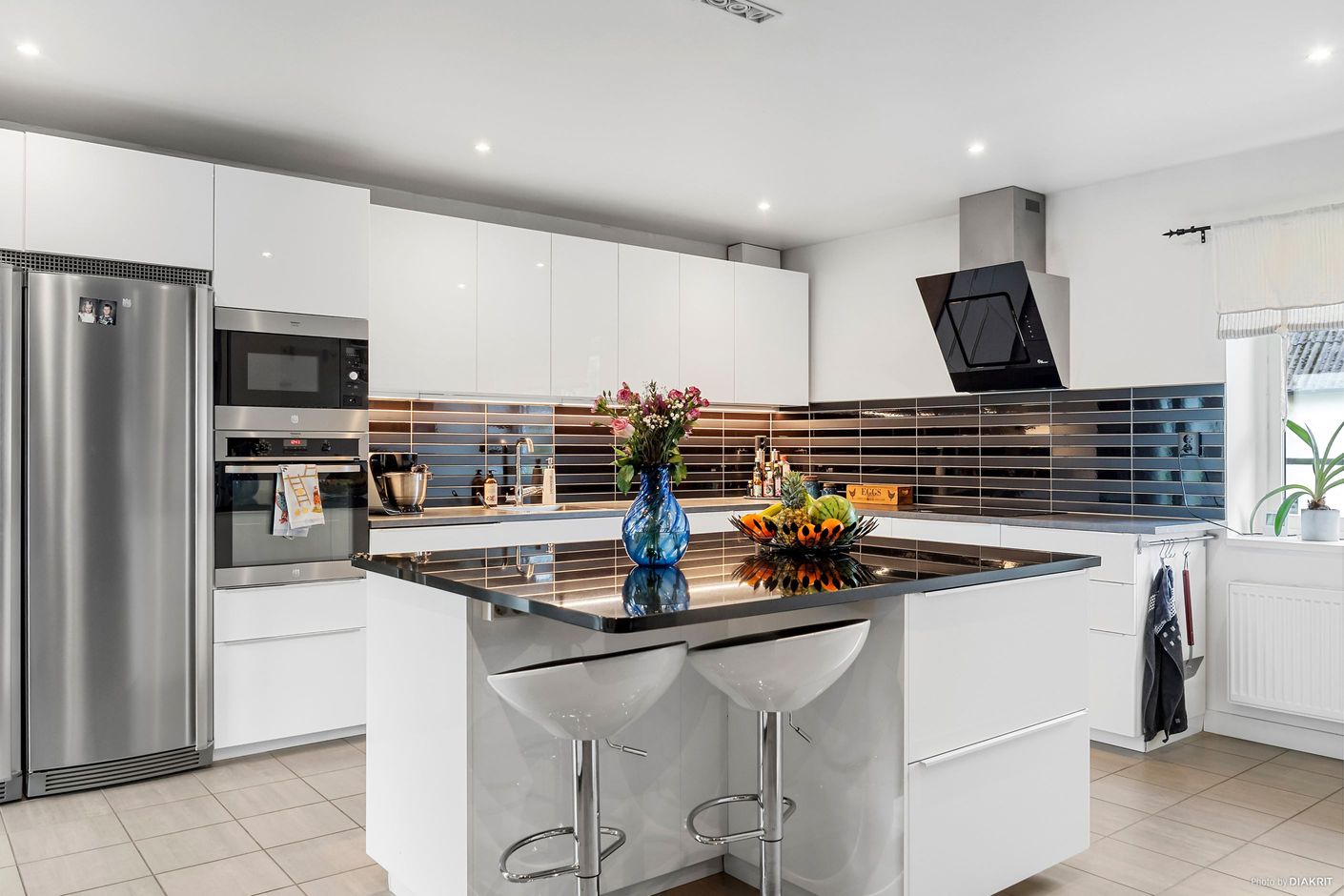 Utöver den välskötta bostaden finns flera unika inslag som gör fastigheten till något alldeles extra. Ett stort orangeri på hela 140 kvadratmeter med kamin och vinranka, skapar en atmosfär som för tankarna till Medelhavet – en plats att njuta av året om. Här finns även ett privat gym, garage, uterum, solcellsanläggning, fiberanslutning och laddare för elbil – allt för att möta moderna behov med stil. Det har genomförts besiktning, energideklaration samt areamätning på fastigheten.