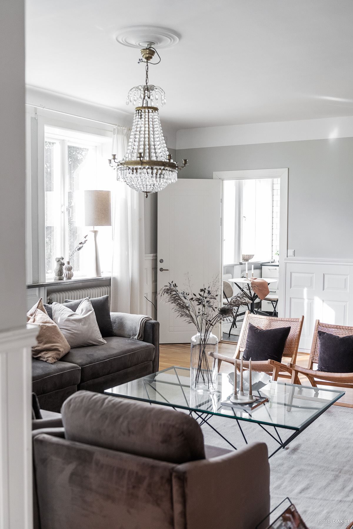 På entréplanet möts du av en imponerande hall med högt i tak och vackra detaljer som påminner om fastighetens banktida. Här finns flertalet sovrum, perfekta för en stor familj eller att använda som gästrum eller kontor. Sociala ytor är generöst tilltagna, med stora fönster som släpper in rikligt med naturligt ljus. Vardagsrummet är en inbjudande plats för avkoppling och umgänge, med plats för soffgrupp och möblemang. Köket är rymligt och ljust, med gott om utrymme för matlagning. Här finns även fina detaljer bevarade från banktiden, som ger en unik prägel åt bostaden.
