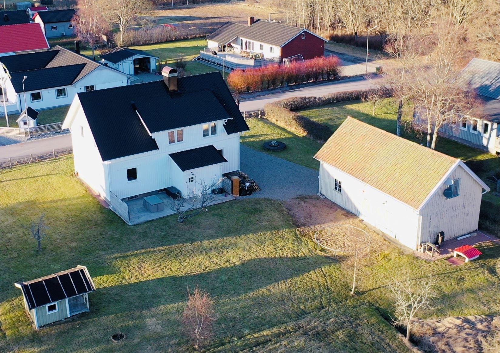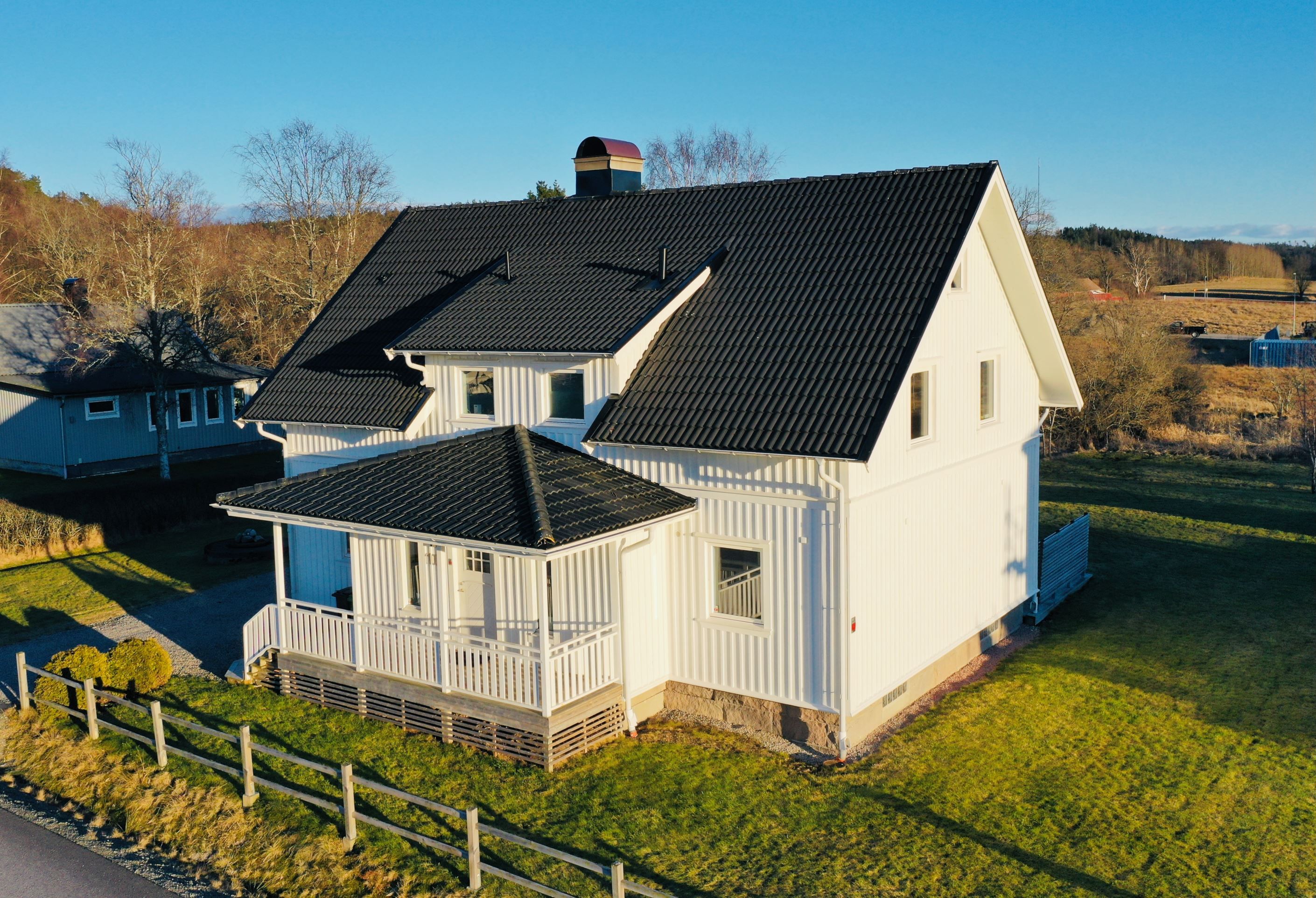 På utsidan har du en fin altan i anslutning till groventré och gräsmatta. Tomten är stor och fin och har stora möjligheter. På tomten finns ett gammalt garage med fantastiska möjligheter, gott om förrådsutrymme och plats för bil.