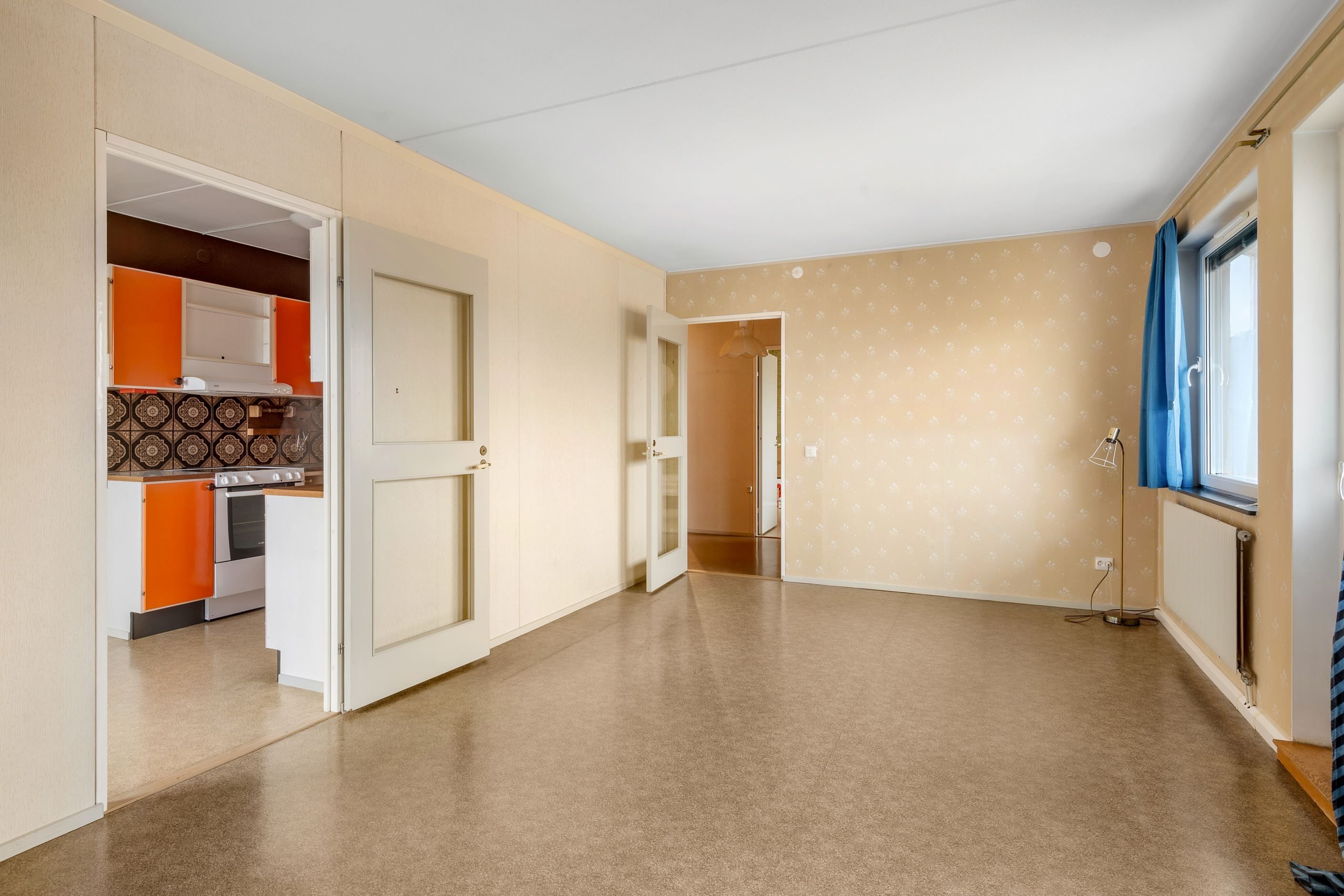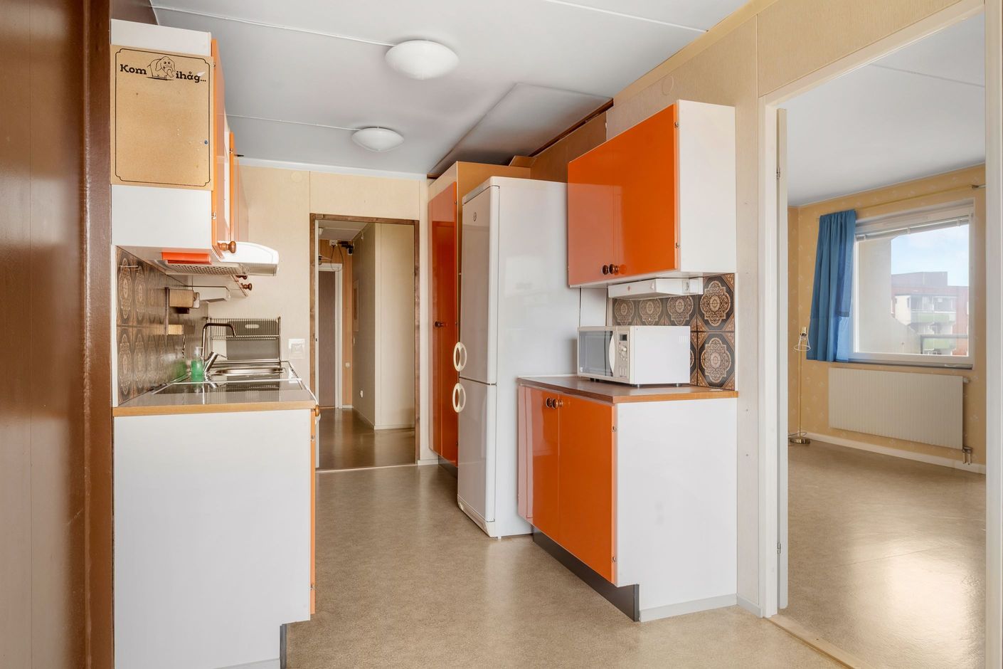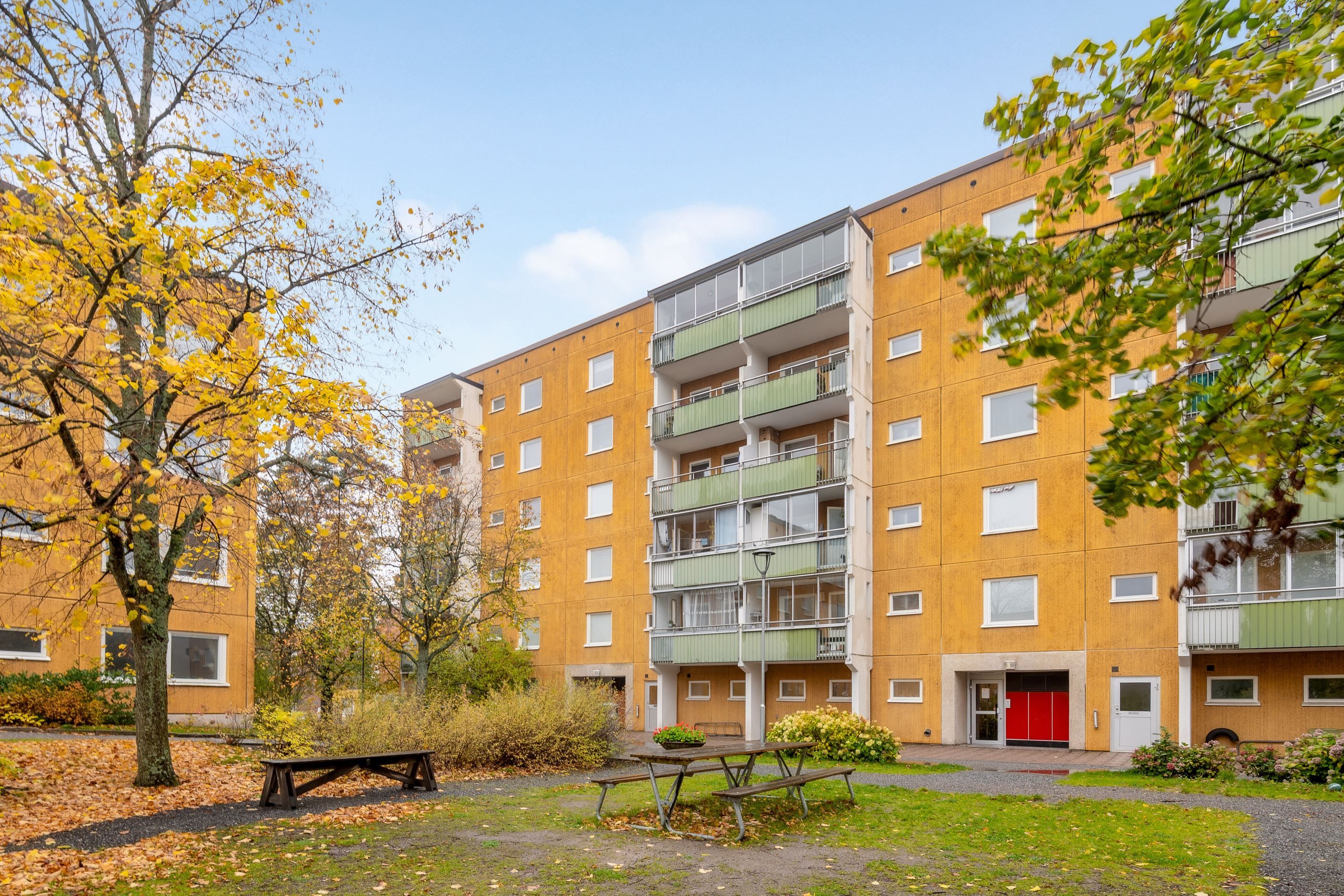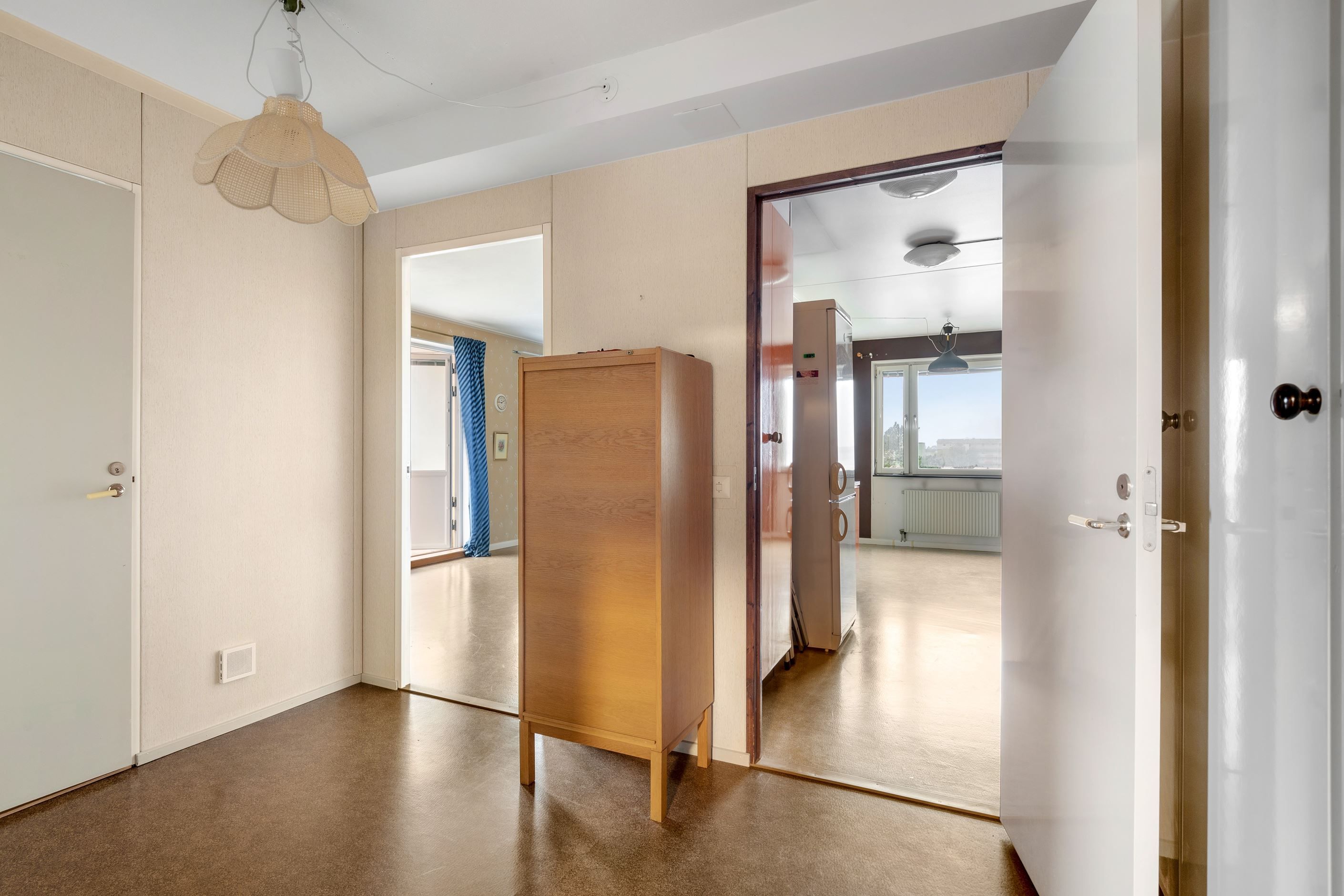 Bostaden erbjuder en välkomnande hall, stort kök med gott om förvaring och arbetsyta, rymligt sovrum, stort och socialt vardagsrum och ett stambytt badrum utrustat med dusch, duschväggar, toalett, handfat, spegelskåp och vädringsfönster. Till bostaden till hör även ett källarförråd. Balkong med fin utsikt mot natur och innergård.