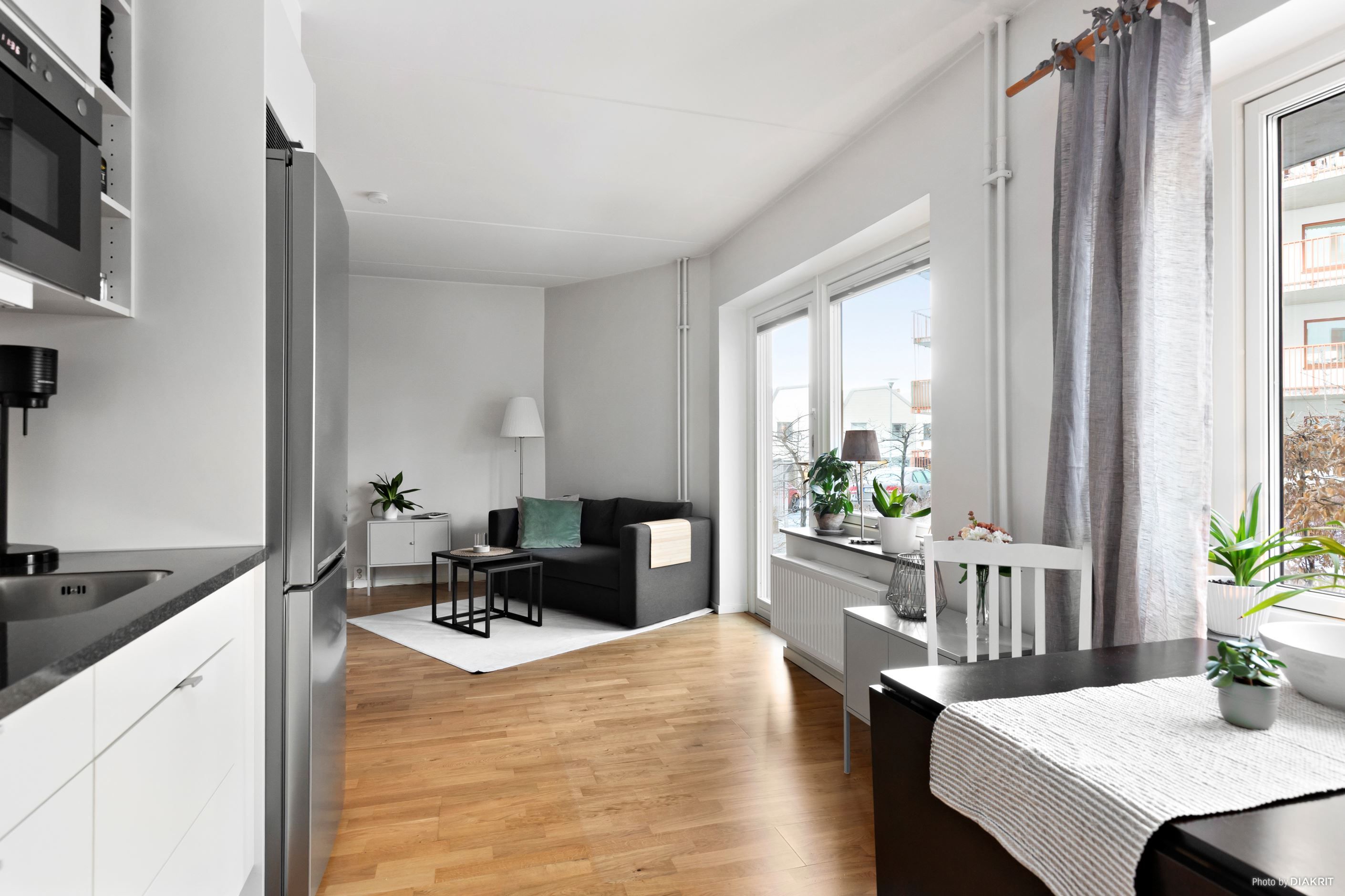 Nu har du chansen att förvärva denna ljusa och fräscha etta på 32,1 kvadratmeter i Mölnlycke (registrerad som 1,5rok hos föreningen). Lägenheten inleds med en välkomnande hall, utrustad med praktisk förvaring som underlättar vardagen. Bostadsrätten erbjuder en modern öppen planlösning där kök och vardagsrum smidigt flätas samman, och leder ut till en västligt belägen uteplats – perfekt för att njuta av de kommande sommarkvällarna. Den mysiga sovalkoven kompletterar med plats för en bekväm viloplats.