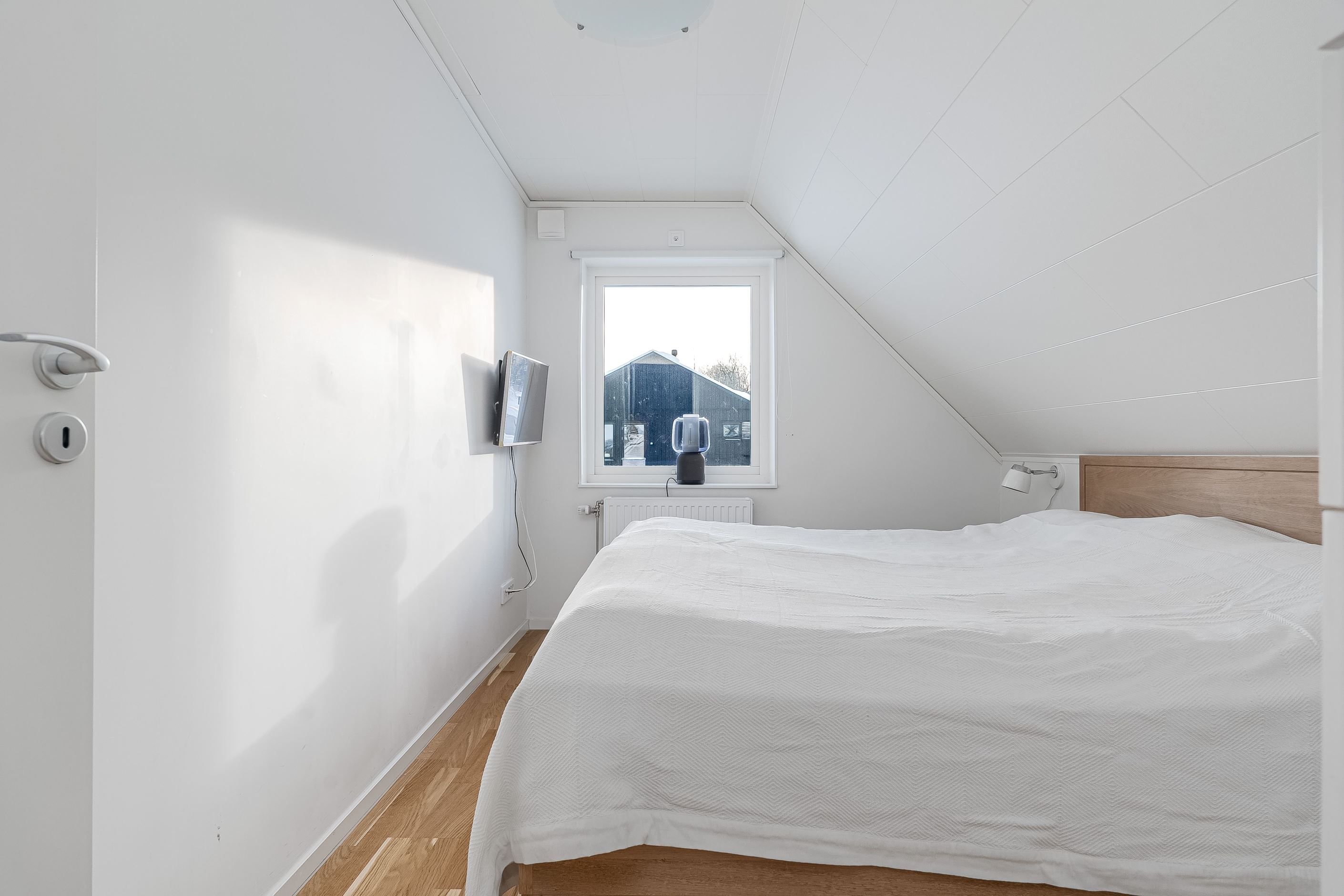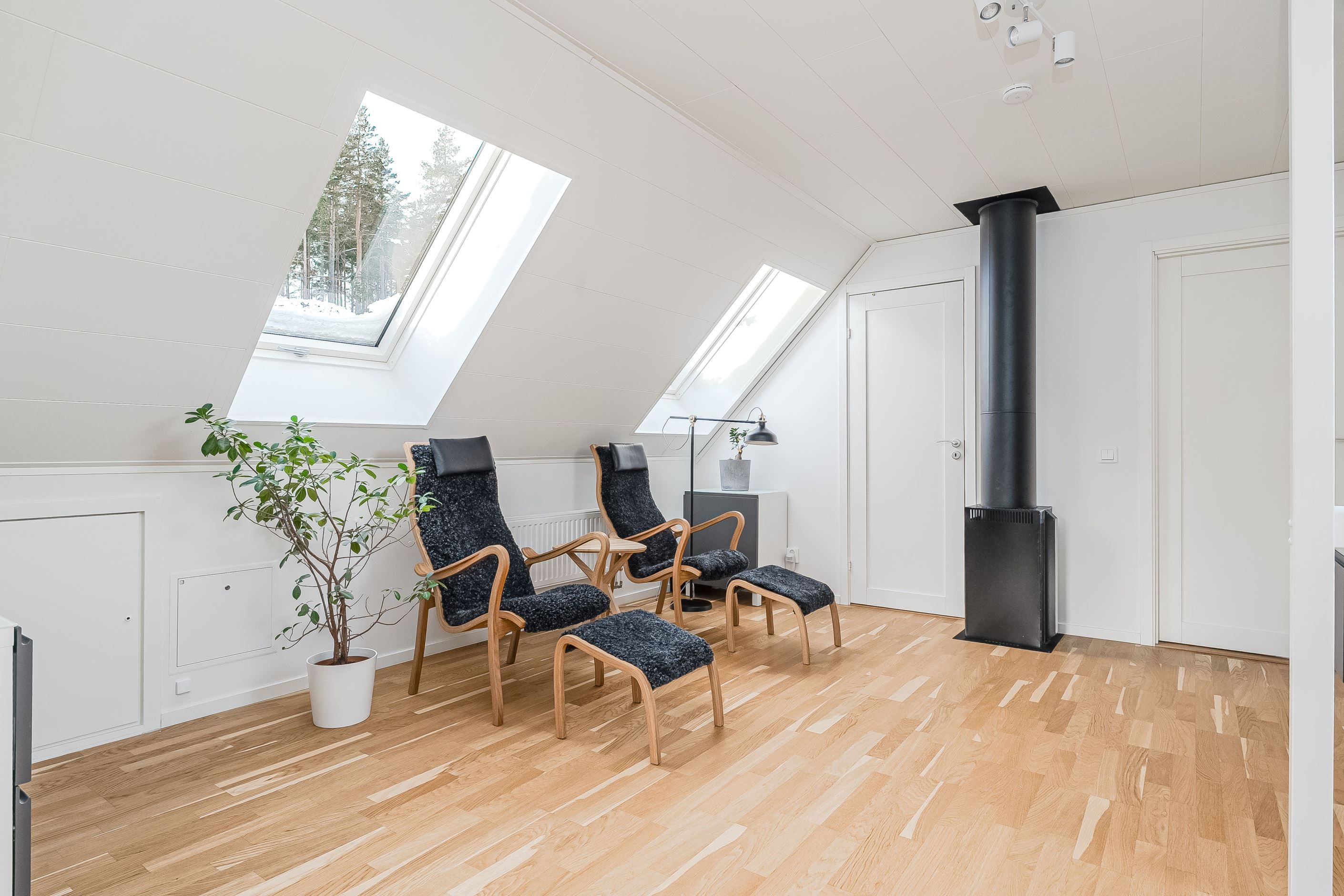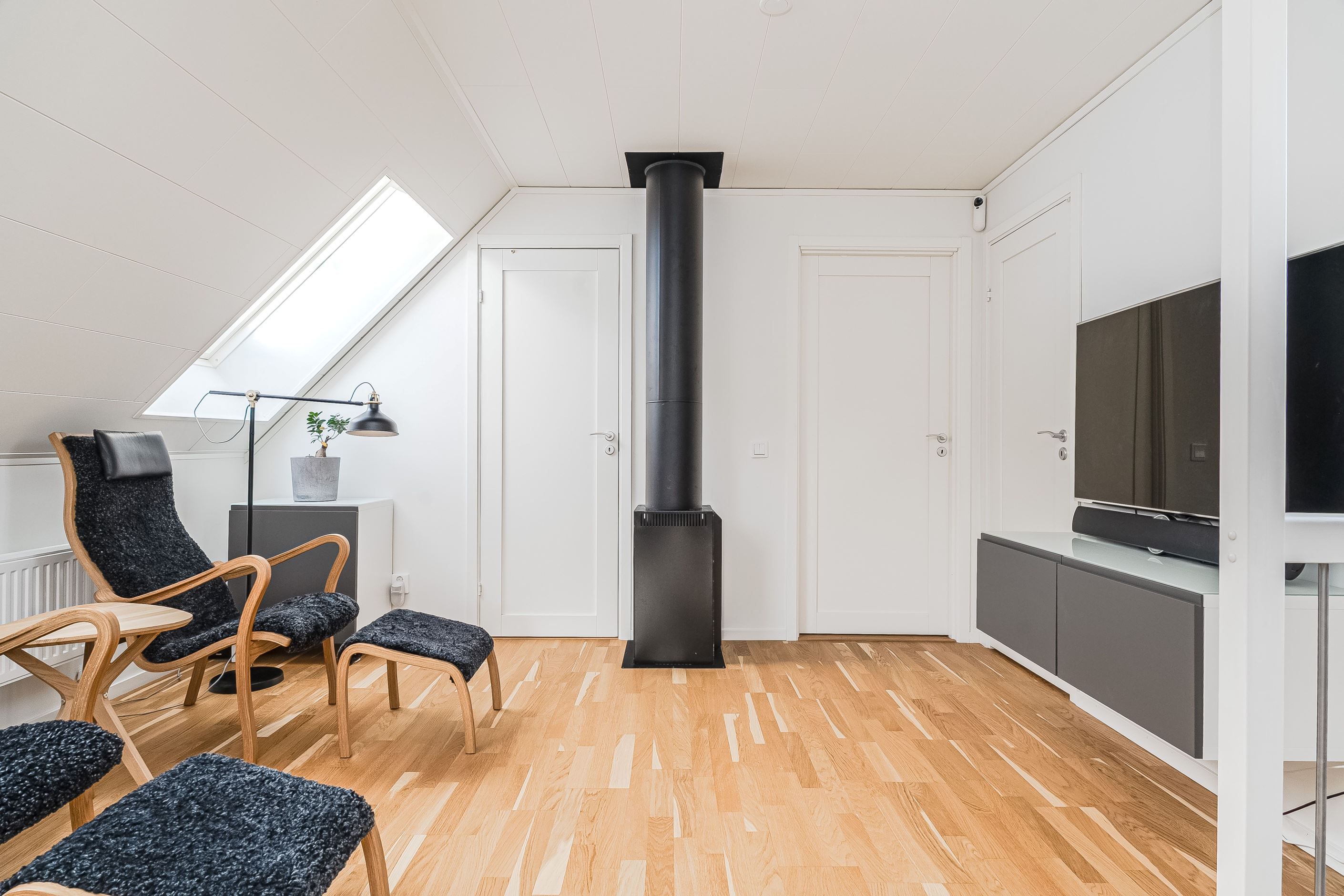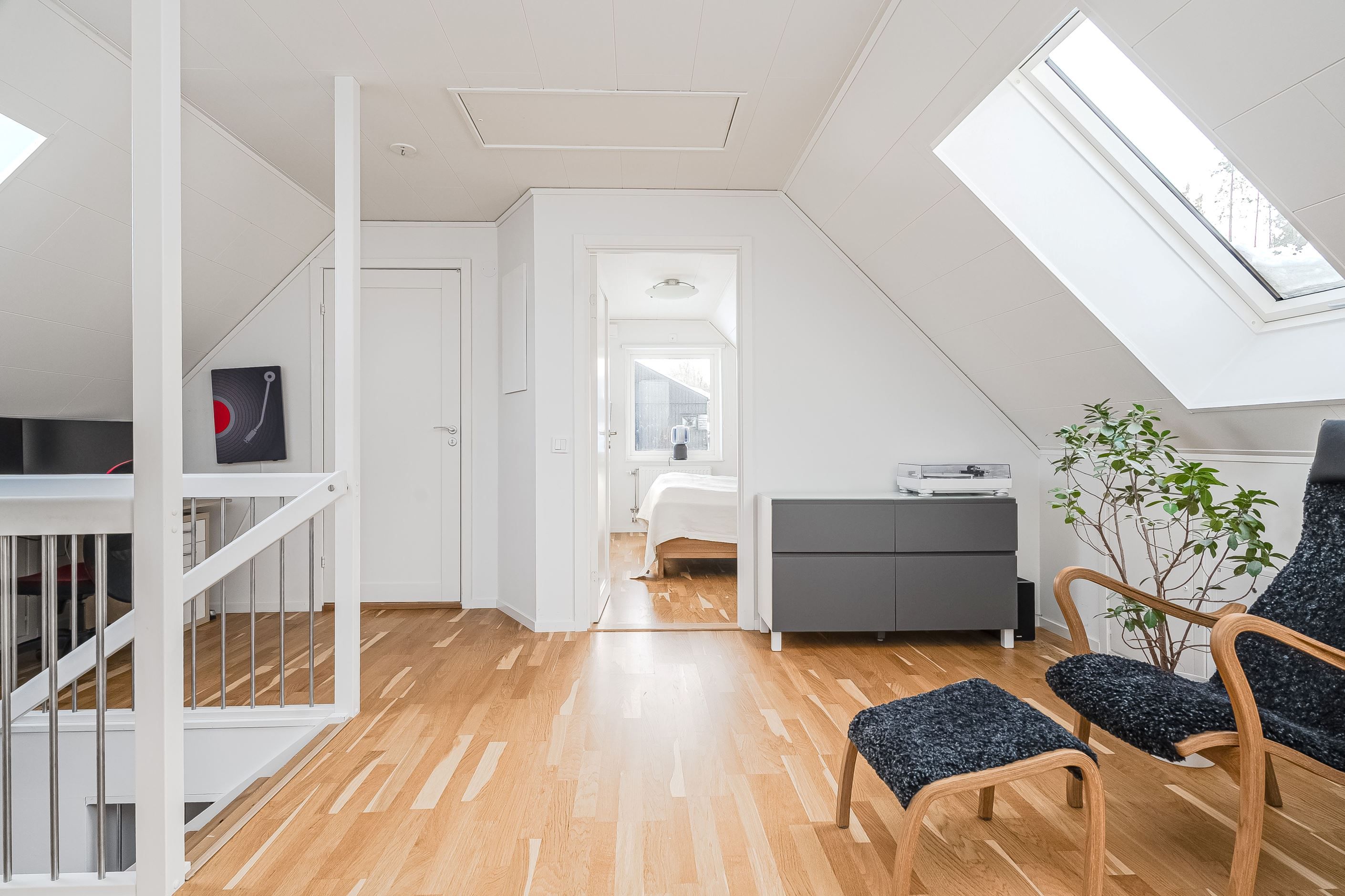 En trappa upp väntar ett trivsamt allrum som passar perfekt som tv-rum, lekyta eller hemmakontor. Här finns dessutom tre rymliga sovrum, ytterligare ett smakfullt badrum samt en praktisk klädkammare. Planlösningen är optimal för den större familjen eller för dig som önskar gott om utrymme och flexibilitet i vardagen.