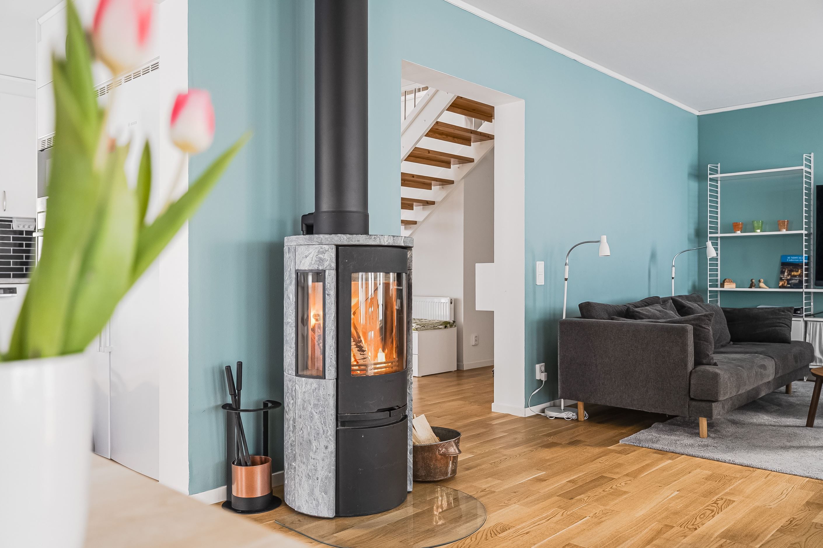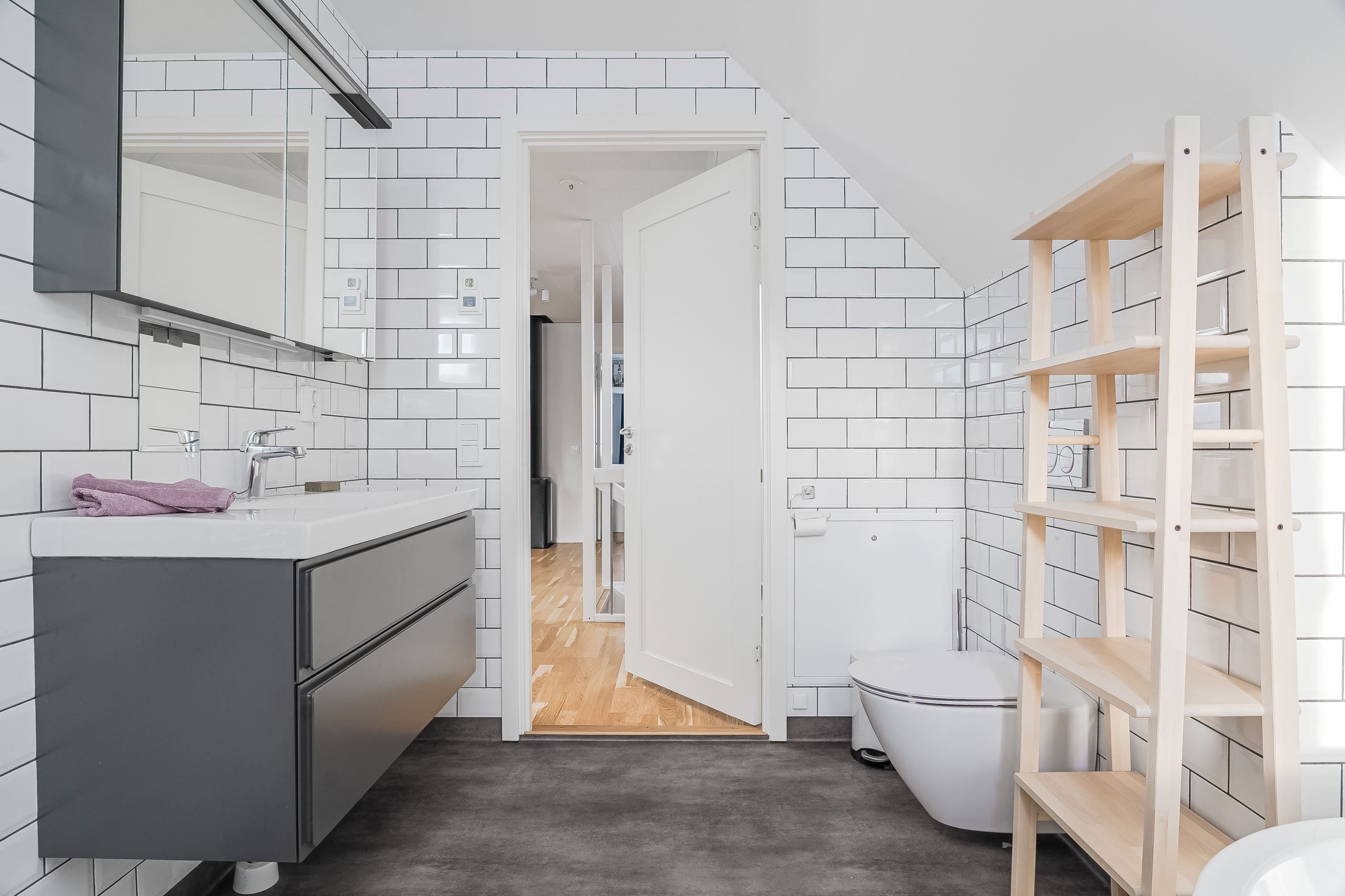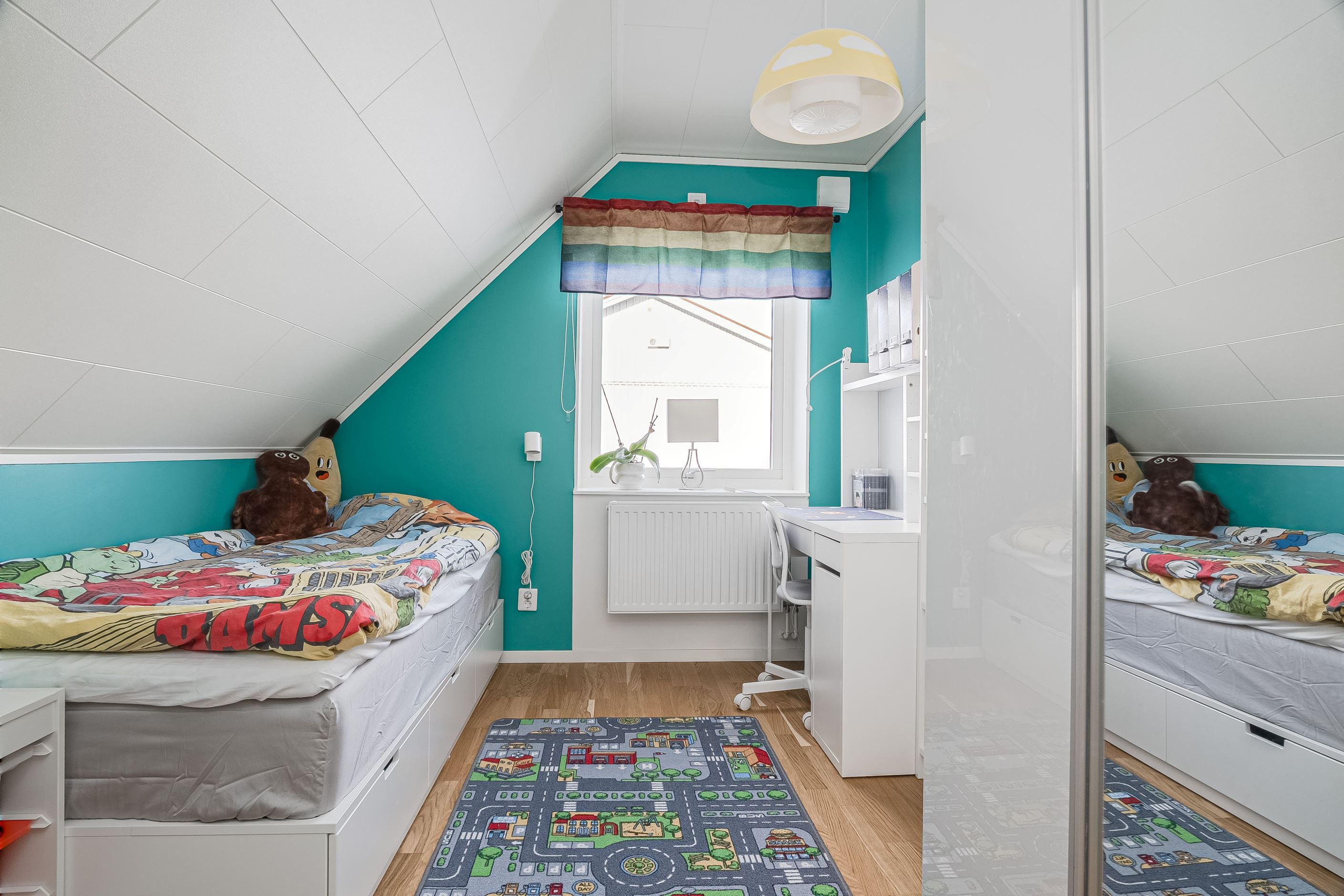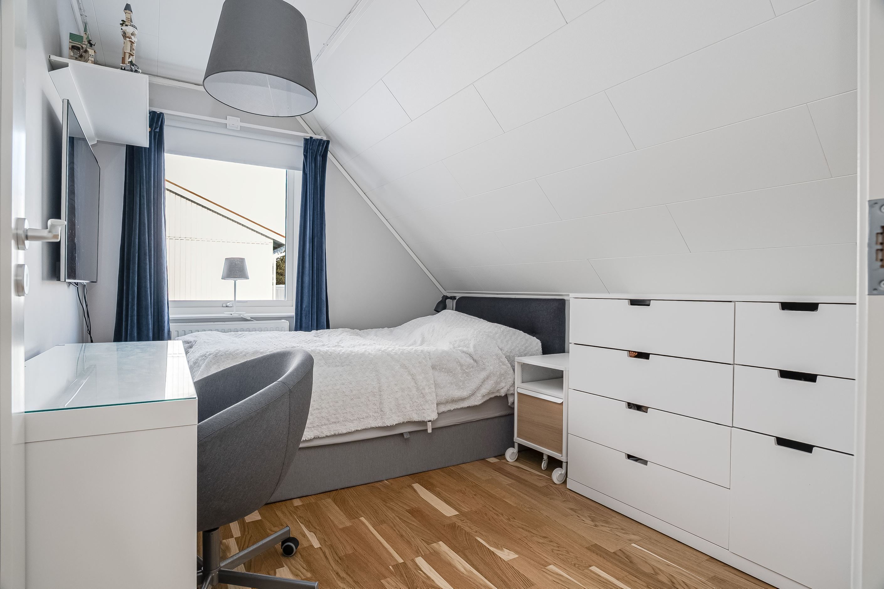 En trappa upp väntar ett trivsamt allrum som passar perfekt som tv-rum, lekyta eller hemmakontor. Här finns dessutom tre rymliga sovrum, ytterligare ett smakfullt badrum samt en praktisk klädkammare. Planlösningen är optimal för den större familjen eller för dig som önskar gott om utrymme och flexibilitet i vardagen.