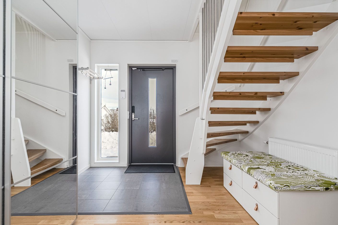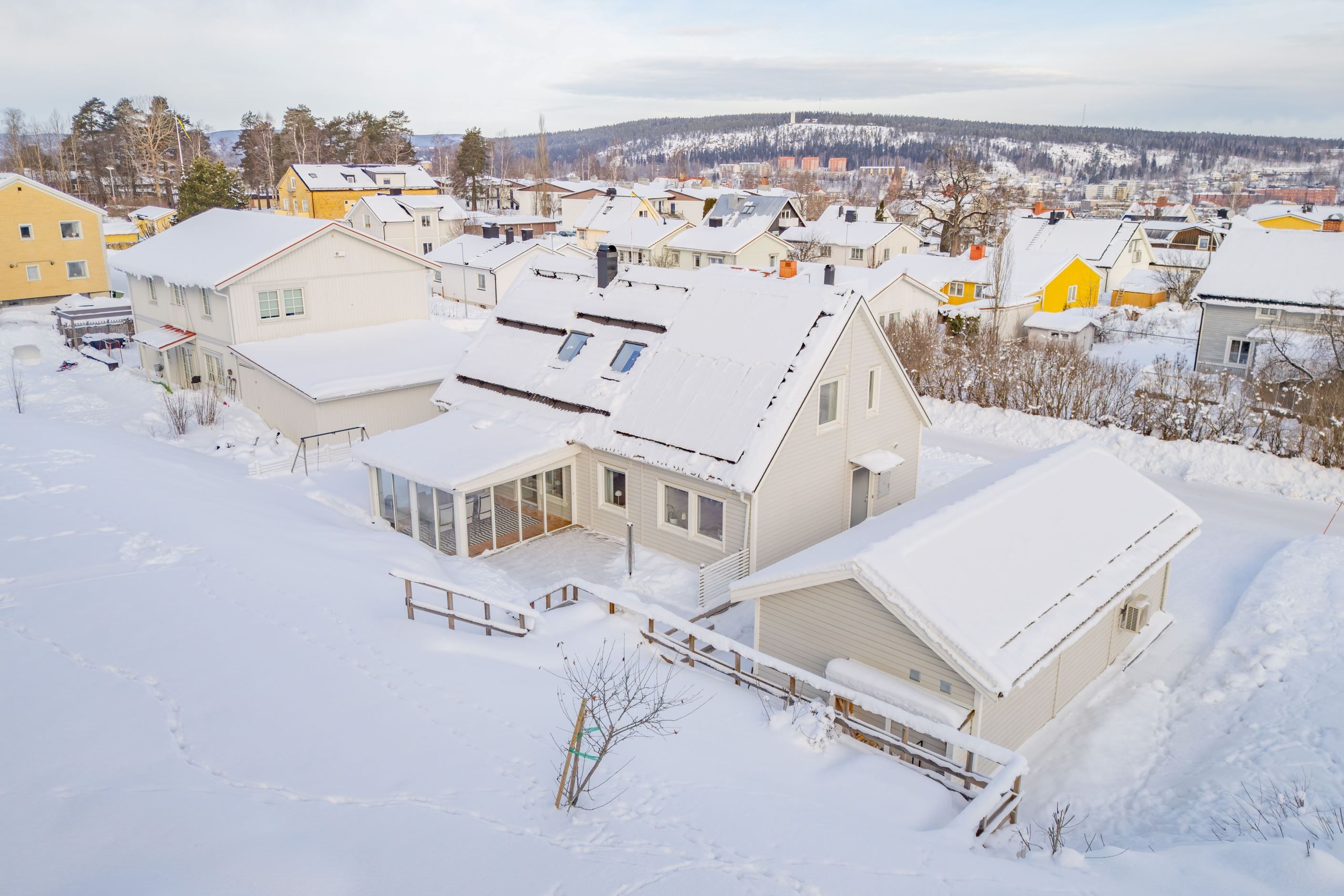 Läget är något alldeles extra. Att bo högst upp på gatan innebär minimal trafik och en rofylld atmosfär, samtidigt som du har skog och natur precis bakom huset. Här kan barnen leka fritt och naturen blir en naturlig del av vardagen. Samtidigt har du nära till skolor, service, kommunikationer och centrala Sundsvalls breda utbud.