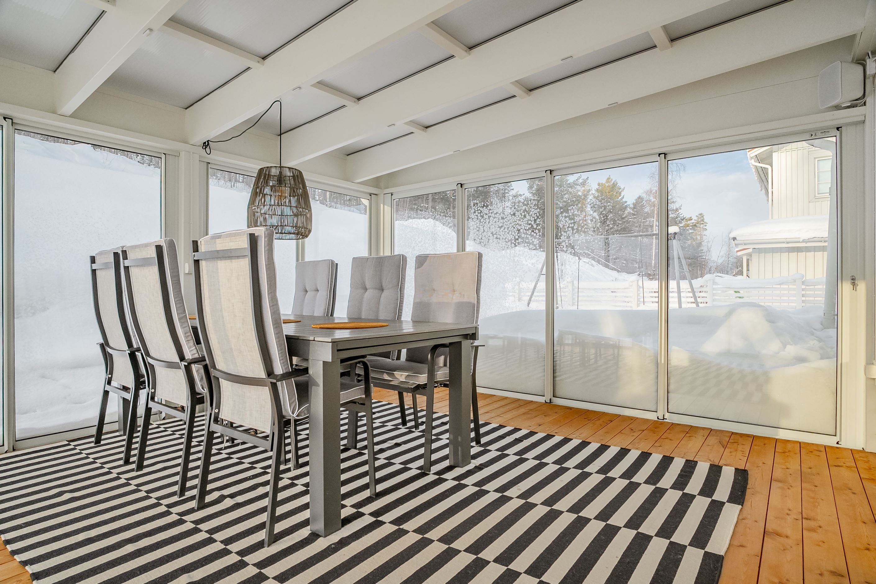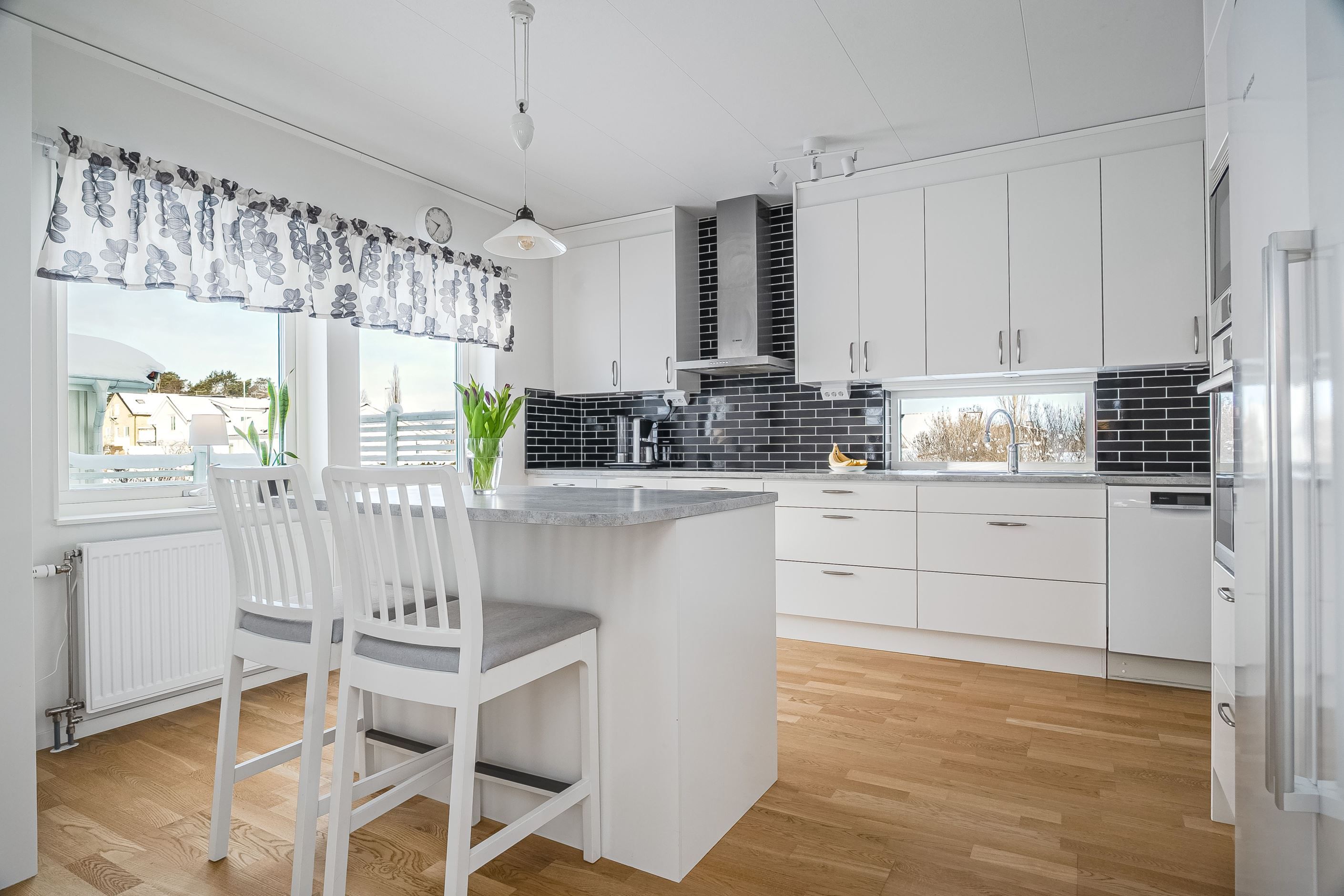 Villan är uppförd 2017 och håller genomgående hög standard med stilrena materialval och en genomtänkt planlösning om två välplanerade våningsplan. Redan i hallen möts du av en ljus och inbjudande känsla som följer med genom hela hemmet. På entréplanet finns ett modernt och välutrustat kök med gott om arbetsytor och förvaring, som ligger i öppen anslutning till det generösa vardagsrummet. Här skapas en naturlig samlingspunkt för familj och vänner, med stora fönsterpartier som ger ett härligt ljusinsläpp. Från vardagsrummet nås den inglasade altanen – ett fantastiskt extrarum som förlänger utesäsongen och blir en självklar plats för både avkoppling och sociala tillställningar. På nedre plan finns även ett sovrum, ett stilrent badrum samt en praktisk tvättstuga med god funktion och förvaring.