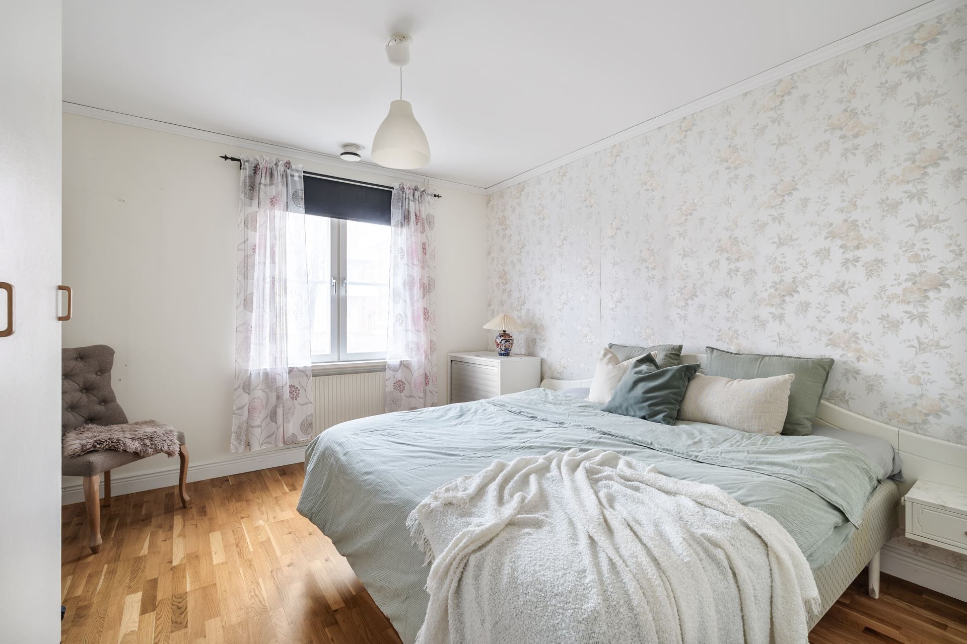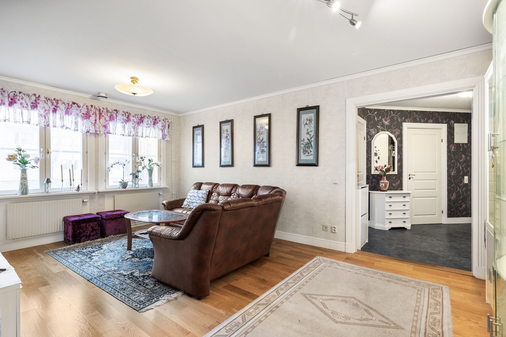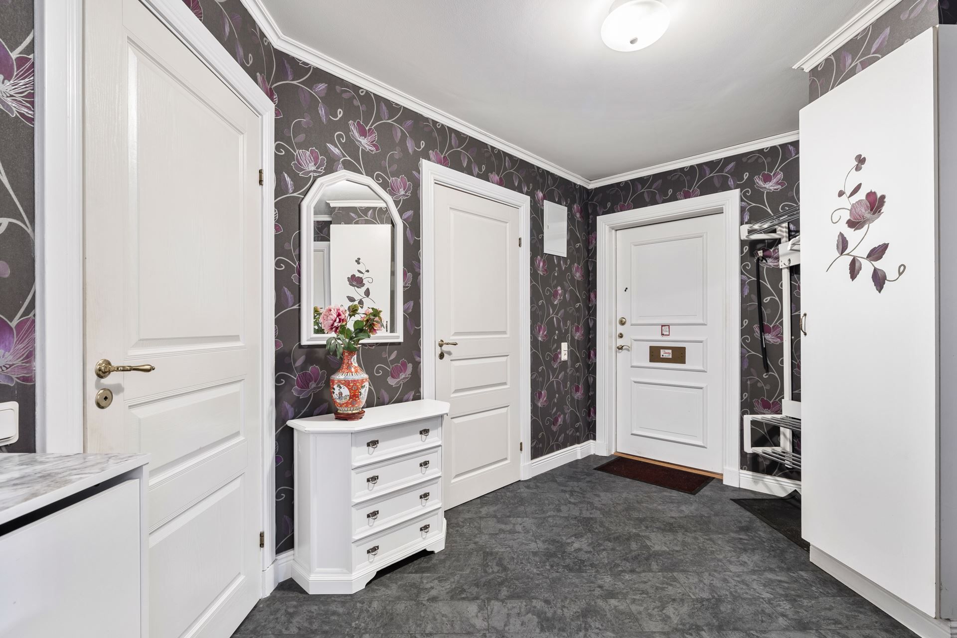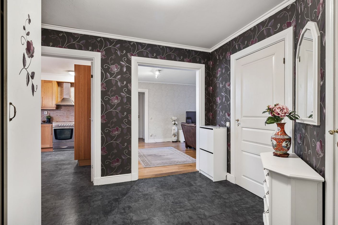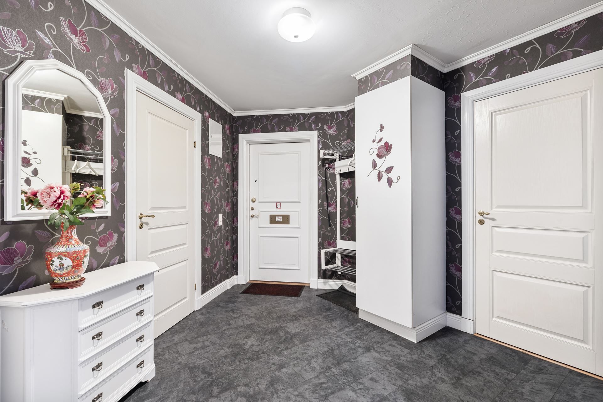 Interiört bjuds en rymlig och välkomnande hall med access till klädkammare. Smart praktiskt och ett fint välkomnande med access till bostadens övriga rum och rumssektioner. Ett stort kök i ek-utförande ansluter till balkongen som är underbar att njuta på. Här bjuds många soltimmar ca. kl. 12-18/19-tiden under sommarhalvåret! Vardagsrummet är centralt och släpper in ett vackert ljusinsläpp från de fina, välisolerade fönstren. Tre bra sovrum och dessutom badrum + gäst-wc i neutrala toner. Till lägenheten följer även ett rymligt förråd i källarplan där även föreningens fräscha tvättstuga finns belägen.