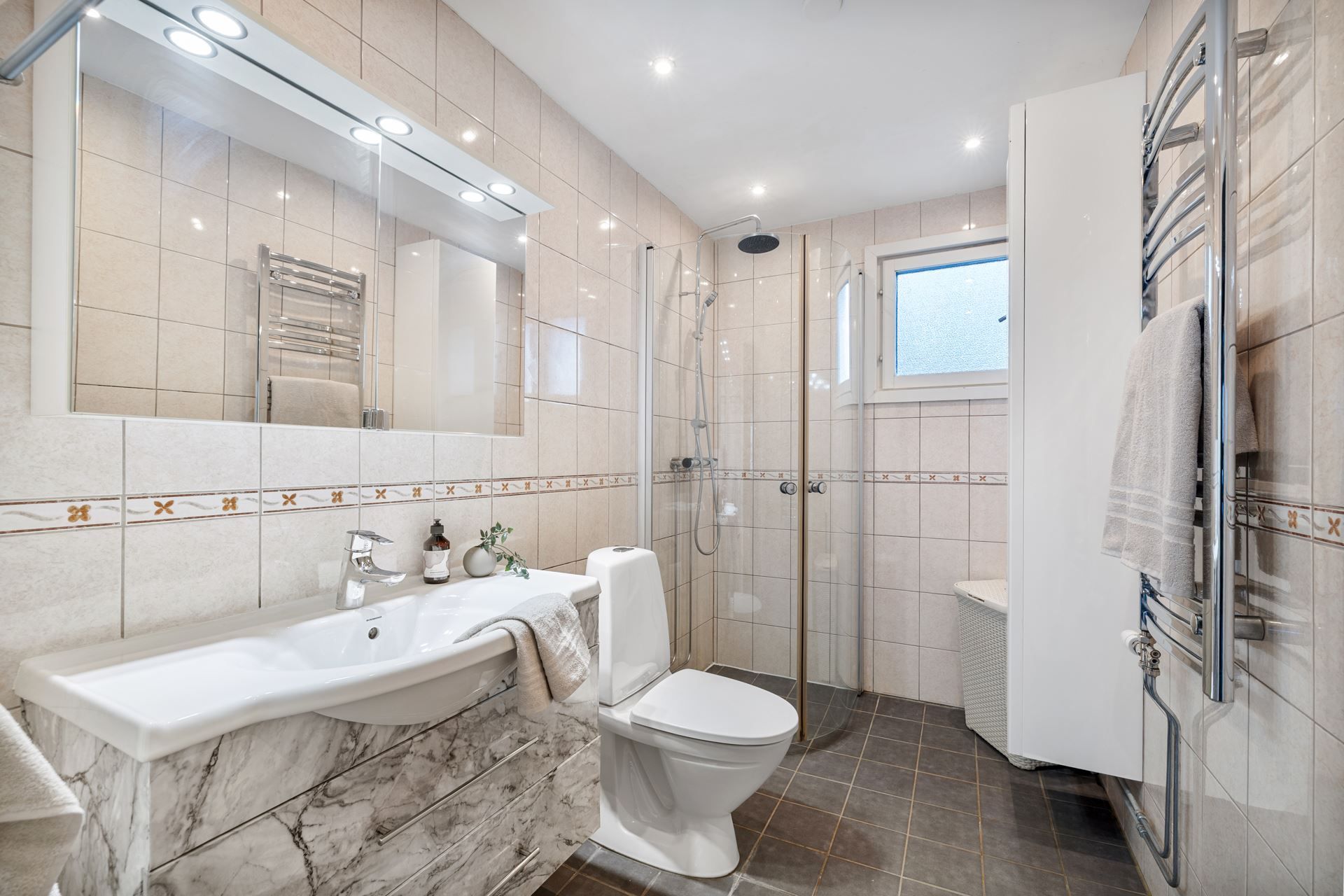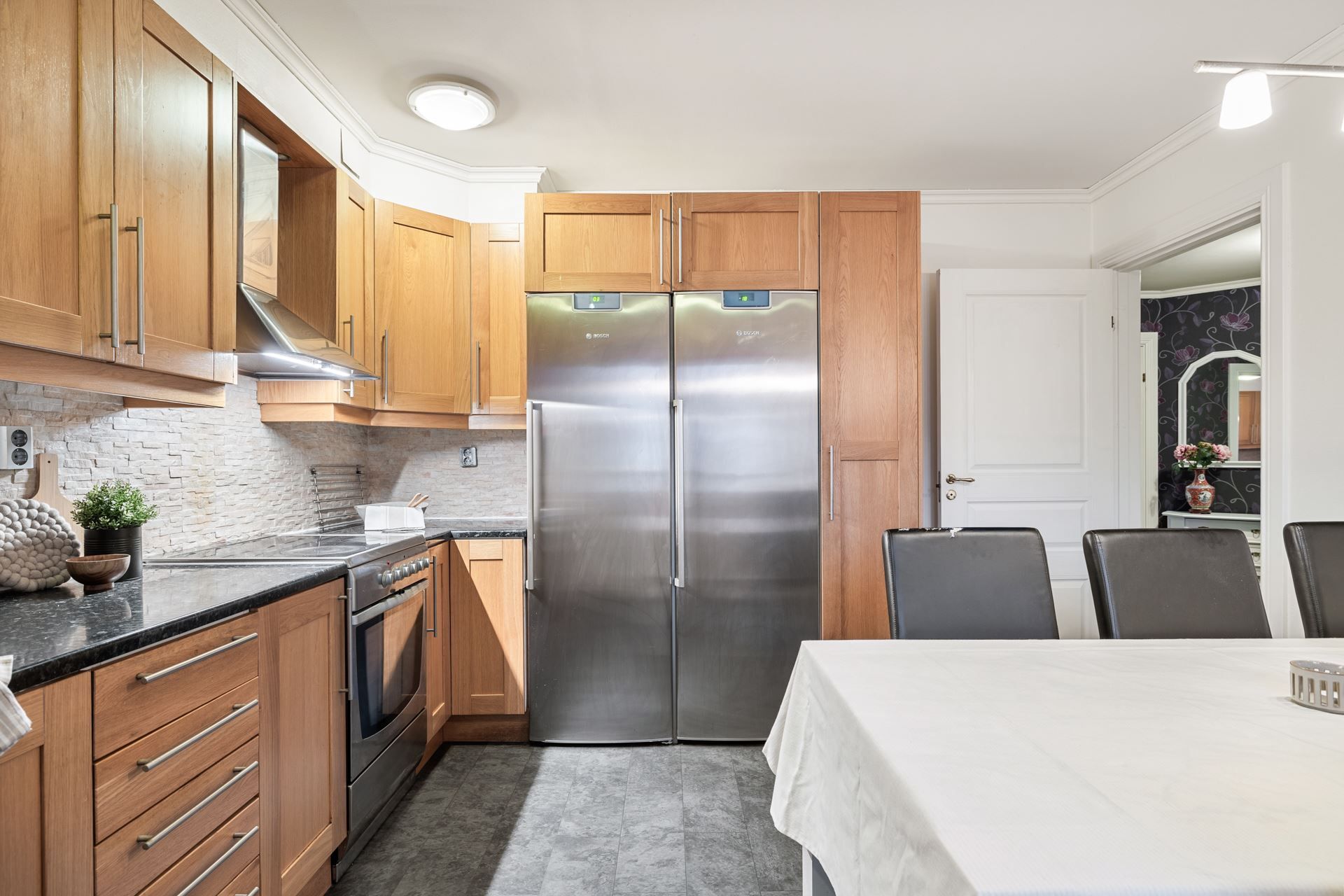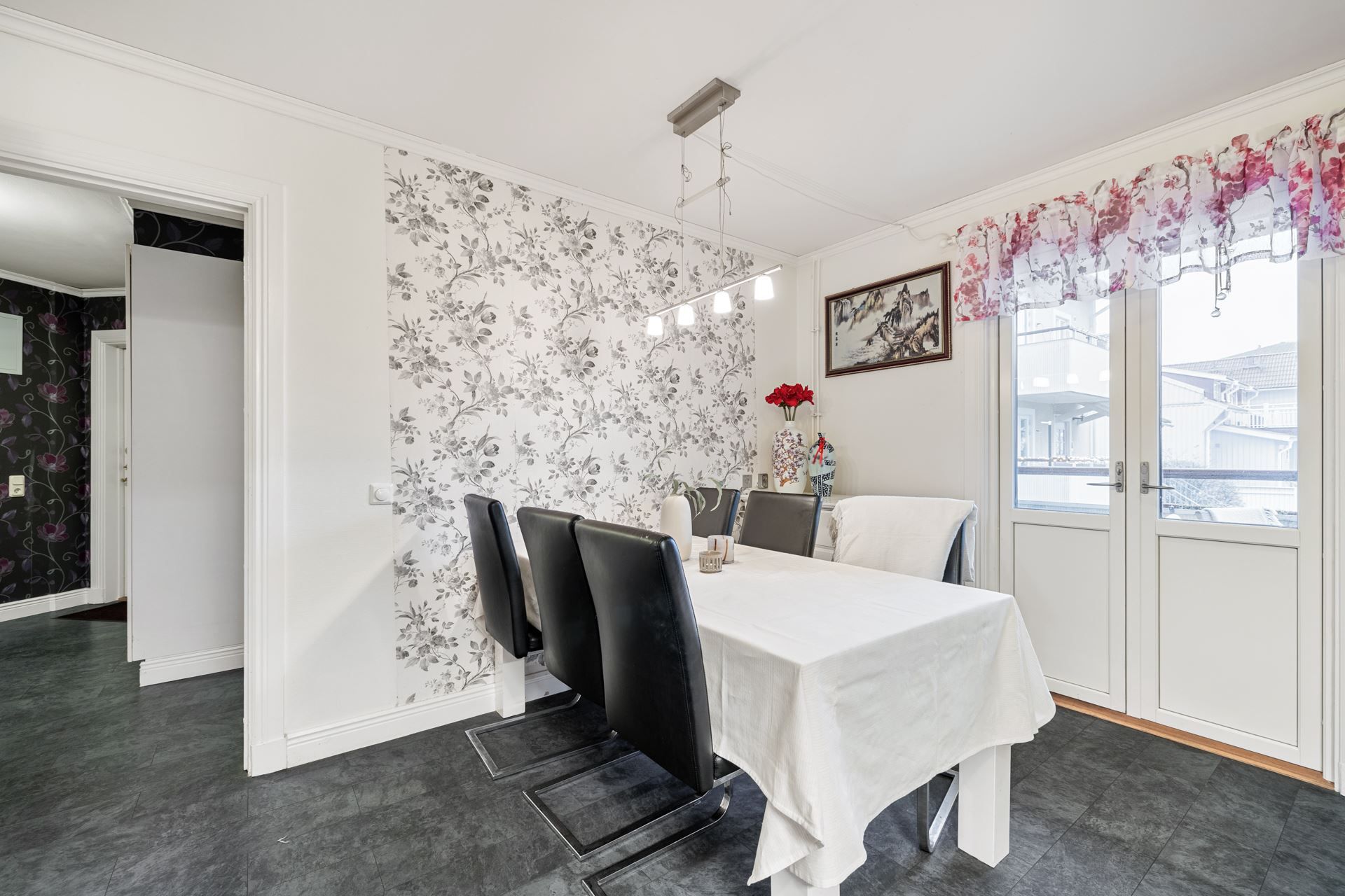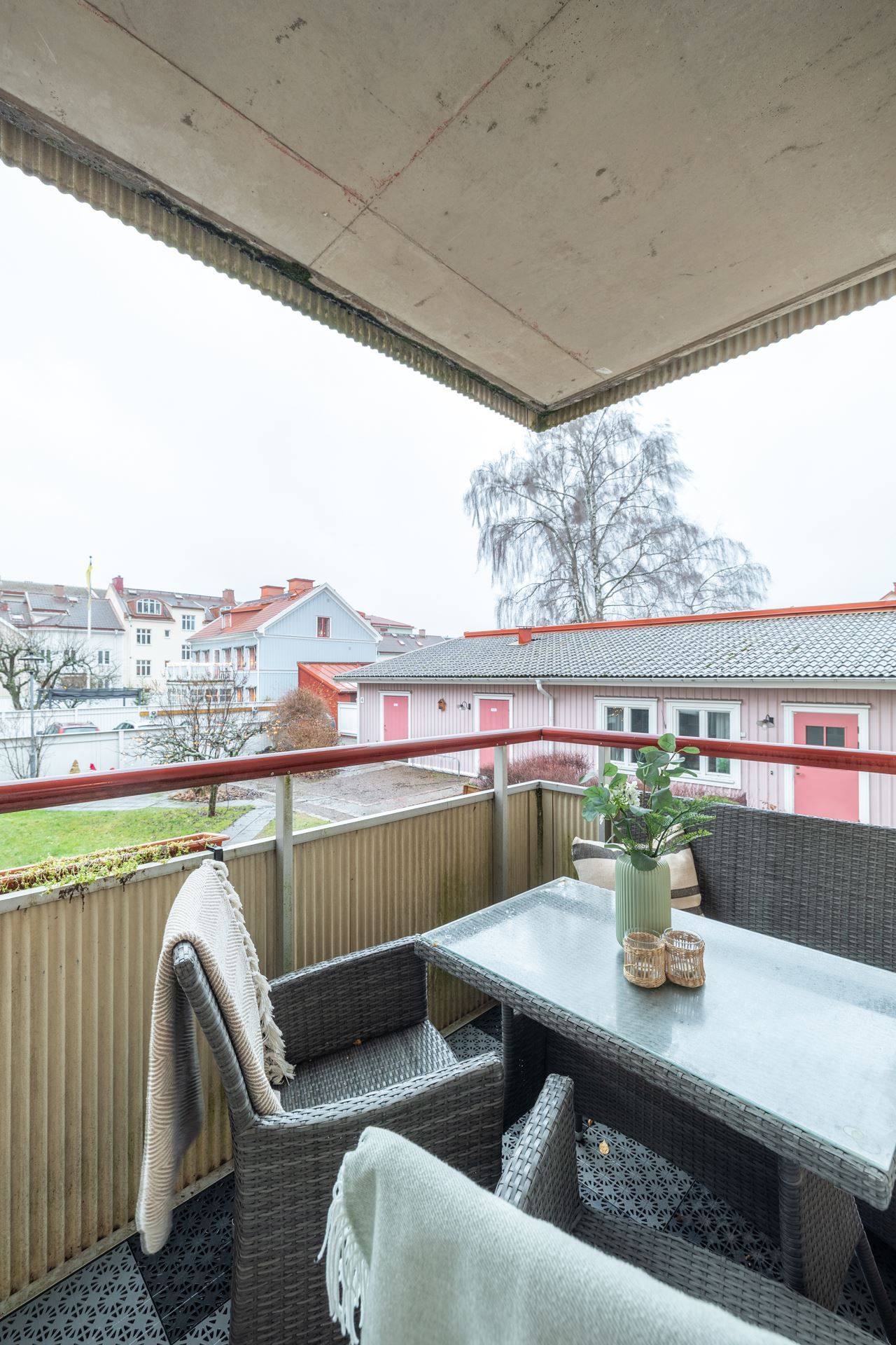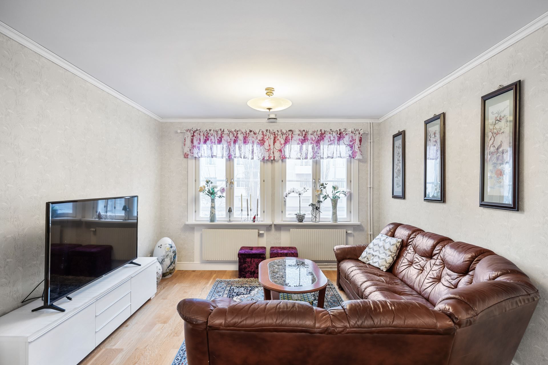Interiört bjuds en rymlig och välkomnande hall med access till klädkammare. Smart praktiskt och ett fint välkomnande med access till bostadens övriga rum och rumssektioner. Ett stort kök i ek-utförande ansluter till balkongen som är underbar att njuta på. Här bjuds många soltimmar ca. kl. 12-18/19-tiden under sommarhalvåret! Vardagsrummet är centralt och släpper in ett vackert ljusinsläpp från de fina, välisolerade fönstren. Tre bra sovrum och dessutom badrum + gäst-wc i neutrala toner. Till lägenheten följer även ett rymligt förråd i källarplan där även föreningens fräscha tvättstuga finns belägen.