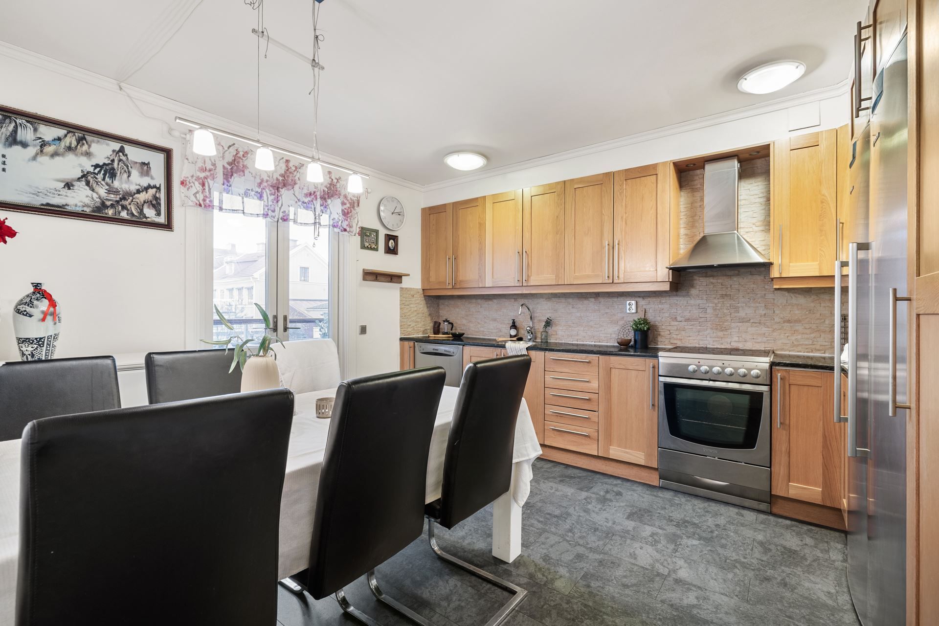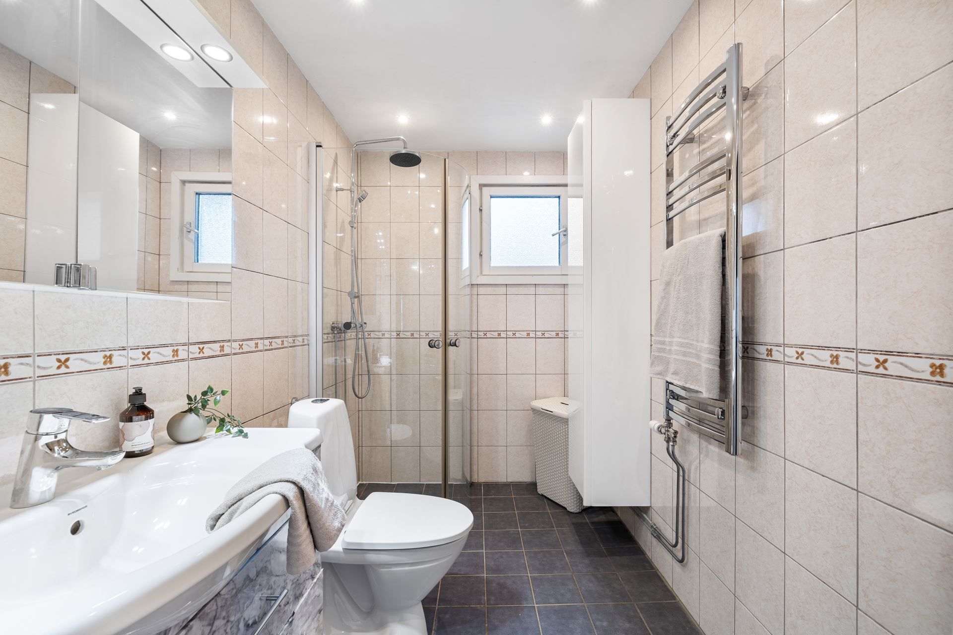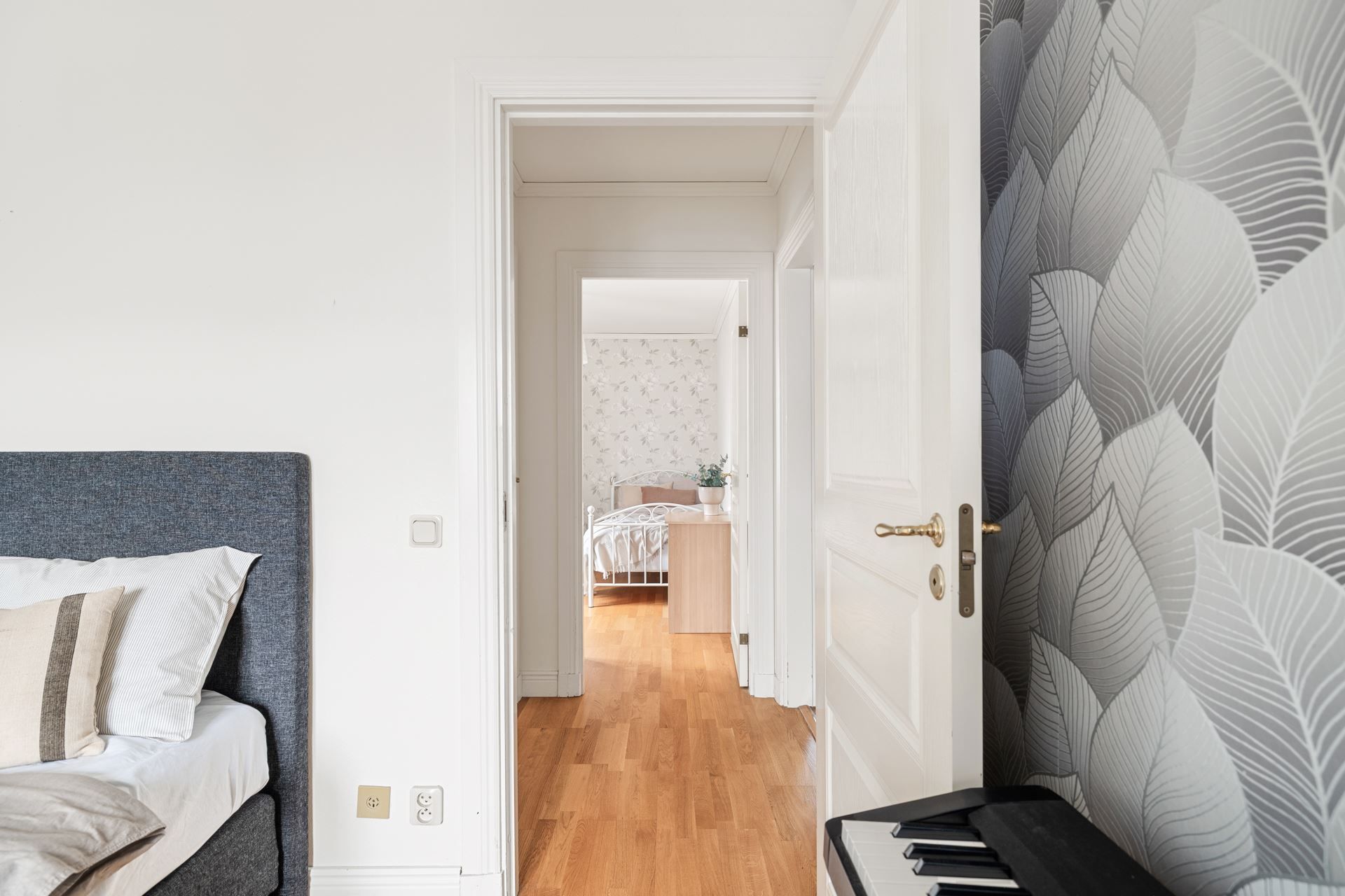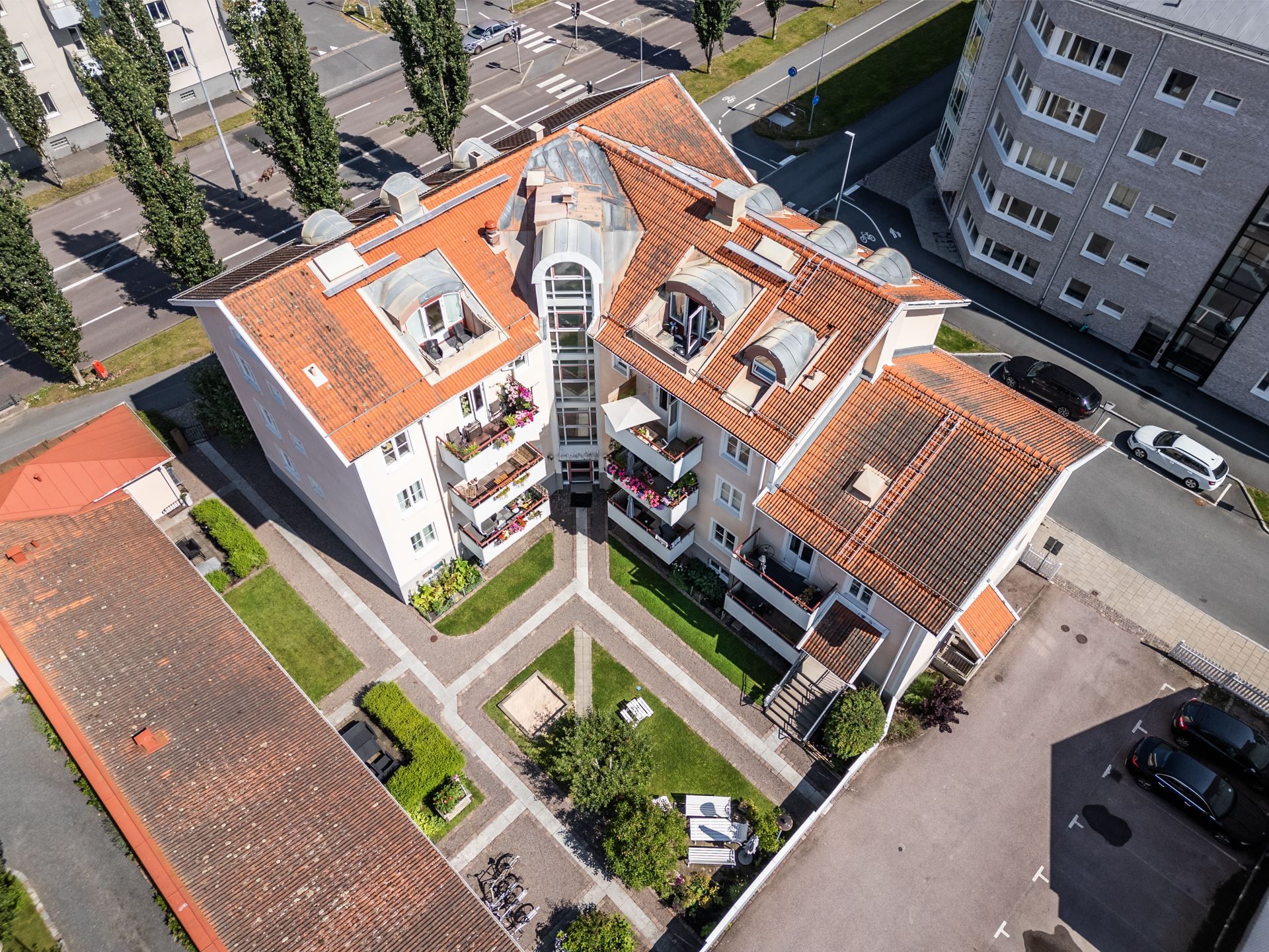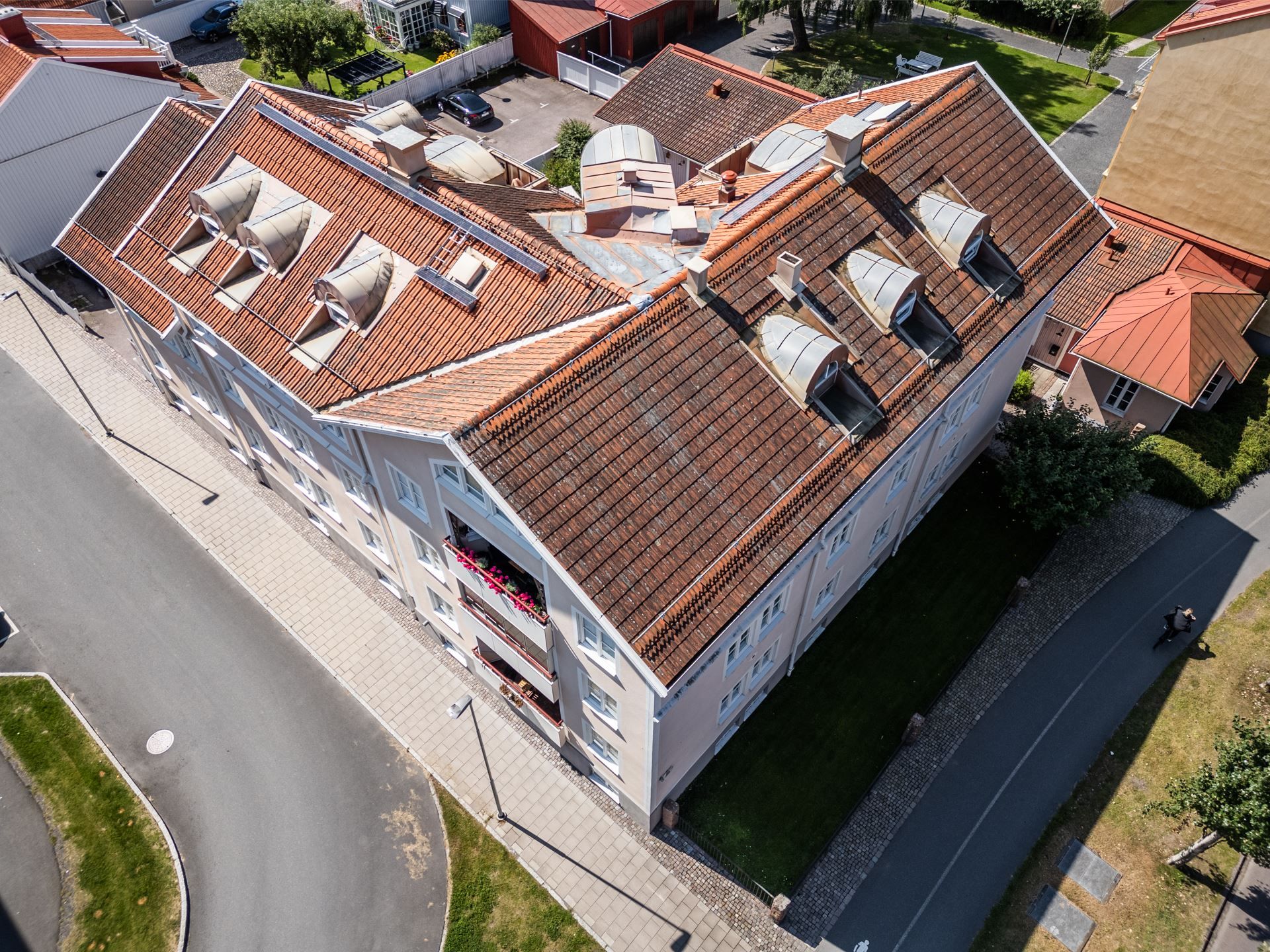 Interiört bjuds en rymlig och välkomnande hall med access till klädkammare. Smart praktiskt och ett fint välkomnande med access till bostadens övriga rum och rumssektioner. Ett stort kök i ek-utförande ansluter till balkongen som är underbar att njuta på. Här bjuds många soltimmar ca. kl. 12-18/19-tiden under sommarhalvåret! Vardagsrummet är centralt och släpper in ett vackert ljusinsläpp från de fina, välisolerade fönstren. Tre bra sovrum och dessutom badrum + gäst-wc i neutrala toner. Till lägenheten följer även ett rymligt förråd i källarplan där även föreningens fräscha tvättstuga finns belägen.
