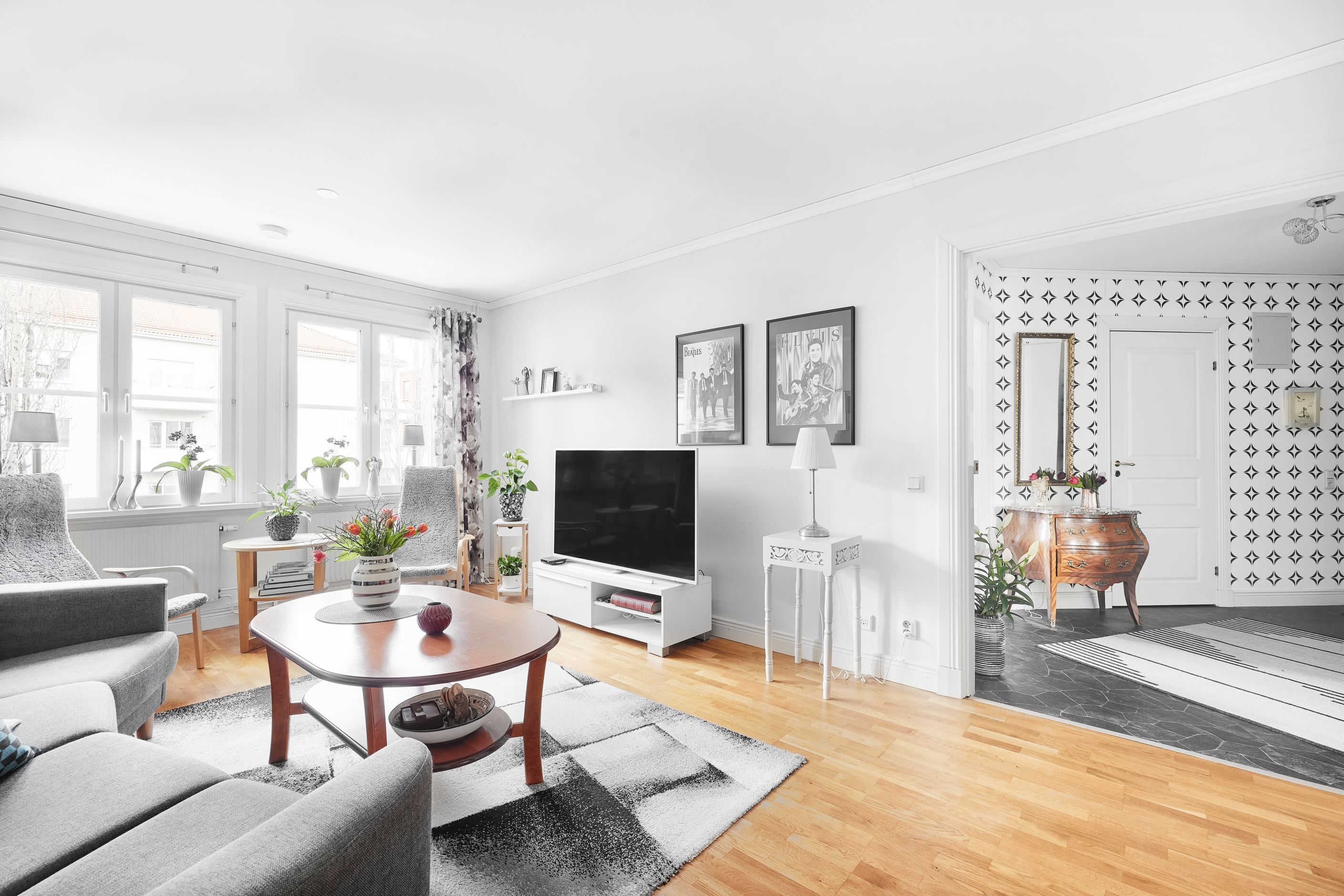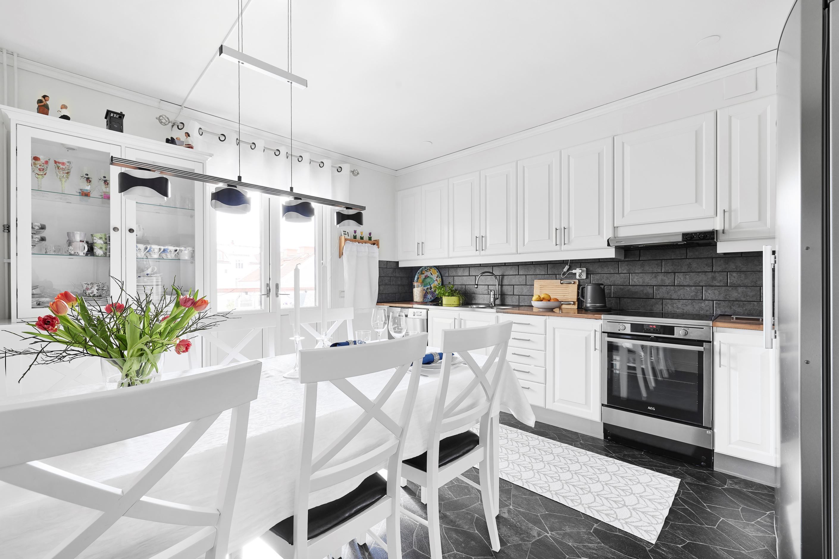 Interiört bjuds en rymlig och välkomnande hall med access till klädkammare. Smart praktiskt och ett fint välkomnande med access till bostadens övriga rum och rumssektioner. Ett stort kök i vitt utförande ansluter till balkongen som är underbar att njuta på. Här bjuds många soltimmar ca. kl. 12-20-tiden under sommarhalvåret! Vardagsrummet är centralt och släpper in ett vackert ljusinsläpp från de fina, välisolerade fönstren. Tre bra sovrum och dessutom badrum + gäst-wc i neutrala toner. Till lägenheten följer även ett rymligt förråd i källarplan där även föreningens fräscha tvättstuga finns belägen.