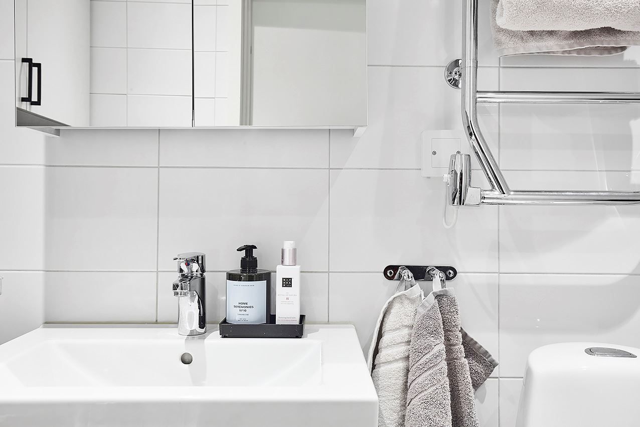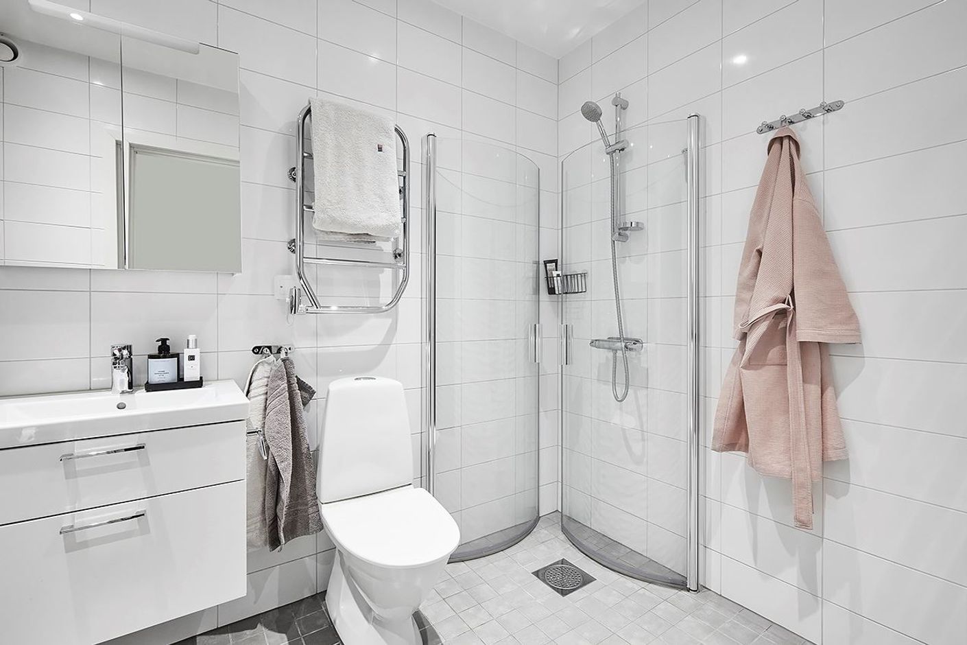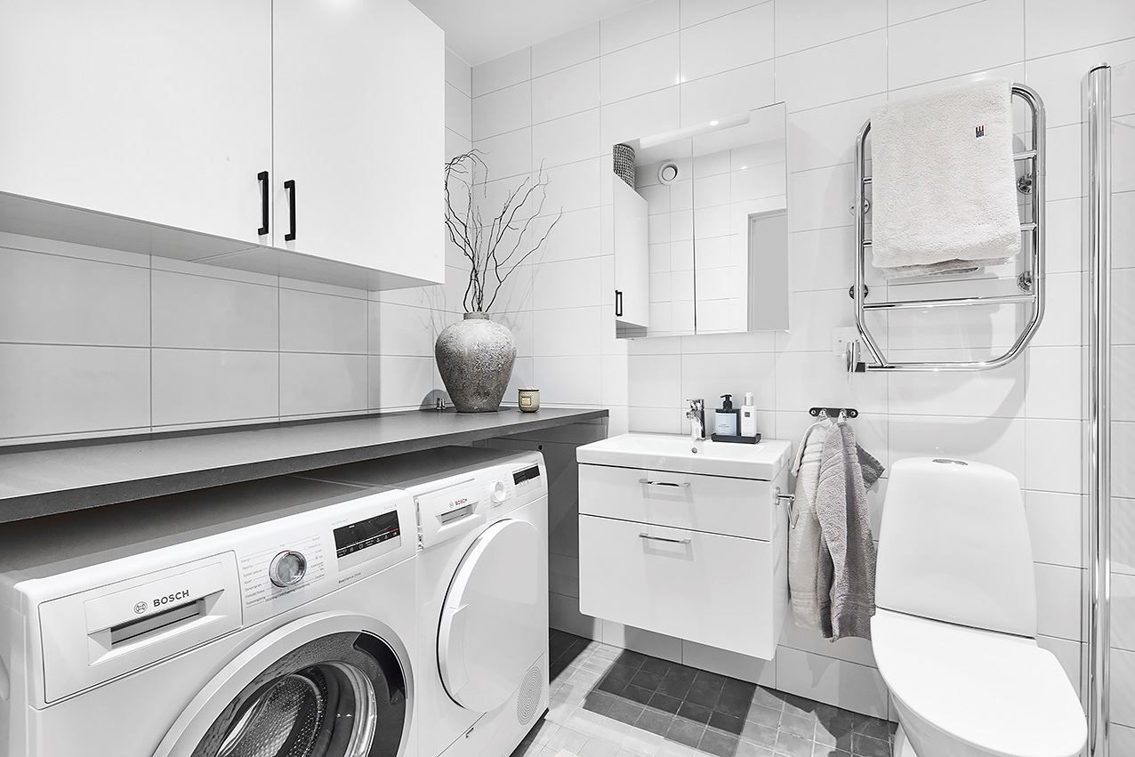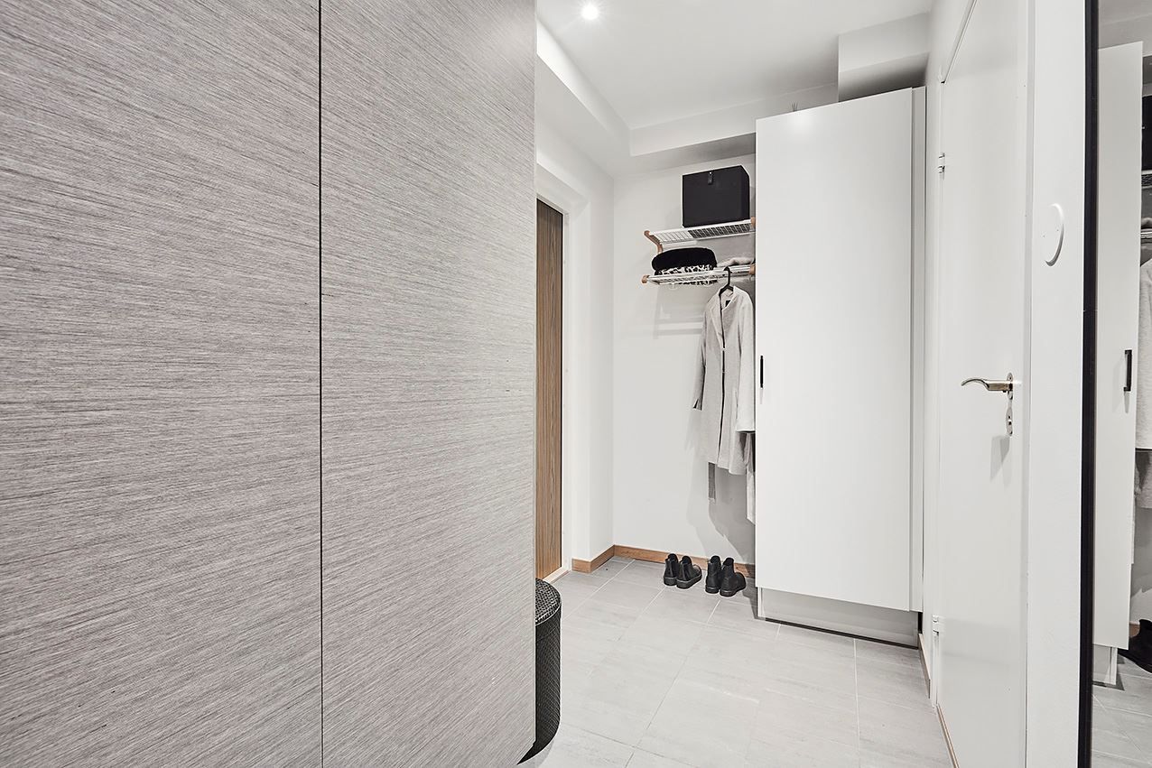 Sovrummet är beläget i rofyllt läge, lite mer privat längst in. Stilrent badrum i ljusgrått tema och utrustad tvättsektion med både tvättmaskin, torktumlare och gott om linneskåp. Inbyggd förvaring i både hall och mellanhall sväljer det mesta. För hobbyprylarna finns gott om utrymme i det väl tilltagna förrådet som följer med lägenheten. Så gott som allt du kan tänkas önska på attraktiv adress!