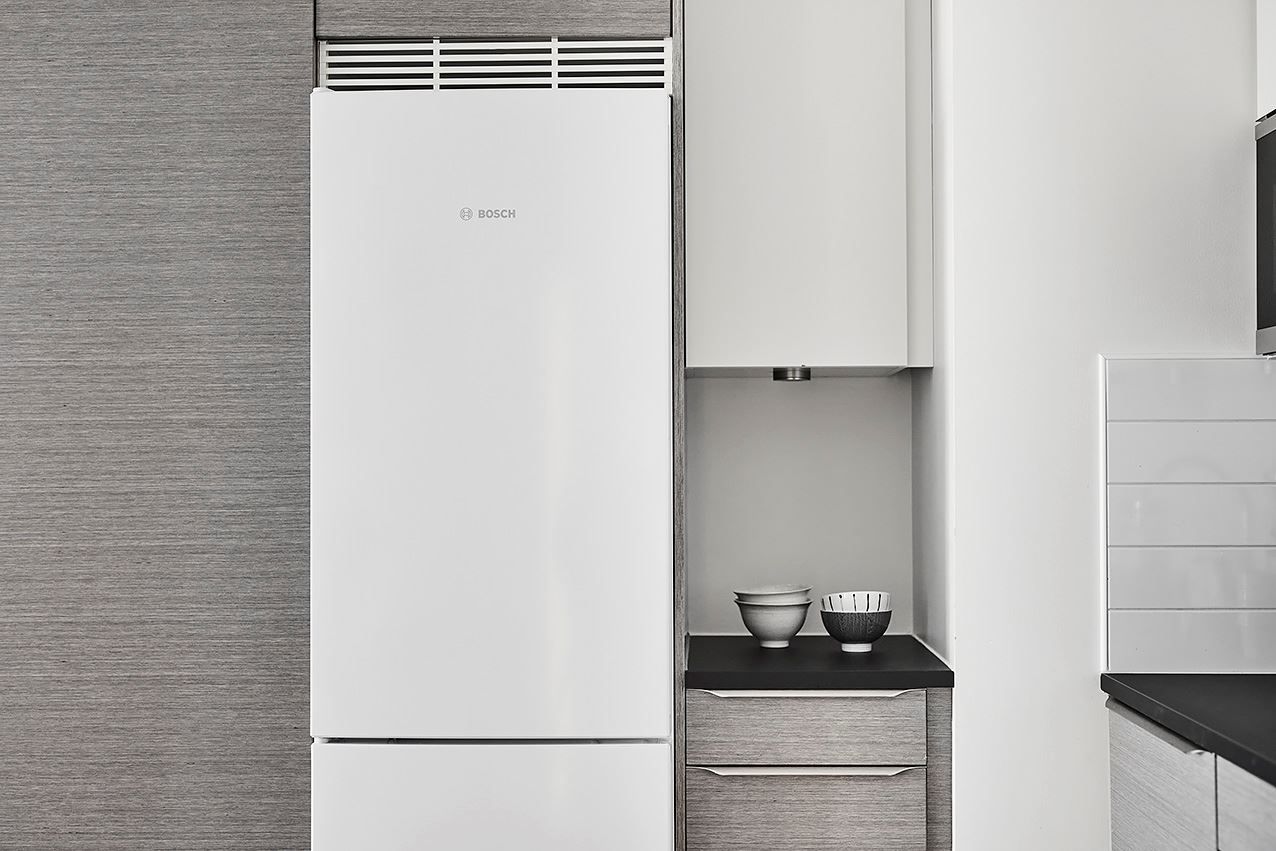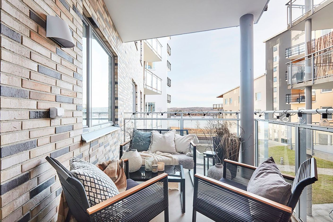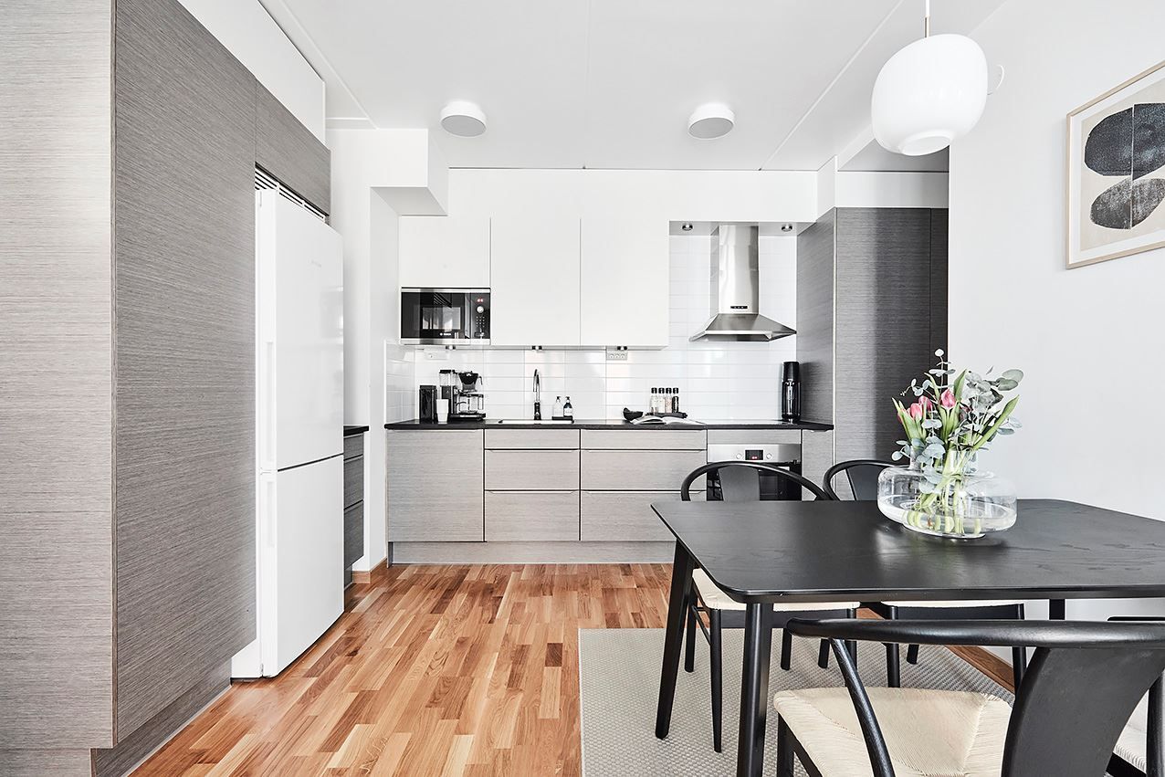 Köket ger ett trevligt uttryck inspirerat av träslaget ask och bjuder praktisk förvaring och snygga funktioner. Här har man verkligen lagt vikt vid lyxiga detaljer och funktion. Köket öppnar upp mot vardagsrummet och förlängs av den stora balkongen där du blickar ut mot vattnet mellan huskropparna. Här kommer du garanterat spendera många och långa sommarkvällar i goda vänners lag.
