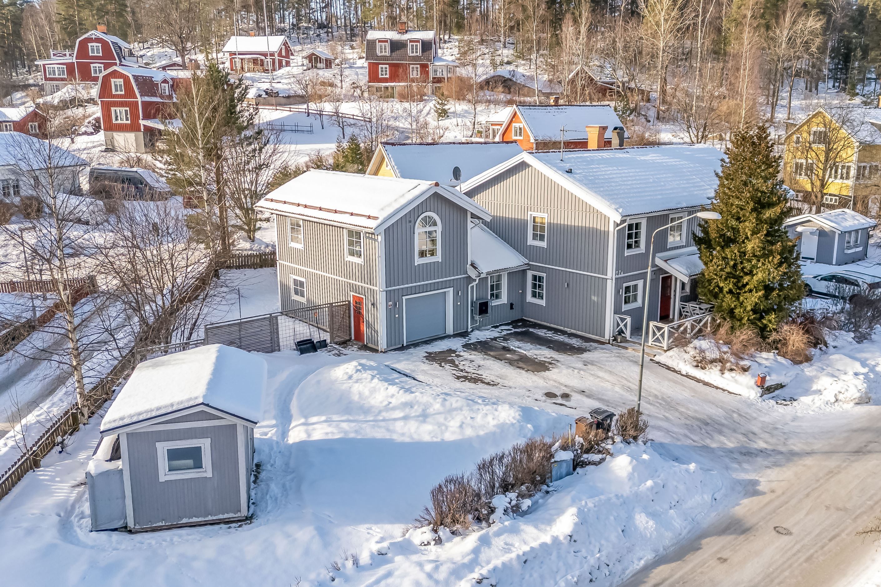 Tomten är lagom grön och lättskött med en insynsskyddad baksida som erbjuder en privat uteplats för familj och vänner. Här finns ytor som passar både lek och aktivitet. Till huset hör även ett rymligt garage.