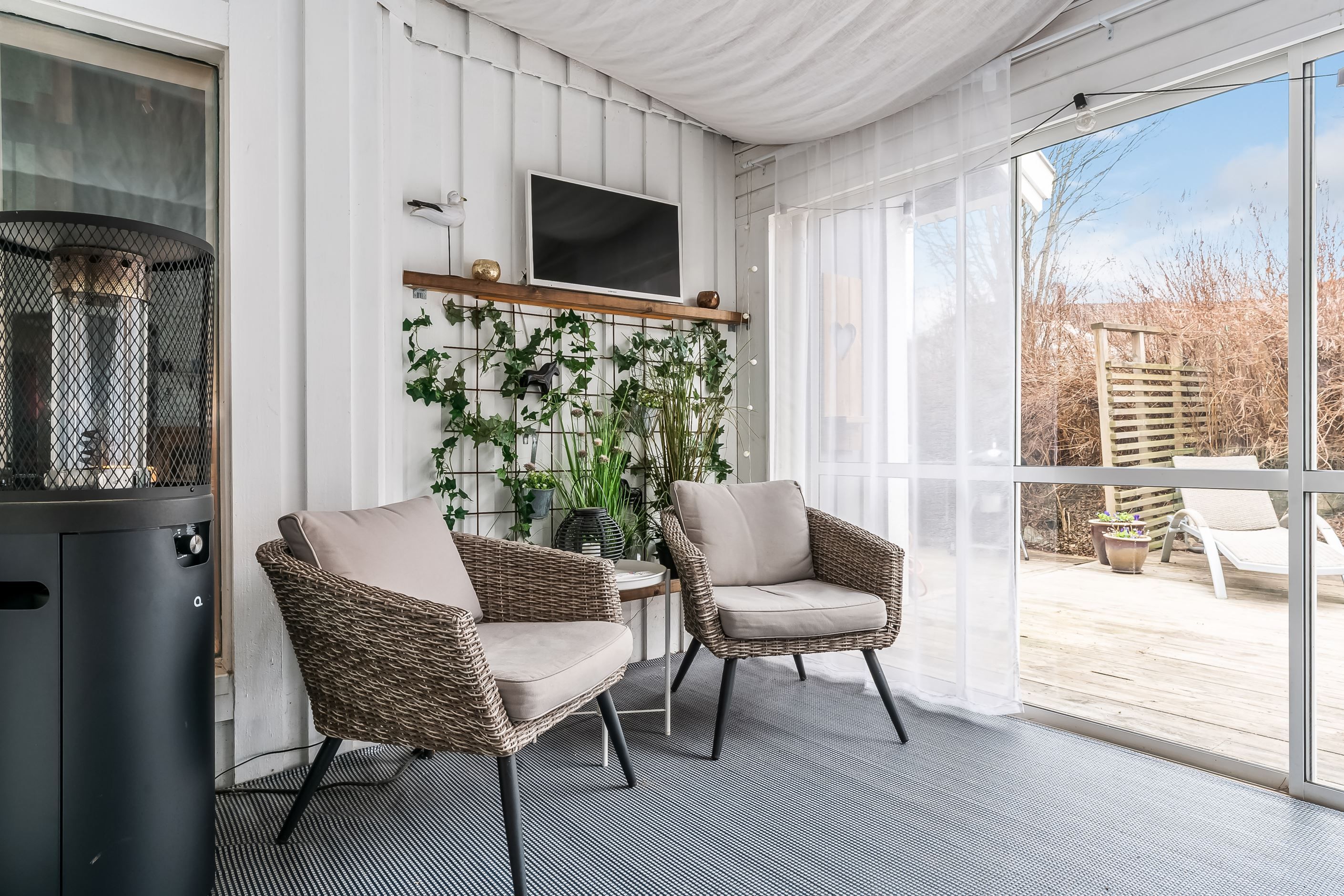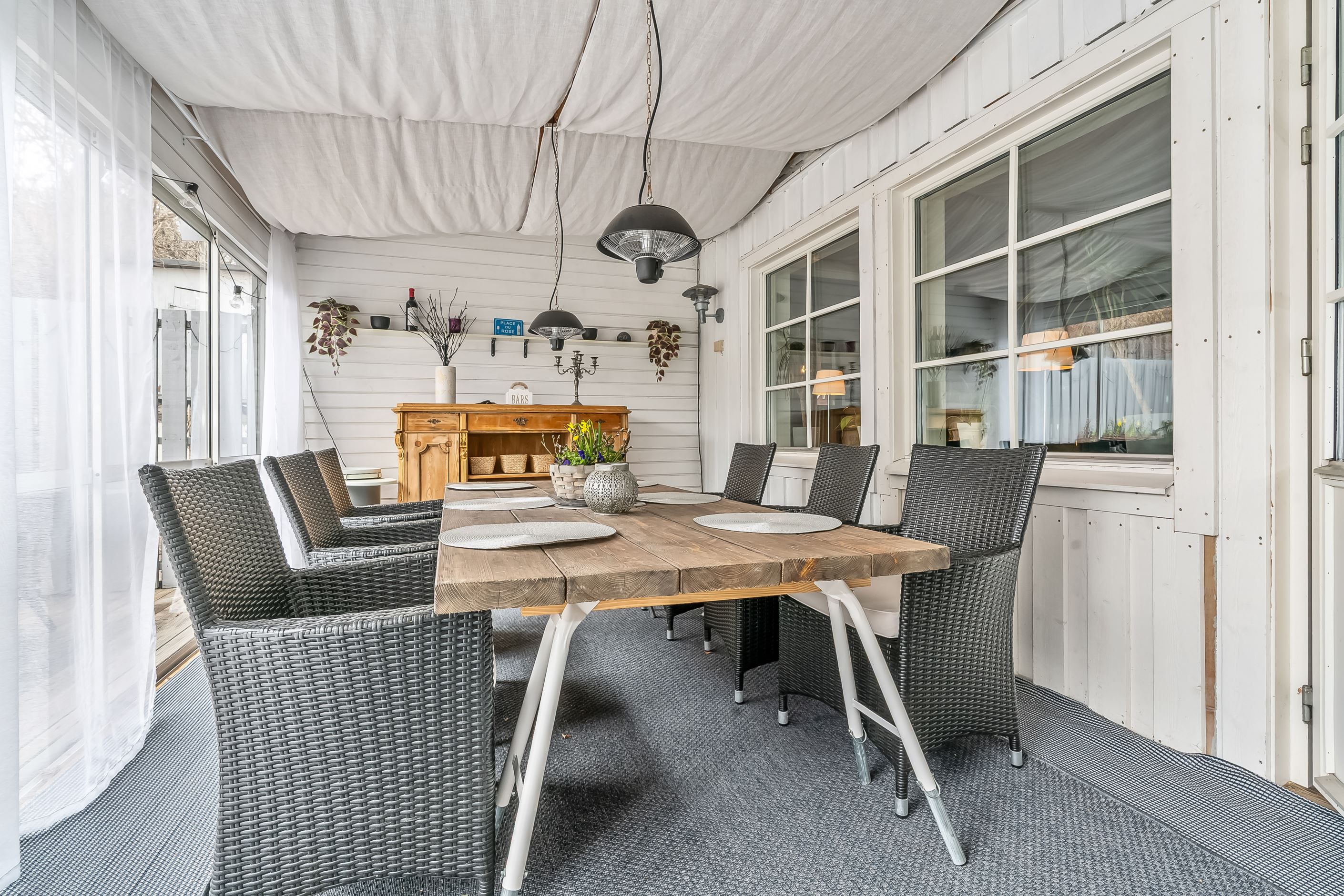 Det inglasade uterummet förlänger säsongen och blir snabbt en favoritplats för allt från familjemiddagar till lugna stunder. Den lättskötta tomten har en insynsskyddad baksida med gott om plats för lek, aktivitet och härliga grillkvällar med familj och vänner.