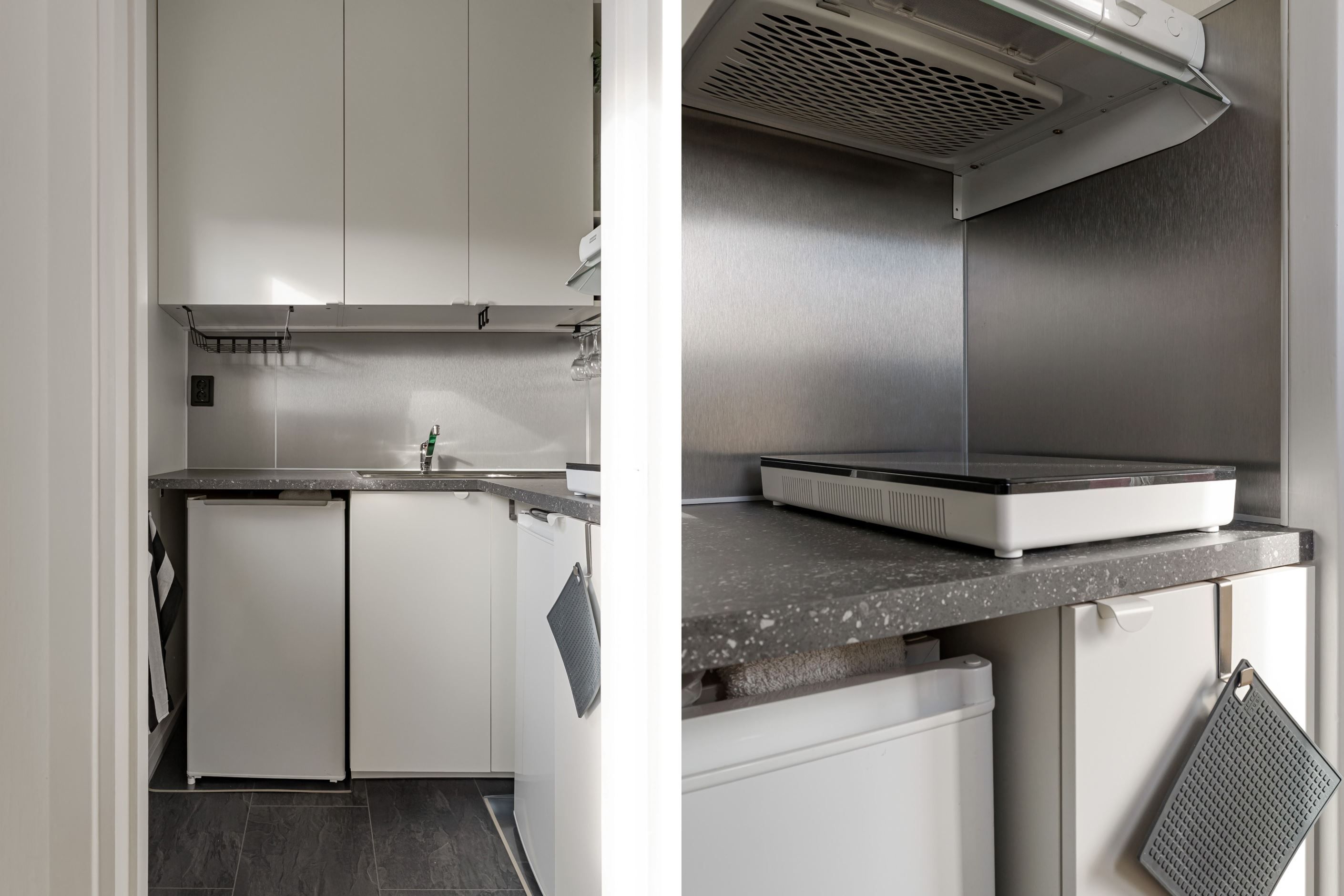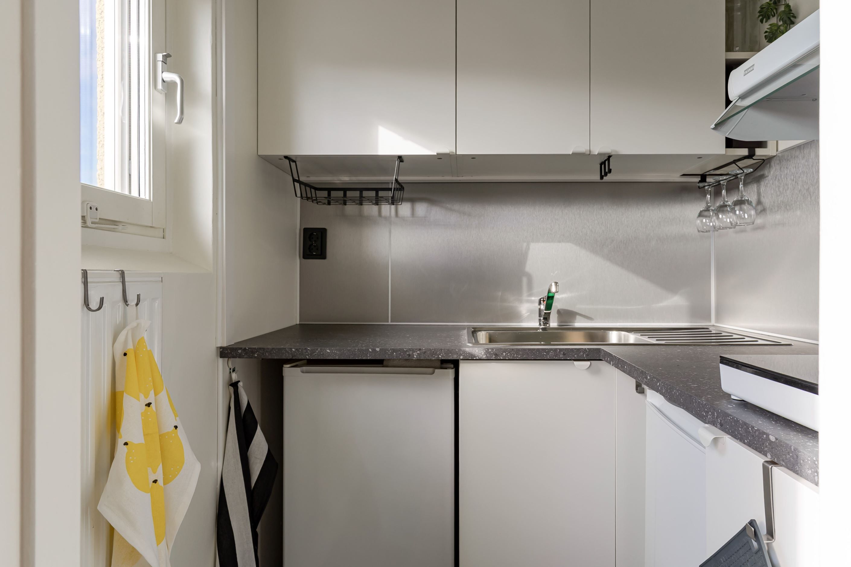 Bostaden välkomnar med en hall där det stilrena laminatgolvet på ett snyggt sätt markerar entrén och övergår i en ljus, enhetlig interiör. Vidare öppnar lägenheten upp sig i ett luftigt allrum där den smart placerade sovalkoven skapar en tydlig rumsindelning utan att ta bort känslan av rymd. Här finns gott om plats att forma ett hem med både vila och umgänge i fokus. Det renoverade köket är effektivt planerad för att maximera varje kvadratmeter, och badrummet är fräscht och funktionellt med egen tvättmaskin. Bostaden inrymmer flertalet garderober som möjliggör smidiga förvaringslösningar.