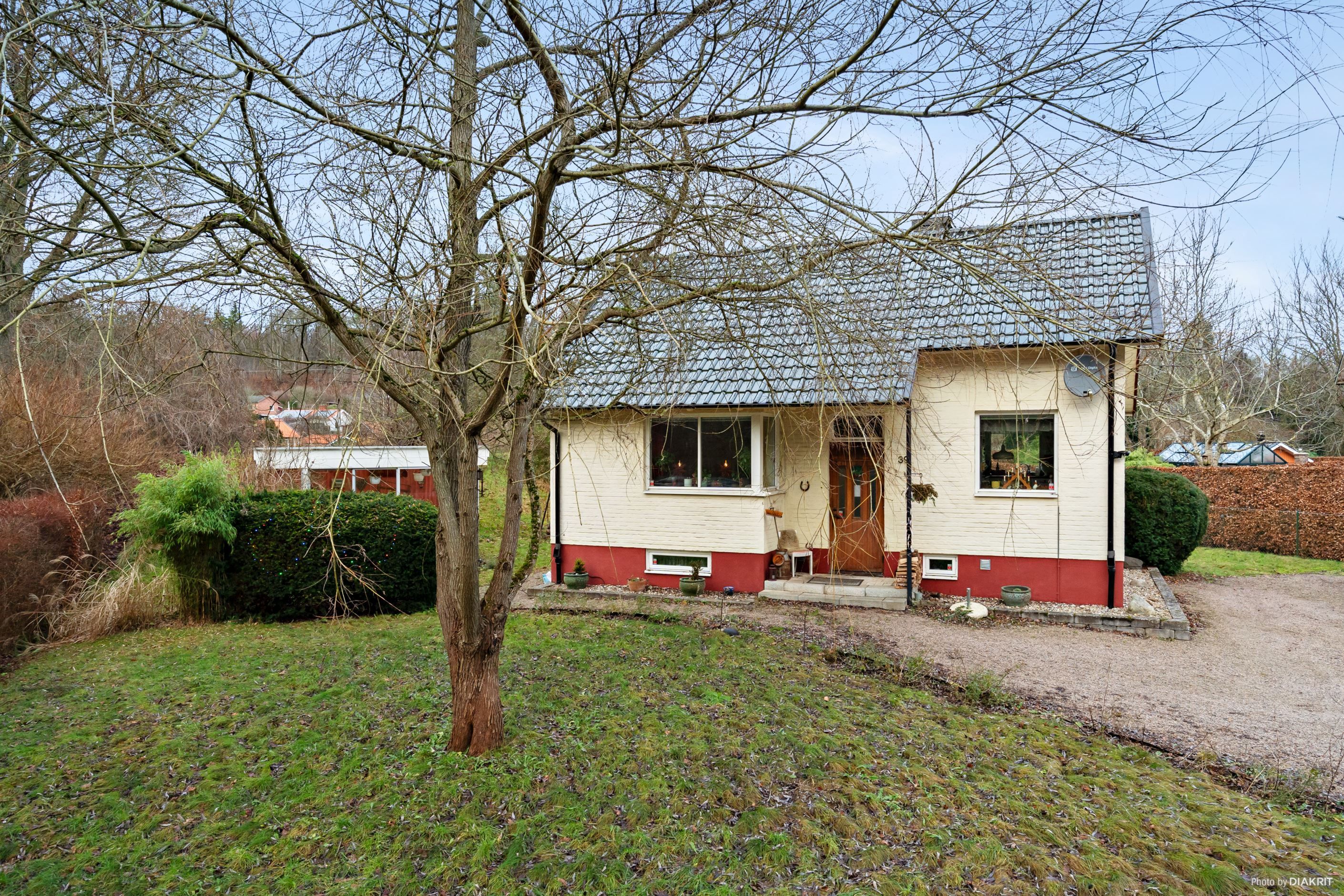 Mycket trivsam 1,5 plans villa med källare belägen i Stidsvig. På entréplan finner man kök, badrum och vardagsrum. En trappa upp finns de två sovrummen samt en gäst-toalett. I källaren, som har klinkers, finns ett sovrum/hobbyrum samt tvättstuga och förvaringsutrymmen. Flera större renoveringar har skett runt 2011-2012, tex nytt tak med glaserade tegelpannor, fönster, värmepump (luft/vatten), ny el, kök, badrum mm. Tomten har en stor uppfart med singel med plats för flera bilar. Här finns även ett friliggande inglasat uterum. Fiber finns!