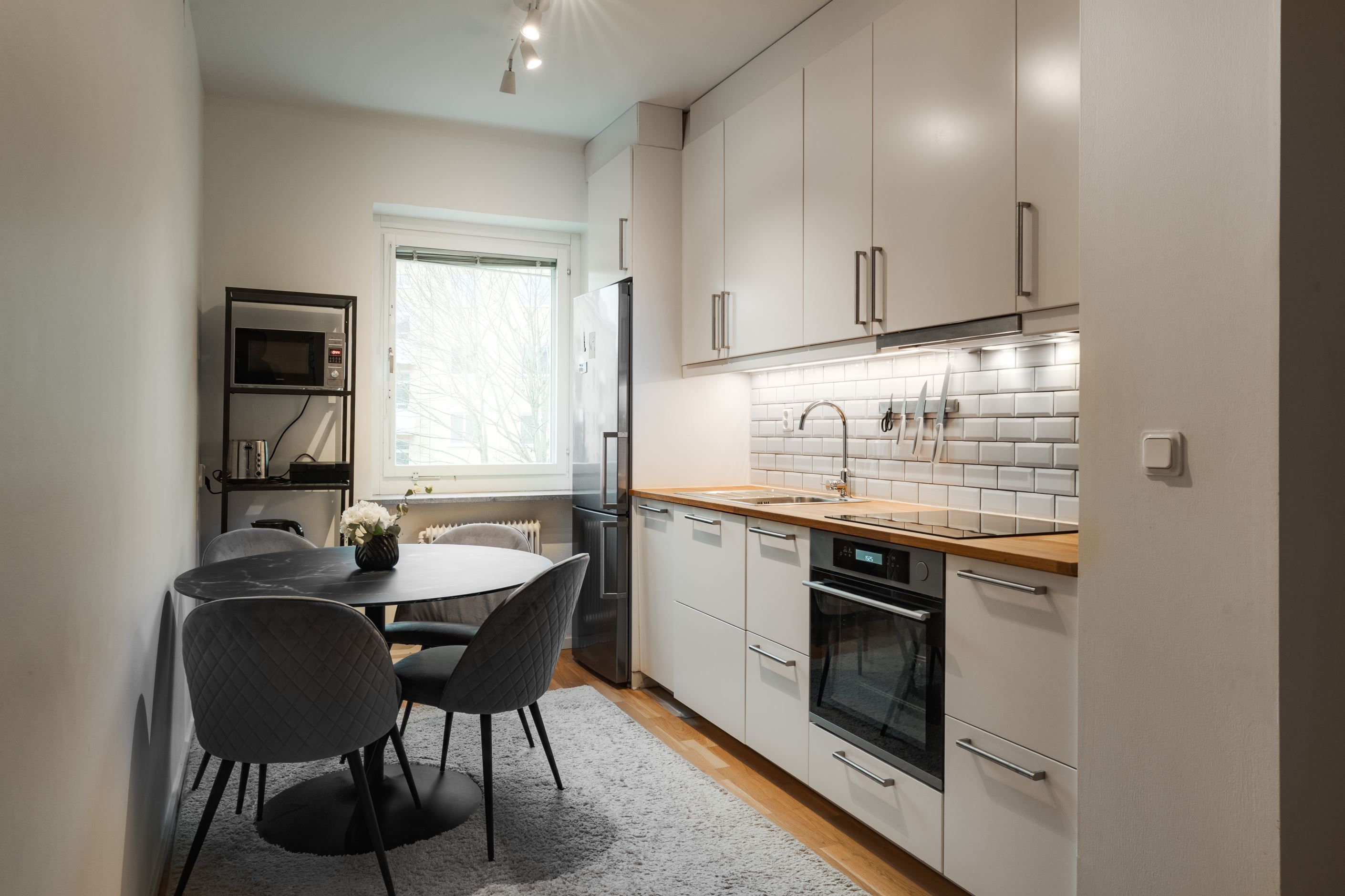 Välkommen till Stockholmsvägen 13B och denna trivsamma 2:a som erbjuder ett stilrent och funktionellt boende. Bostaden erbjuder genomgående ljusa ytskikt och med fönster i två väderstreck genereras ett vackert ljusflöde som skapar en inbjudande atmosfär. Här möts du av ett modernt kök med goda arbetsytor och plats för matbord, perfekt för både vardagsmiddagar och sociala tillställningar. Vardagsrummet är rymligt och lättmöblerat med generöst ljusinsläpp, och planlösningen gör det enkelt att anpassa efter dina behov. Bostaden rymmer även ett fräscht badrum med både badkar och duschlösning samt god förvaring.