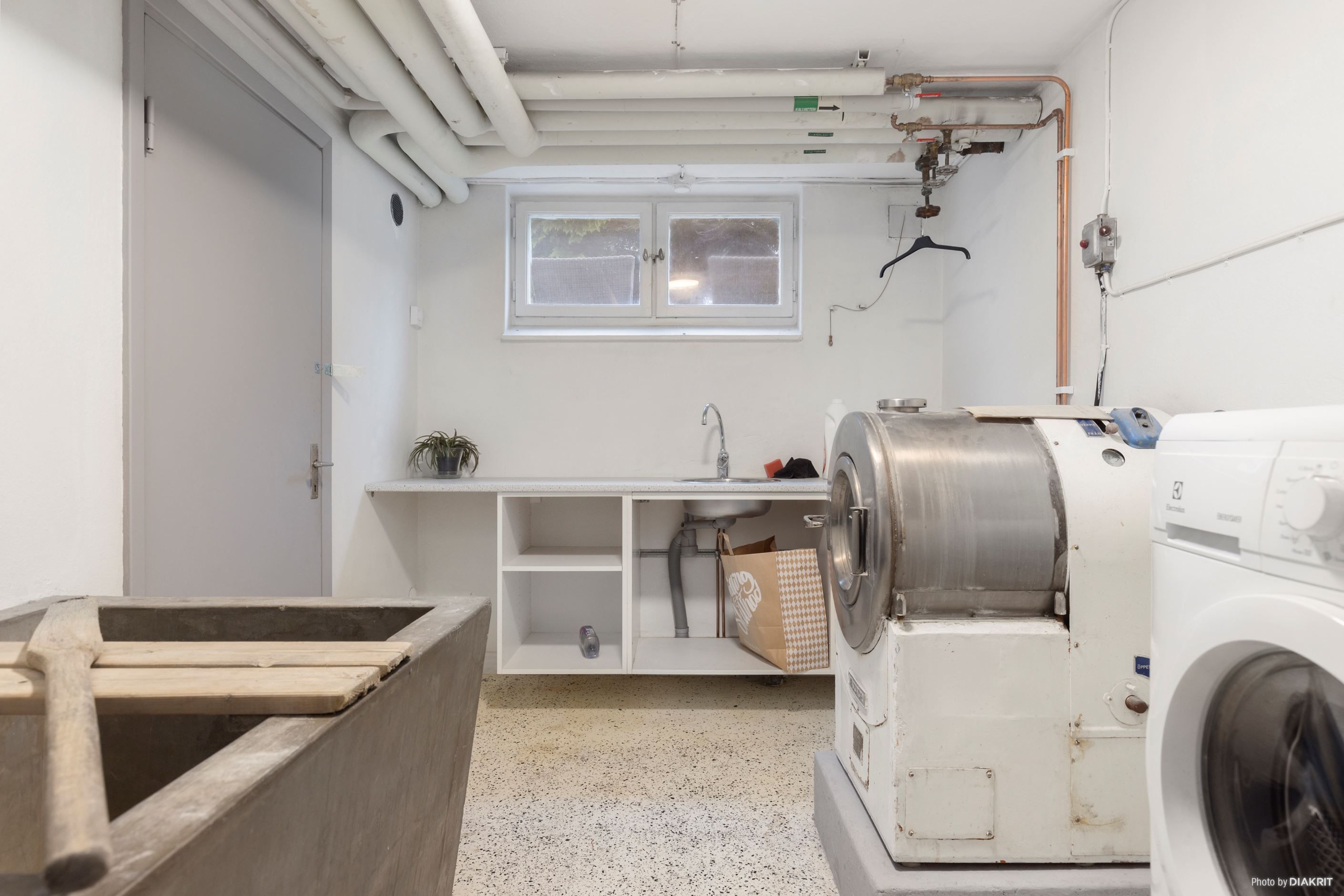 Byggnaden är uppförd i gedigen konstruktion med gjutet valv, vilket ger en robust och ljudisolerad miljö. I den rymliga källaren finns gott om förrådsmöjligheter för alla hyresgäster – ett stort plus för långsiktig trivsel.