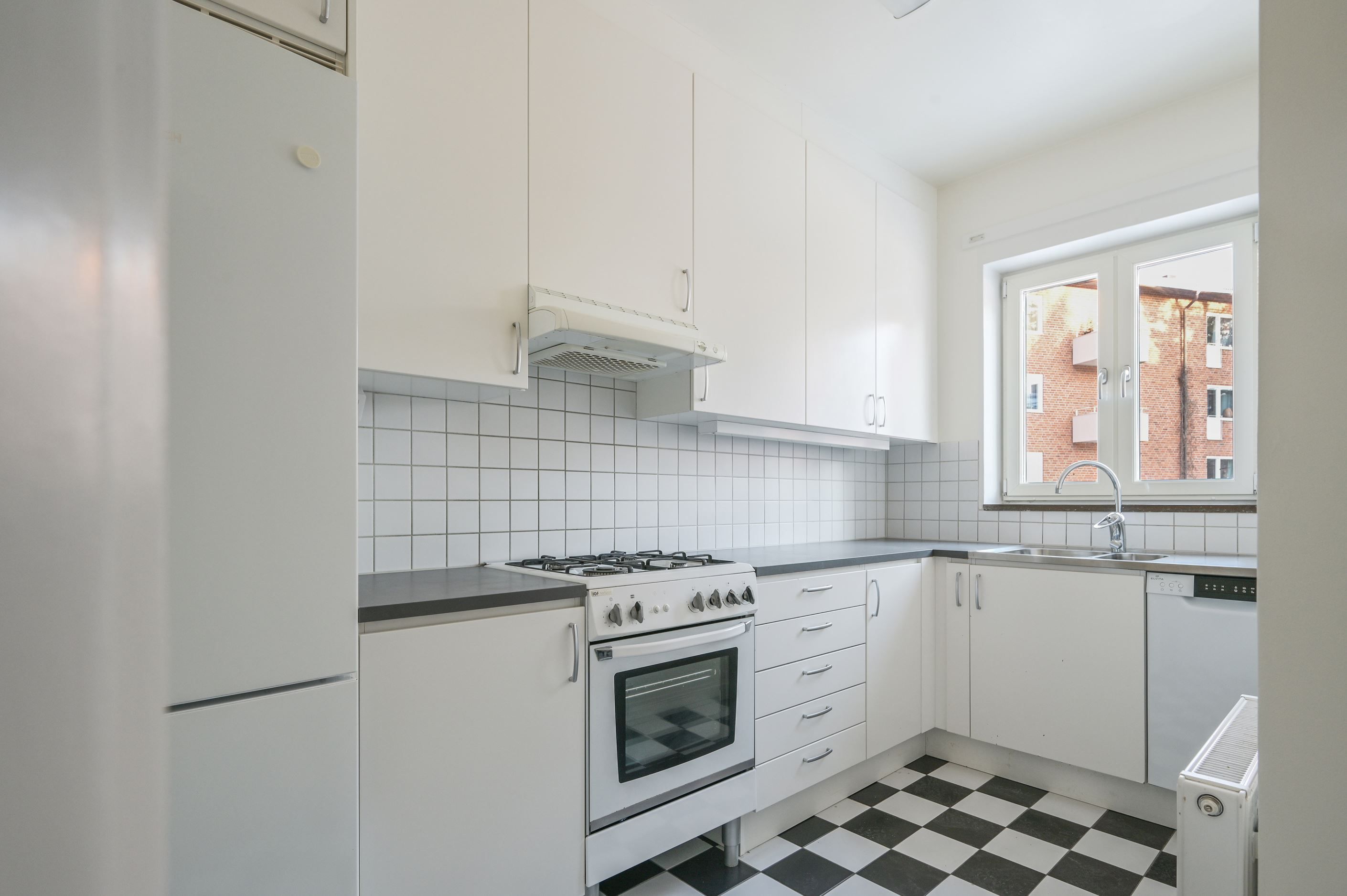 Köket är fullt utrustat med moderna vitvaror såsom spis, kyl/frys och diskmaskin. Med ett smart upplägg får du goda arbetsytor och förvaring, perfekt för den som gillar att laga mat.