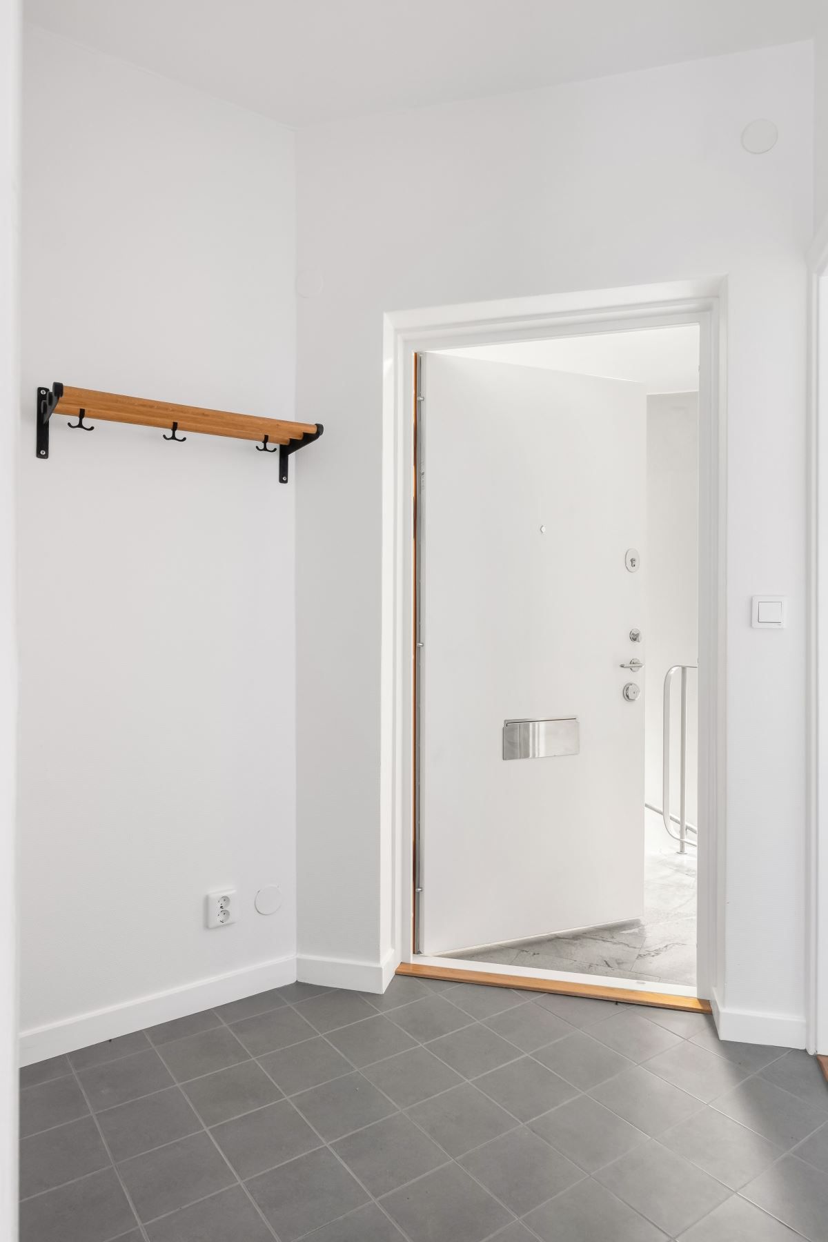 Det rymliga vardagsrummet erbjuder plats för både soffgrupp och andra inredningsmöjligheter, vilket ger en luftig och inbjudande känsla. De effektiva kvadratmetrarna är välplanerade, vilket gör att rummet känns större än det är. Här får du plats att umgås och skapa en trivsam miljö. Balkongen med fritt läge, ger dig möjlighet att njuta i solen. Här kan du skapa en grönskande oas eller en plats för avkoppling med utsikt över omgivningarna.