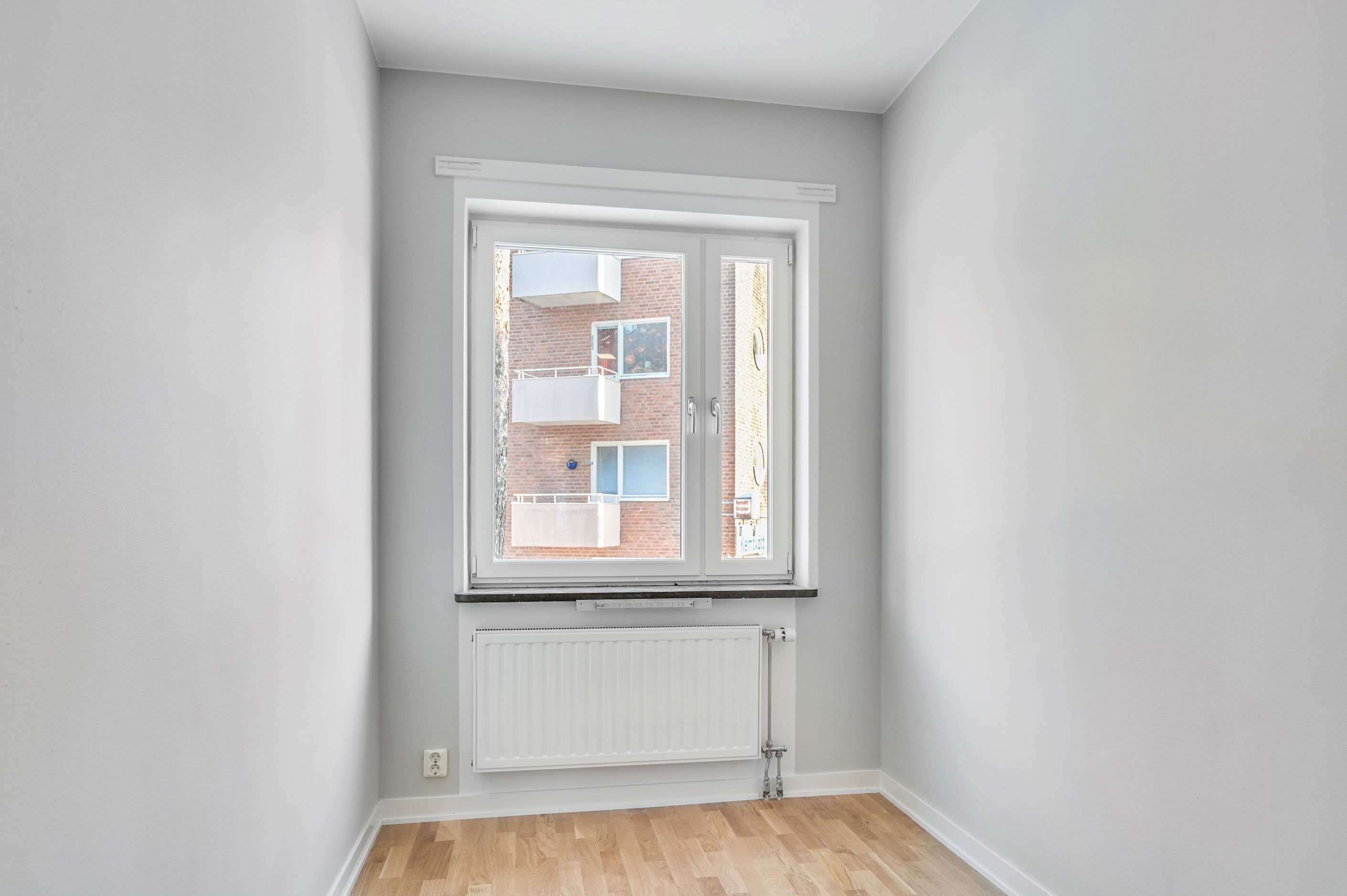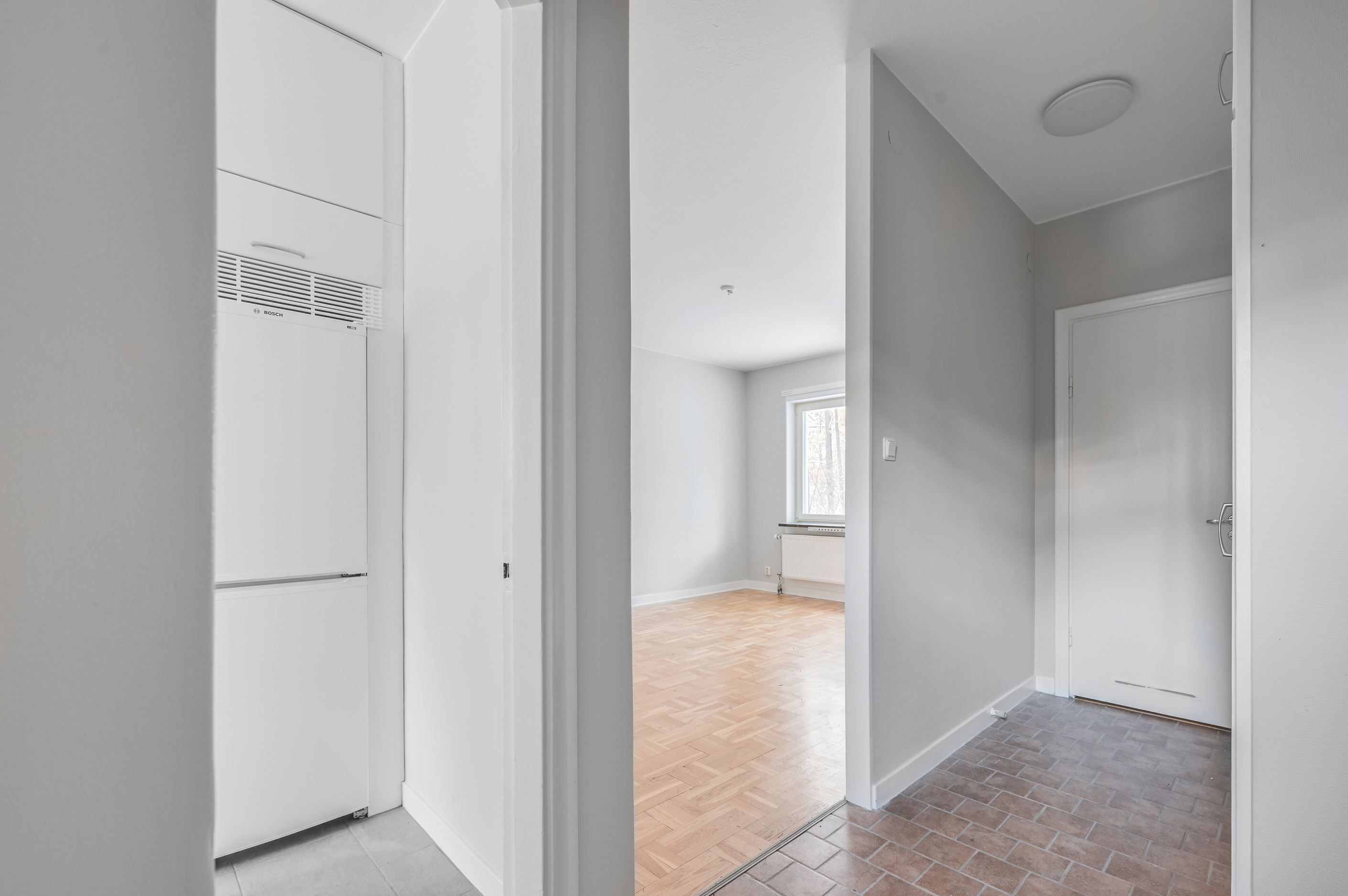 Det rymliga vardagsrummet erbjuder plats för både soffgrupp och andra inredningsmöjligheter, vilket ger en luftig och inbjudande känsla. De effektiva kvadratmetrarna är välplanerade, vilket gör att rummet känns större än det är. Här får du plats att umgås och skapa en trivsam miljö. Balkongen med fritt läge, ger dig möjlighet att njuta i solen. Här kan du skapa en grönskande oas eller en plats för avkoppling med utsikt över omgivningarna.