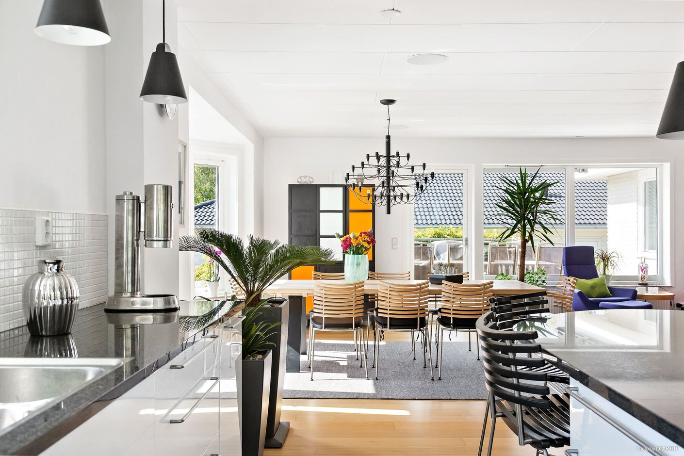 I attraktiva Hjuvik erbjuds nu ett ljust och välplanerat enplanshus med källare – ett hem som kombinerar generösa ytor med flexibilitet för hela familjen. Bostaden omfattar 7 rum och kök, med en öppen och inbjudande planlösning där kök och vardagsrum samspelar på ett naturligt sätt. Här finns gott om plats för både större middagsbord och soffgrupp, och den öppna spisen skapar en varm och trivsam atmosfär. Ljusa ekgolv löper genom stora delar av entréplanet.