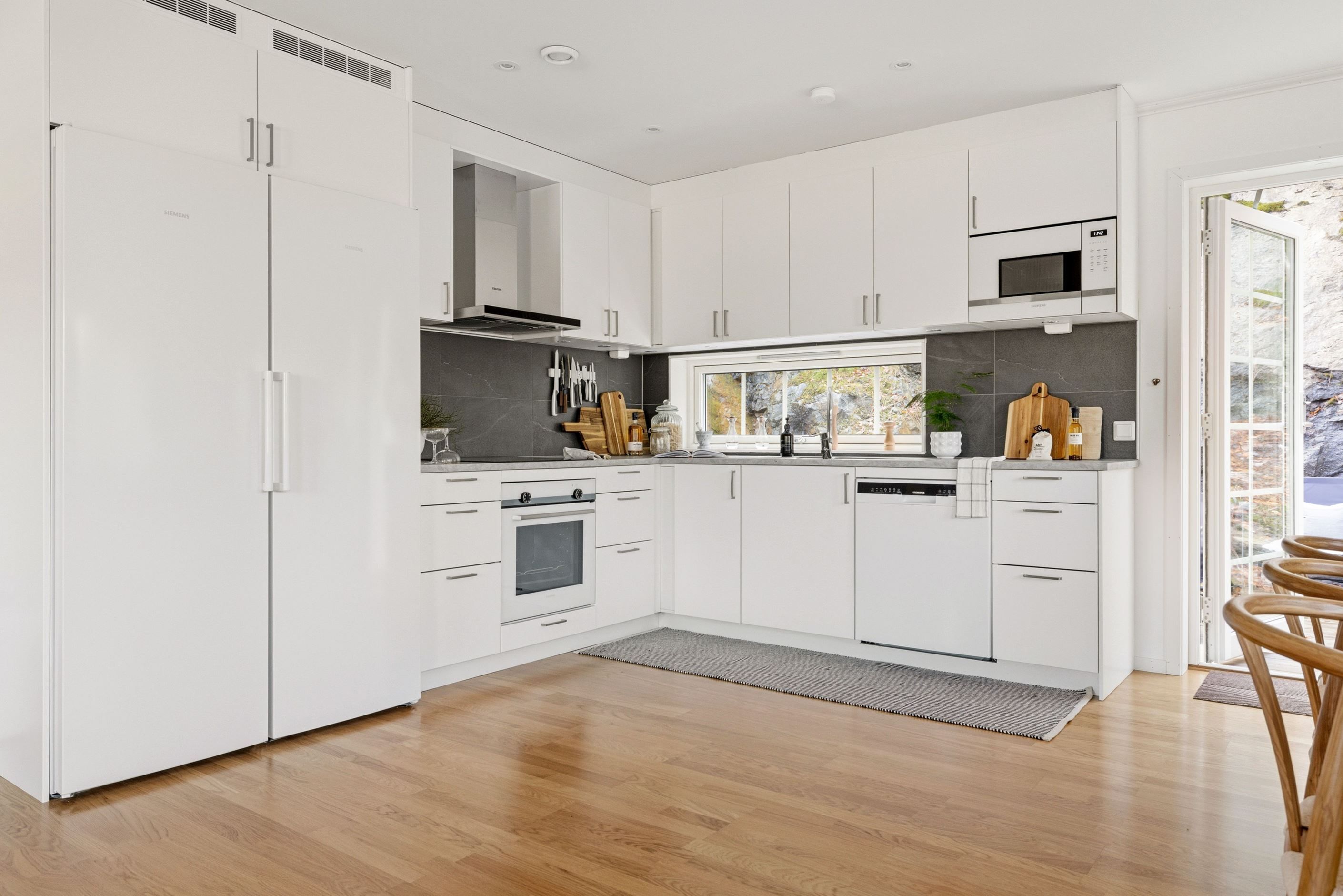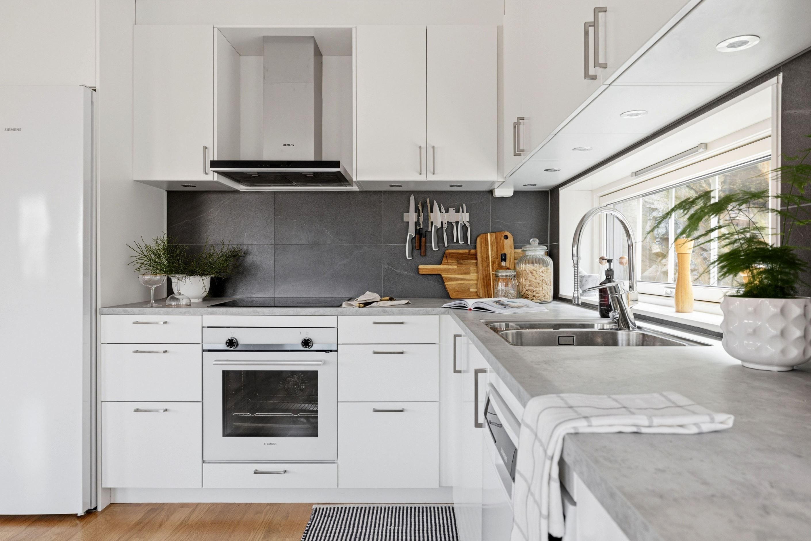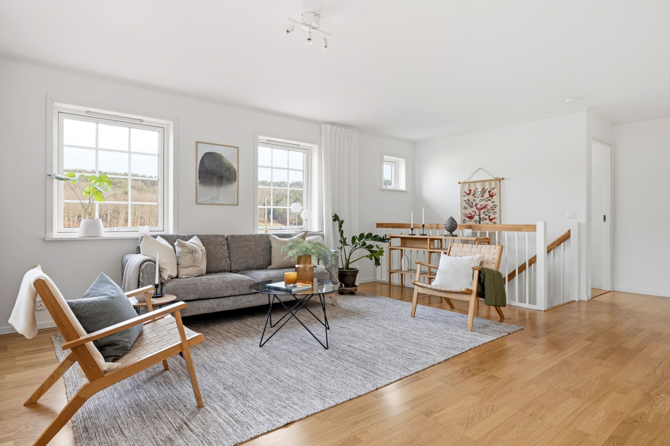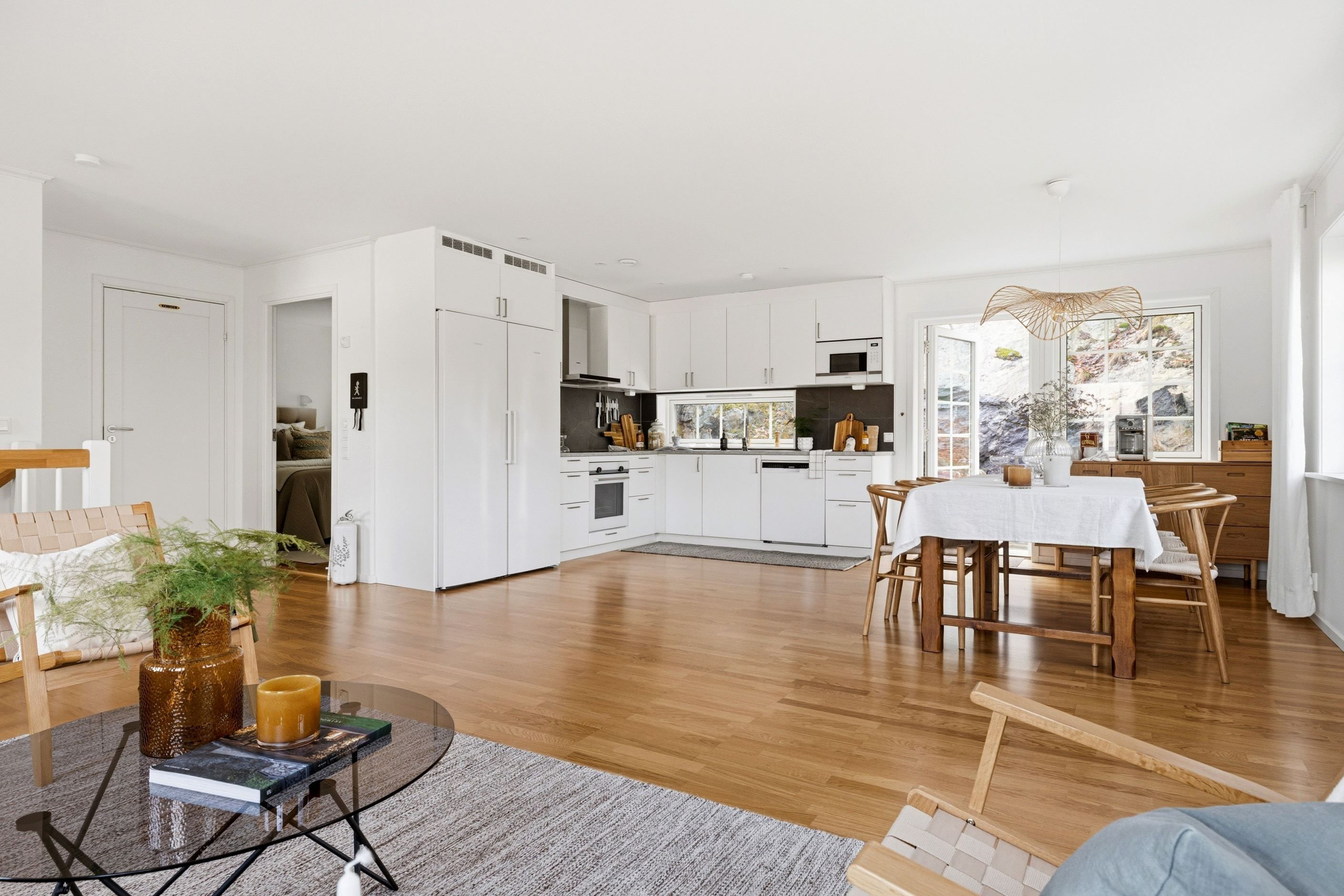 Interiört präglas bostaden av ljusa färgval, stilrena material och en modern känsla rakt igenom. Här är det bara att flytta in och börja trivas i ett hem där allt fortfarande känns nytt och noggrant genomtänkt.