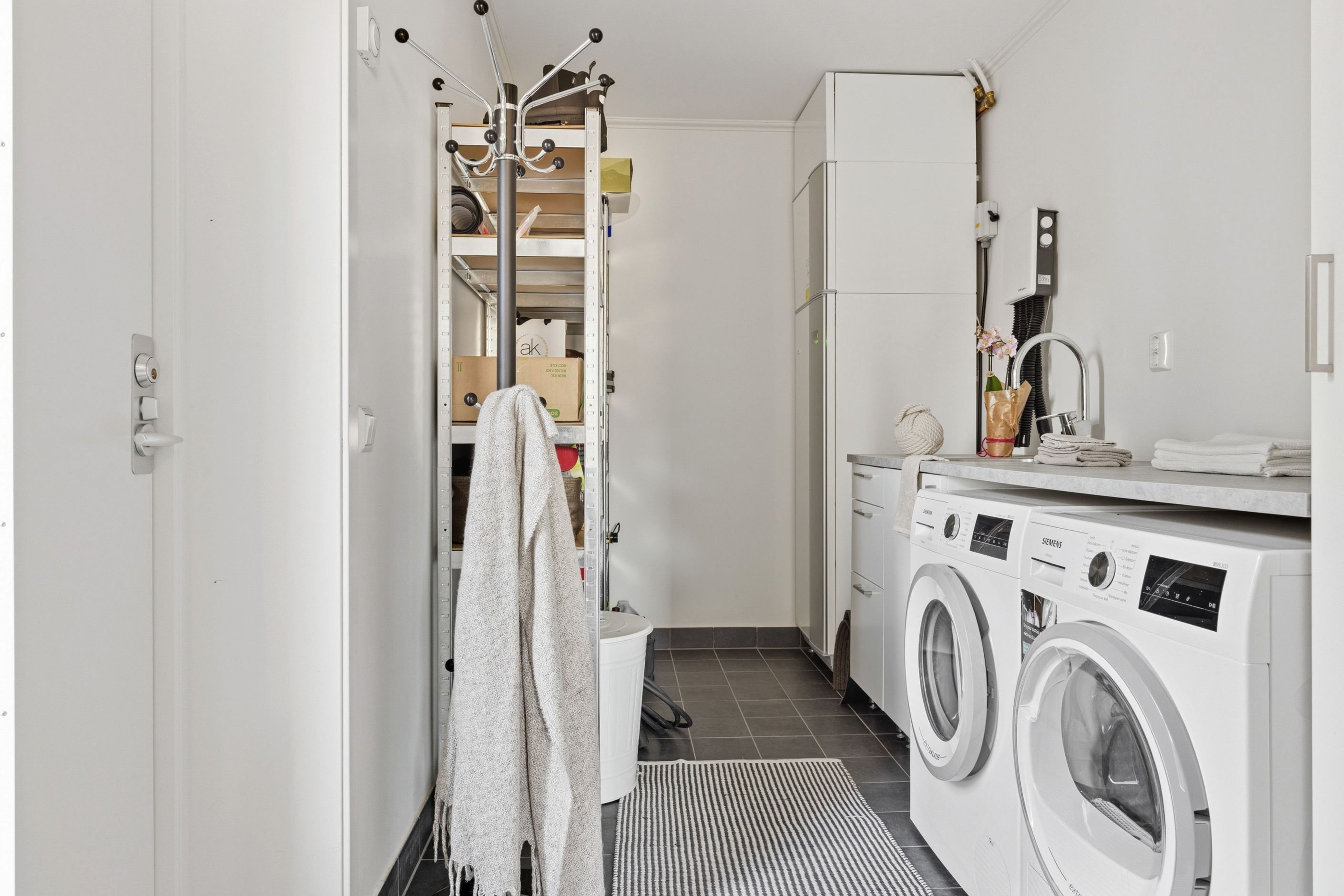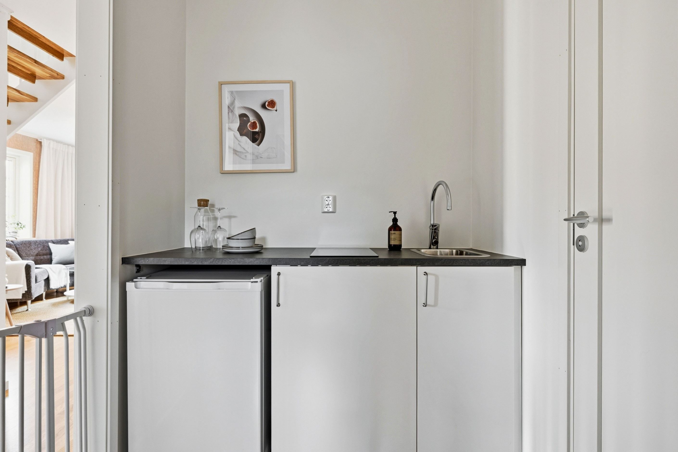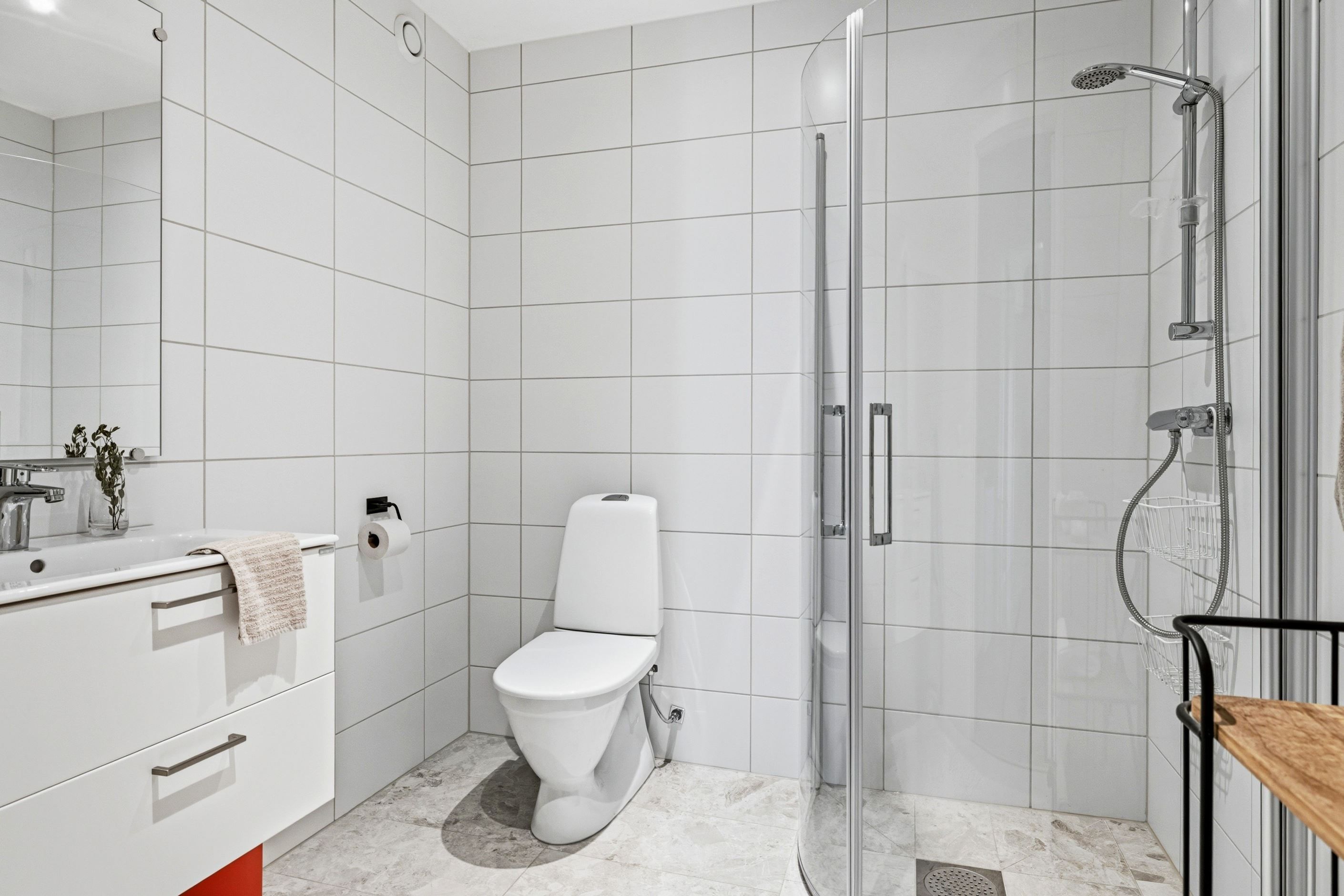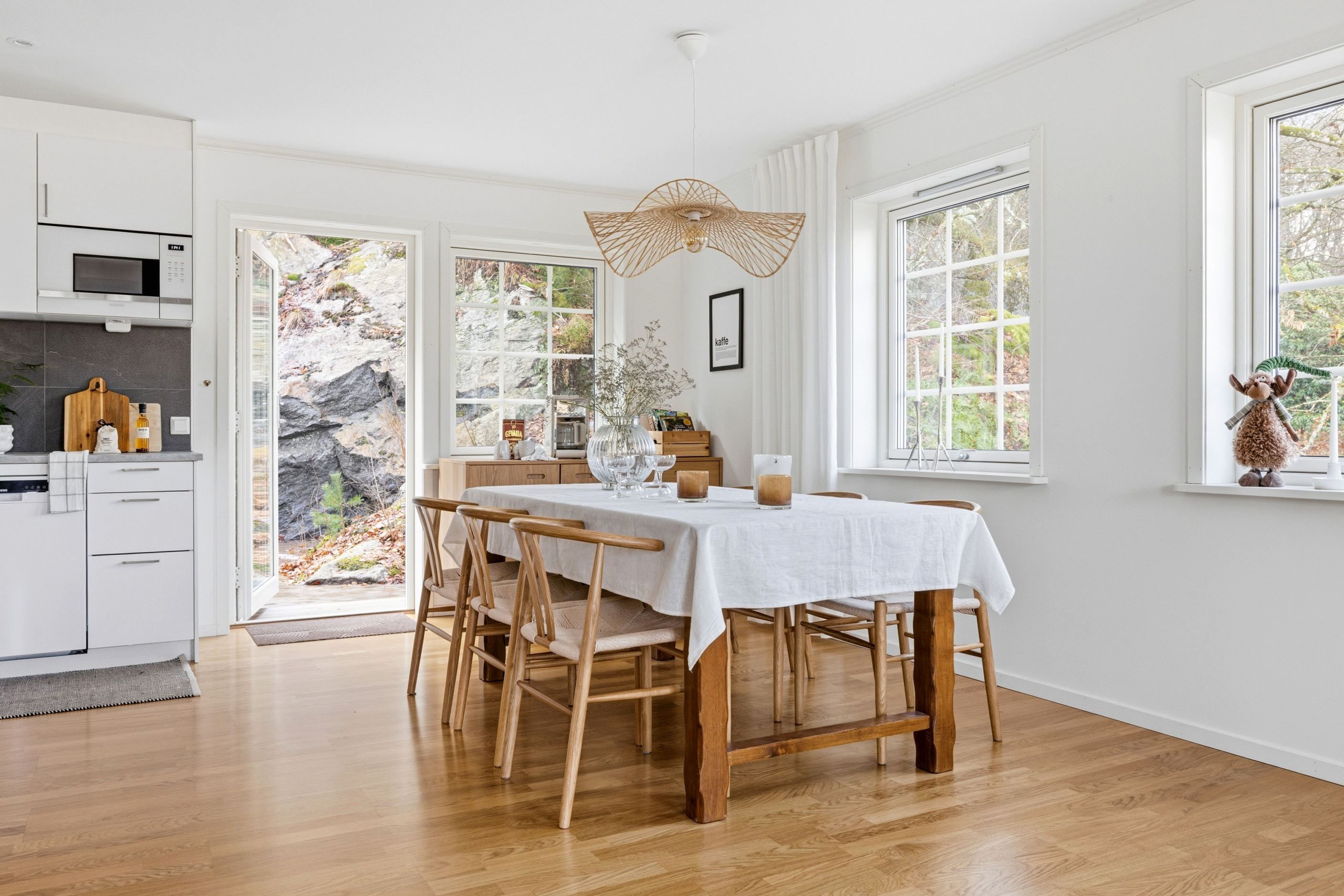 Interiört präglas bostaden av ljusa färgval, stilrena material och en modern känsla rakt igenom. Här är det bara att flytta in och börja trivas i ett hem där allt fortfarande känns nytt och noggrant genomtänkt.