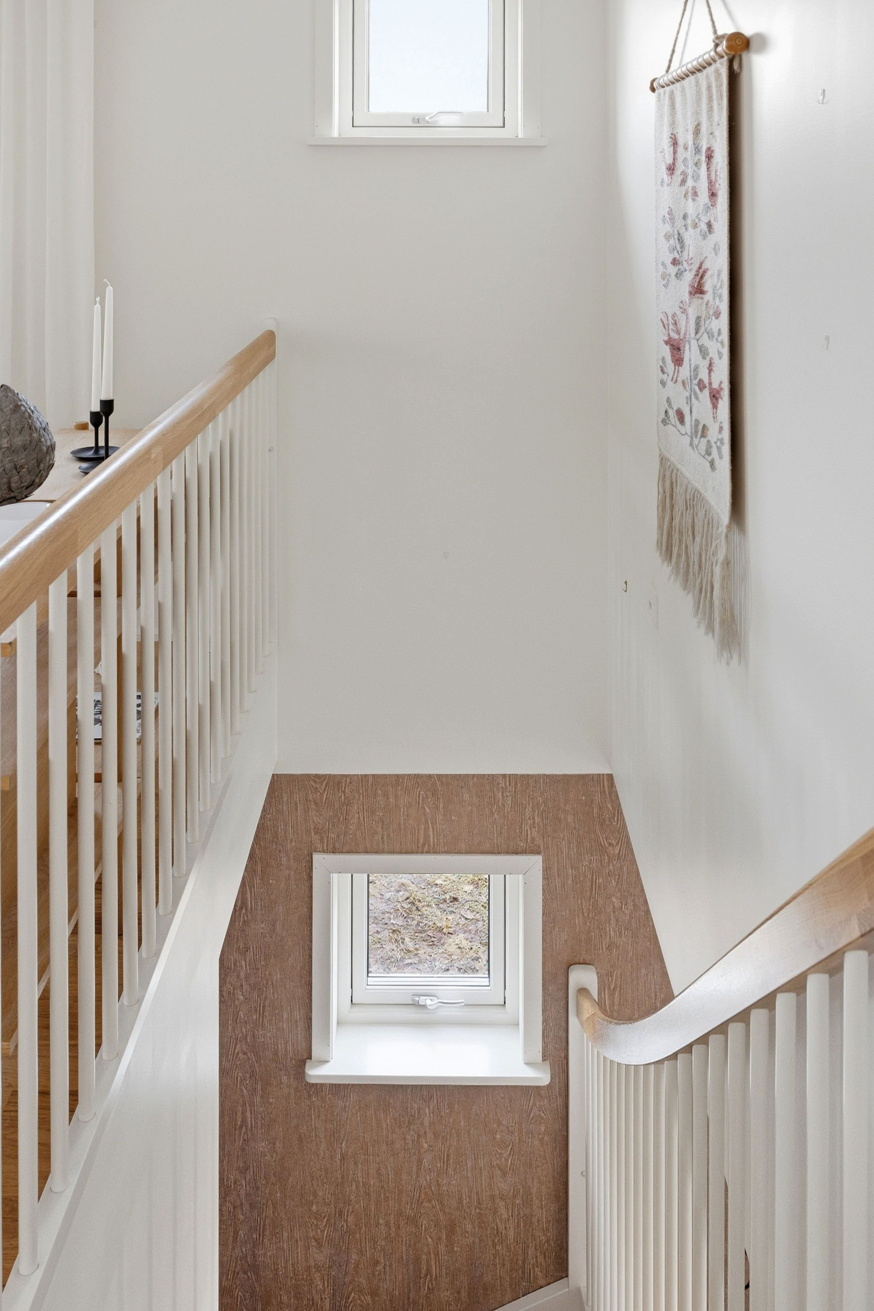 Huset är fördelat på två plan där det nedre planet erbjuder en praktisk och flexibel del av hemmet. Här möts du av en entré som leder vidare till ett allrum – idealiskt som tv-rum, lekyta eller extra sällskapsyta. På detta plan finns även två sovrum, en kokvrå, ett helkaklat badrum samt en välutrustad tvättstuga med groventré. Därtill finns ett stort förråd som ger gott om plats för förvaring.