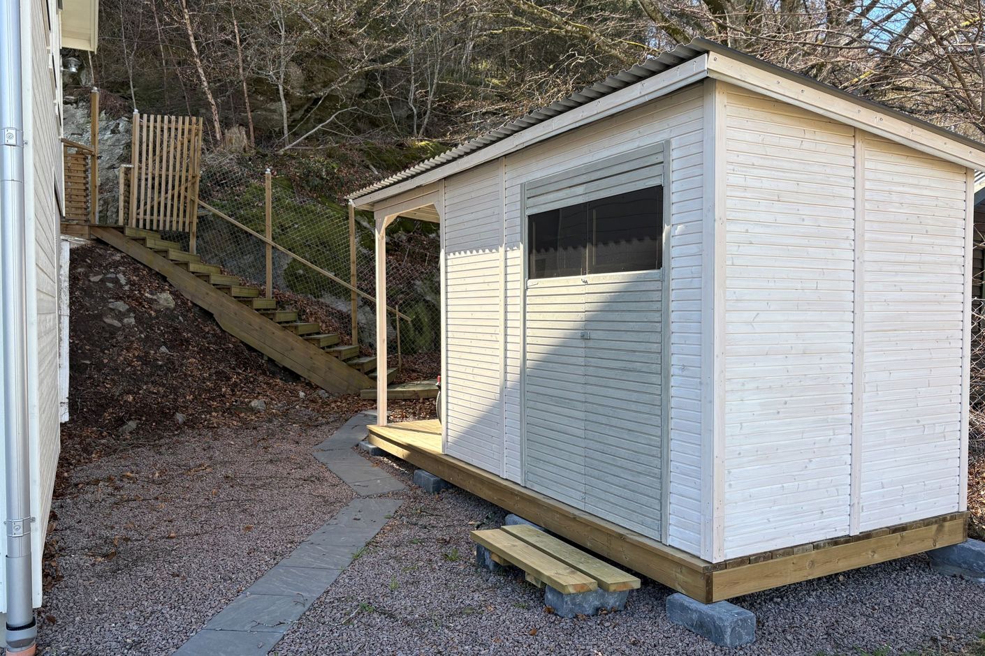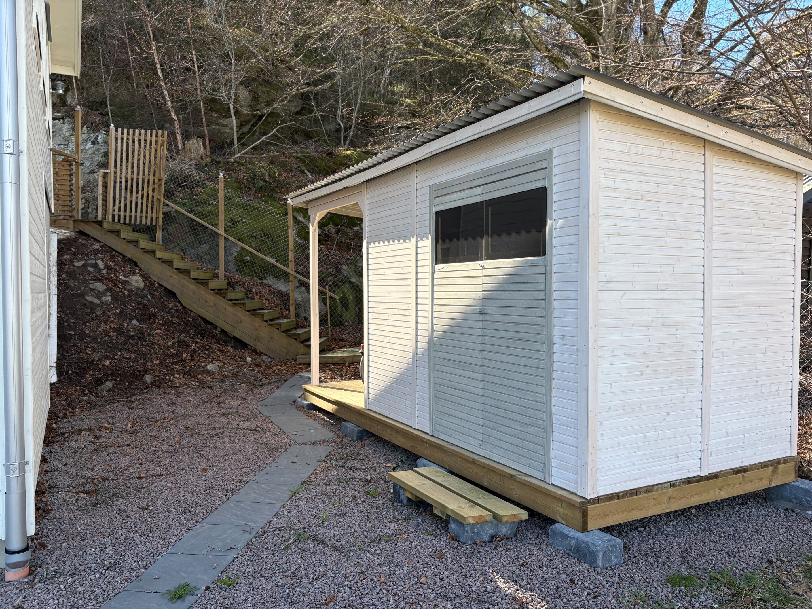 Tomten erbjuder både funktion och trivsel. Ett praktiskt förråd ger extra förvaringsutrymme, och det inhägnade området gör fastigheten särskilt lämpad för dig med husdjur eller små barn. På uppfarten finns plats för flera bilar.