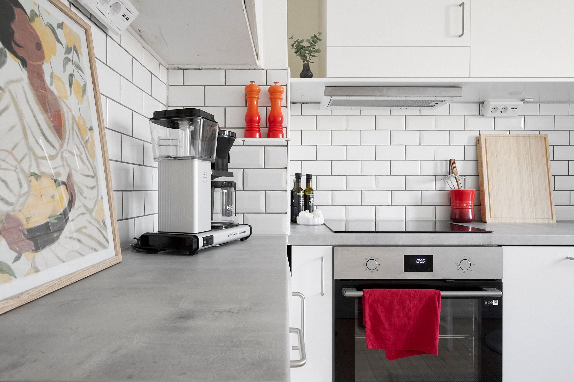 Lägenheten erbjuder ett luftigt allrum med gott om plats för både säng, soffa och arbetsplats. De ljusa ytskikten tillsammans med det generösa fönsterpartiet skapar en harmonisk och inbjudande känsla. Köket är modernt och funktionellt med bra förvaring, arbetsytor och naturlig plats för matbord vid fönstret, perfekt för både vardag och middagar med vänner. Badrummet är fräscht och helkaklat med dusch bakom glasvägg, god förvaring samt stilrena materialval. Här finns även tvättställ med kommod och spegelskåp.