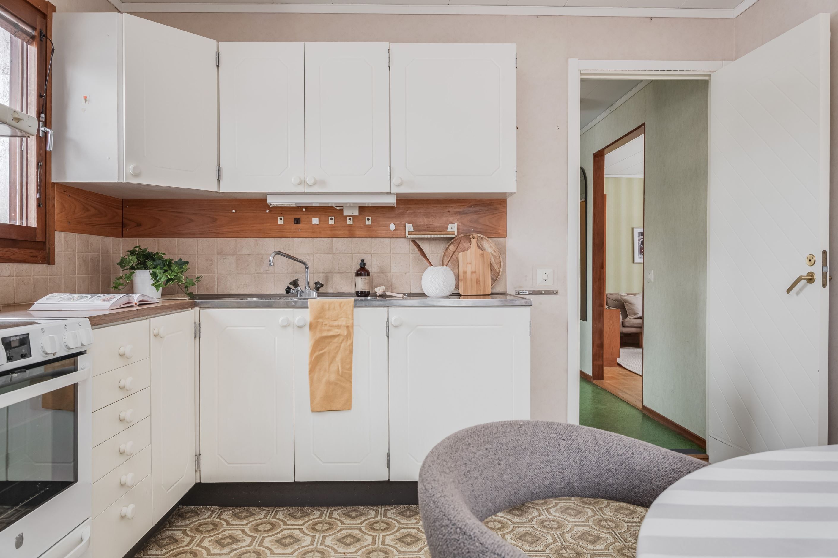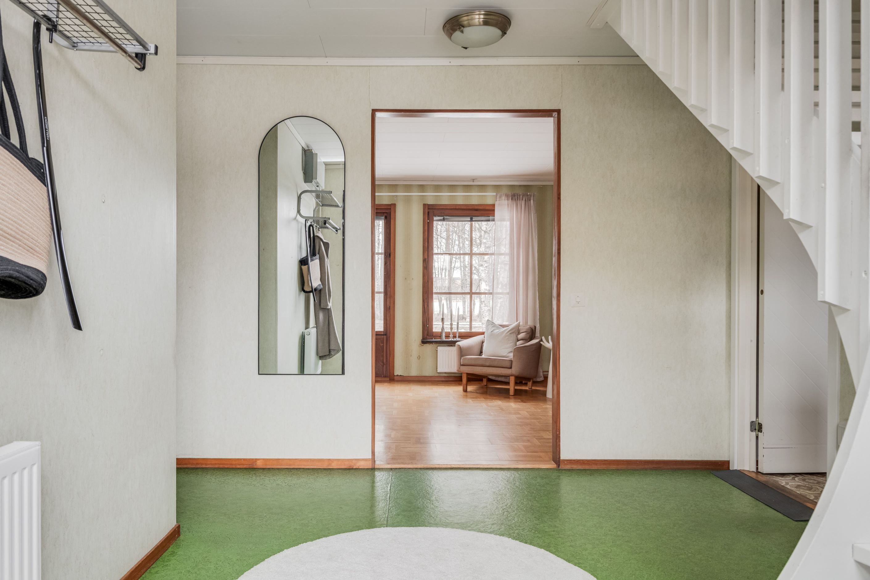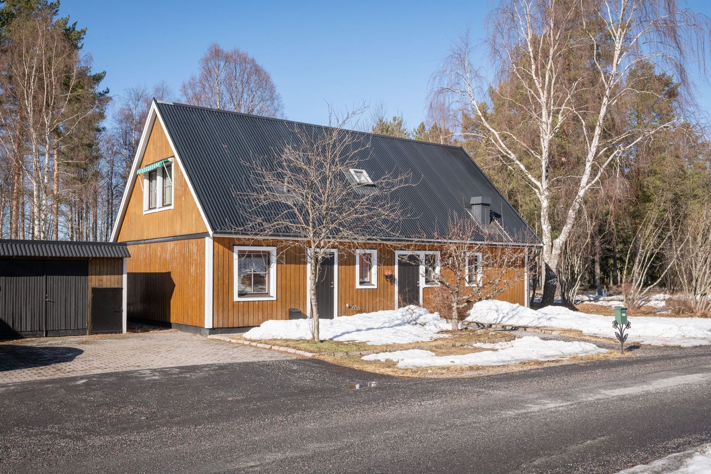 Tomten är genomtänkt med fin plattsättning på uppfarten och framför entrén som ger ett välordnat första intryck. Via groventrén når man praktiskt tvättstugan, vilket underlättar vardagen.