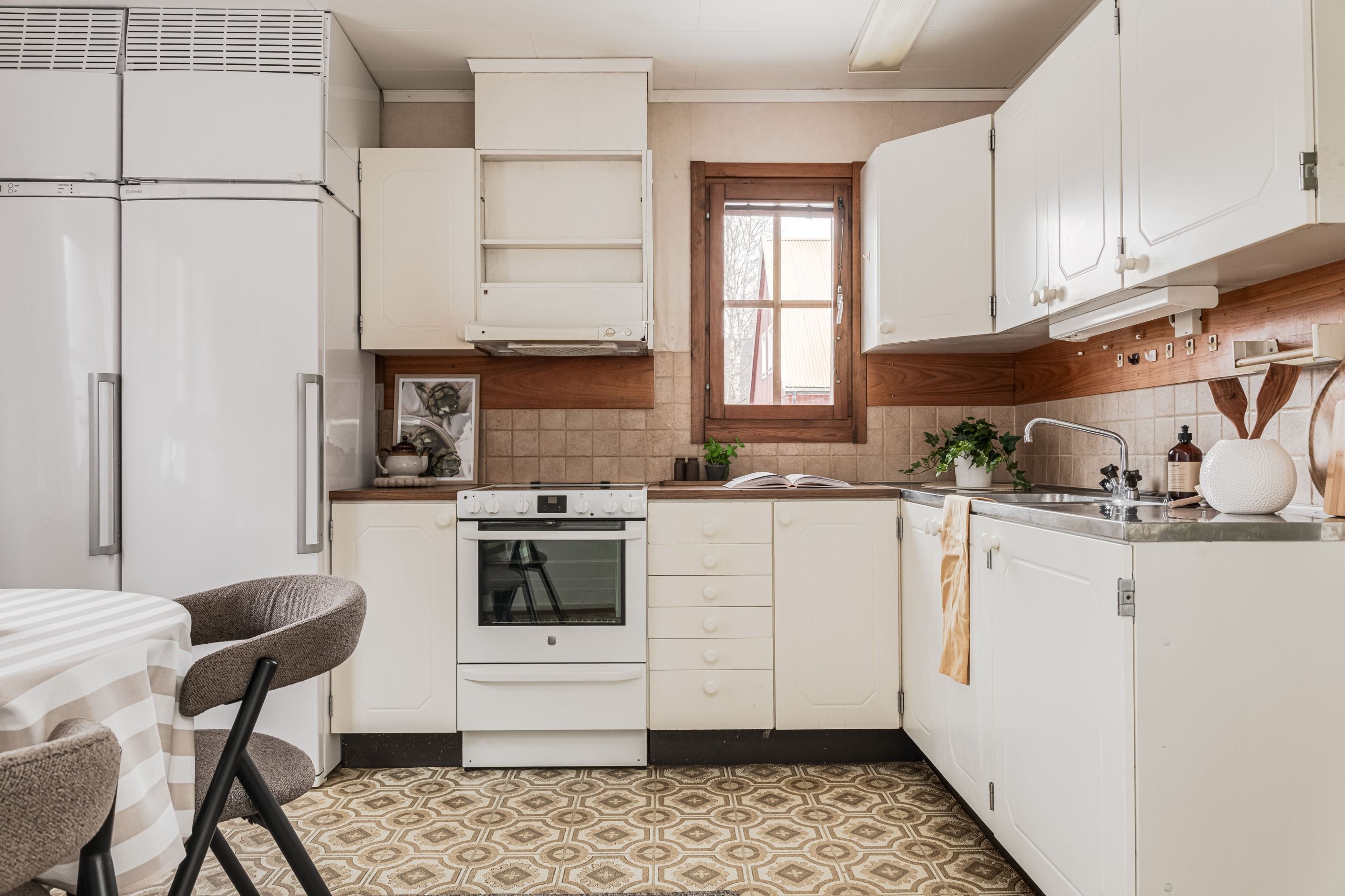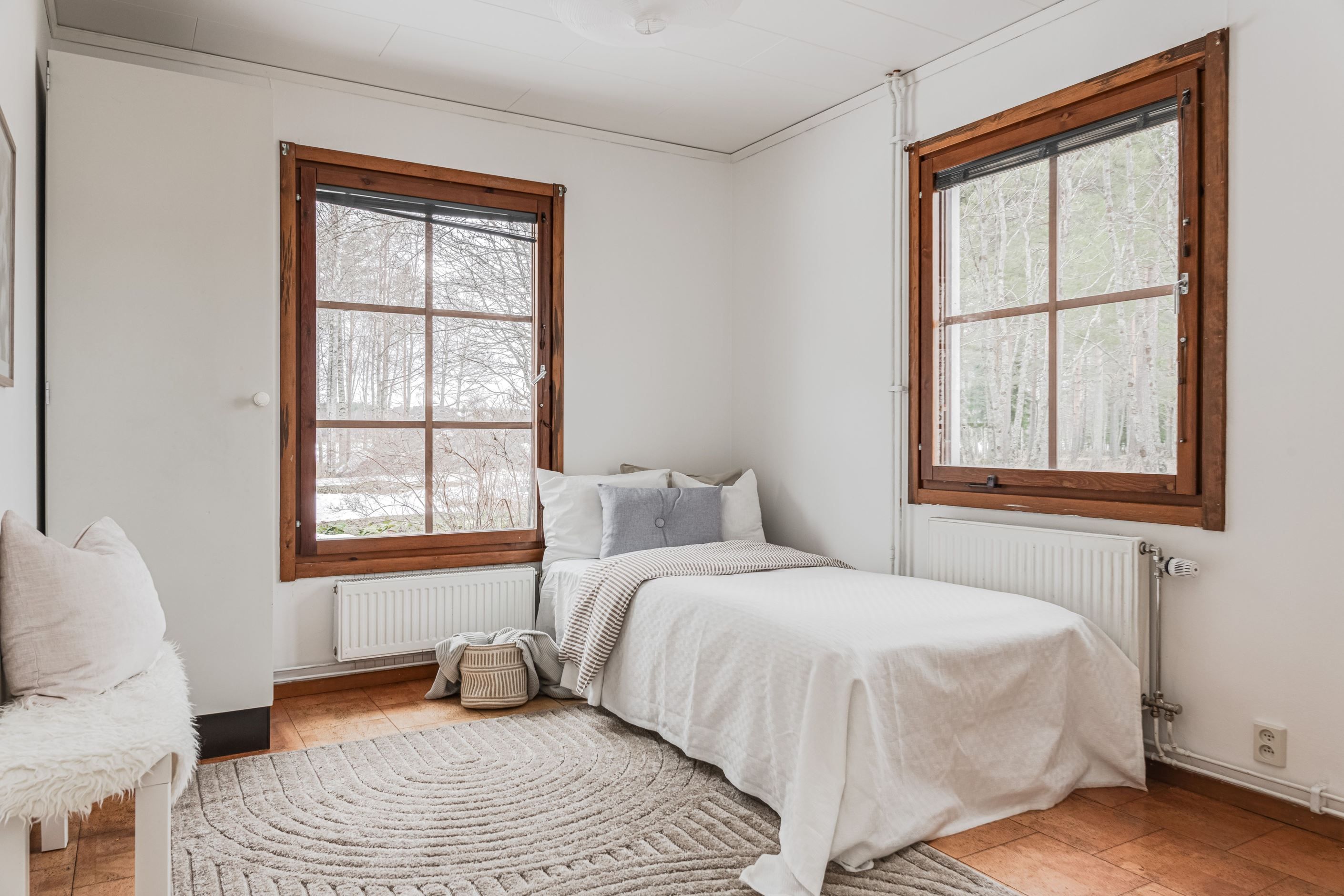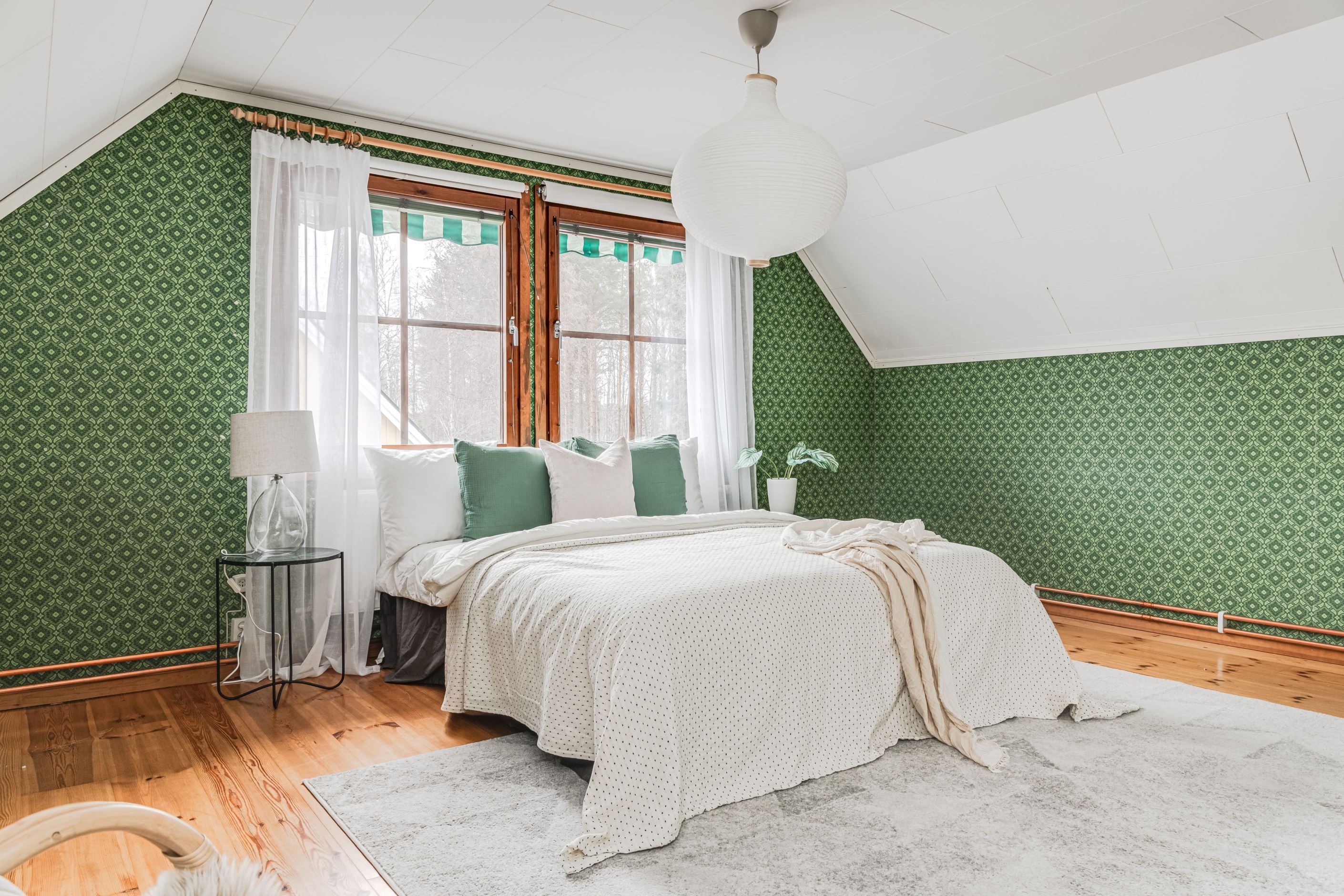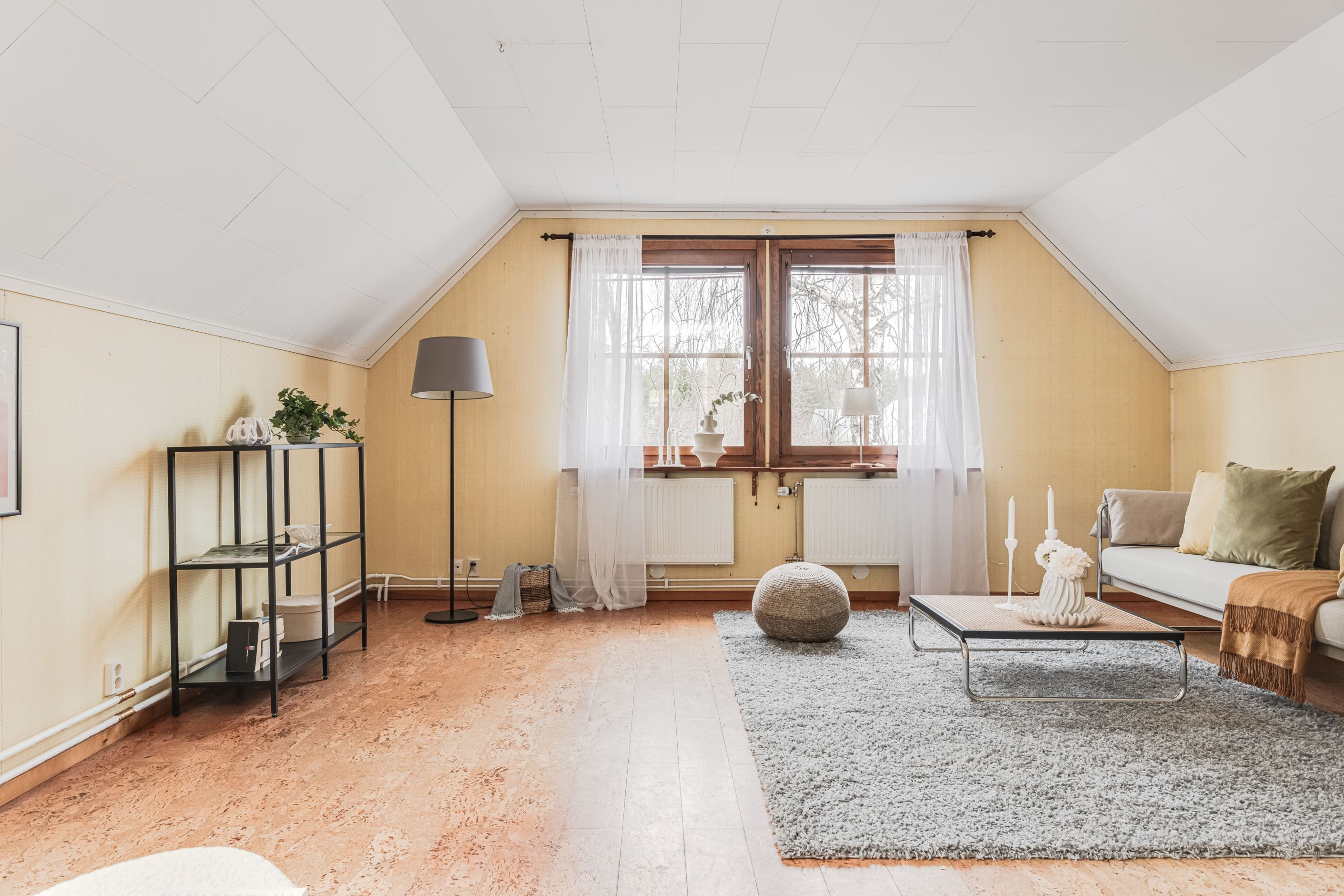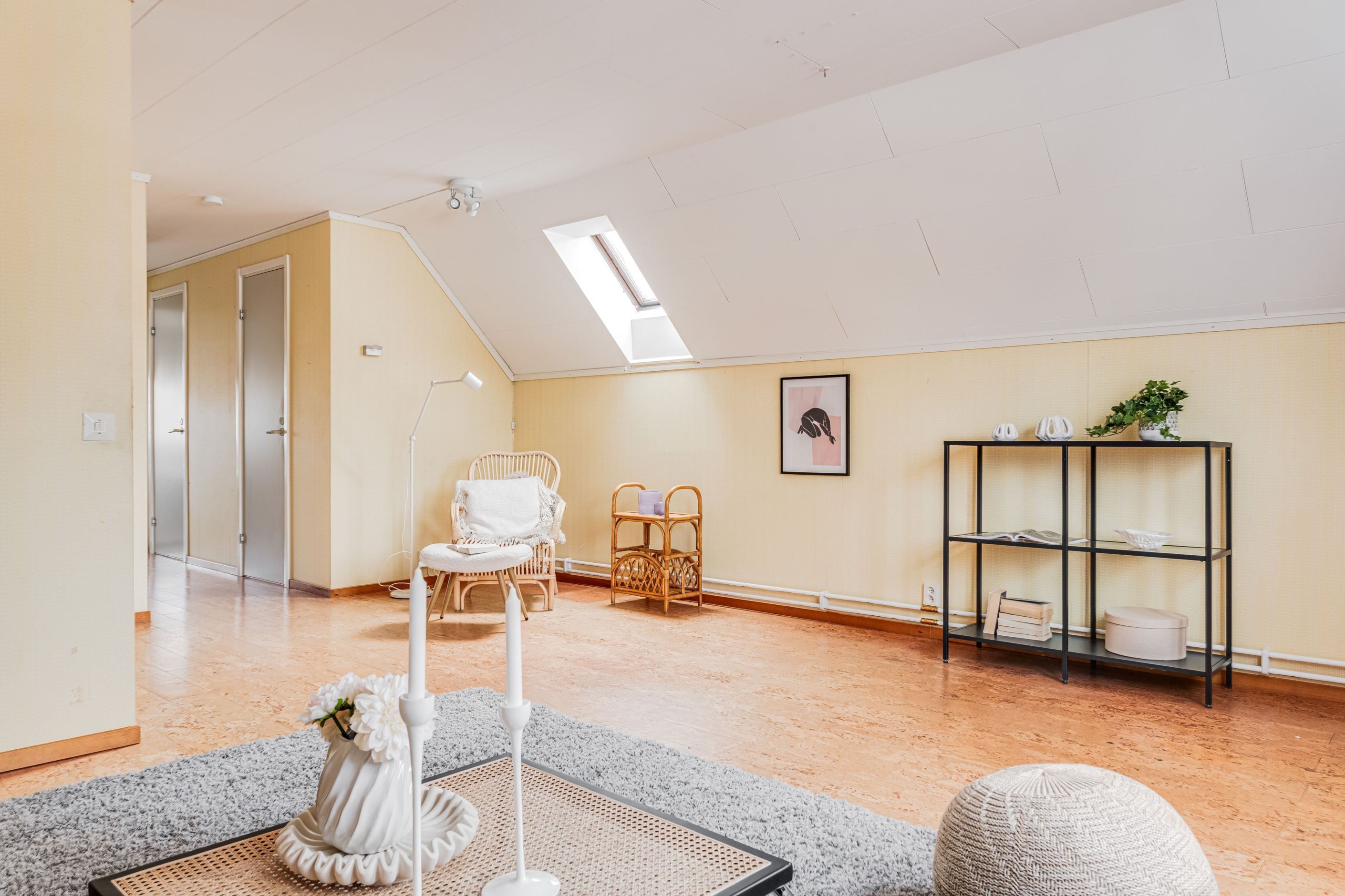 Planlösningen är väl disponerad med gott om förvaring, bland annat i klädkammare på övre plan. Takfönster bidrar till ett fint ljusinsläpp och skapar en ljus och luftig känsla. Från vardagsrummet nås den stora, grönskande trädgården med utsikt mot vattnet och närhet till trevliga gångstigar längs skogen.