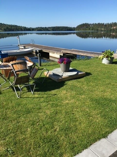 När väl eftermiddagssolens strålar värmer kan du sätta dig på bryggan och vila ögonen på ett flöte med förhoppningar att fixa kvällsmaten som sedan läggs på grillen. Grillkvällen eller kräftskivan avnjuter ni med fördel i det inglasade uterummet som erbjuder obruten utsikt mot sjön.