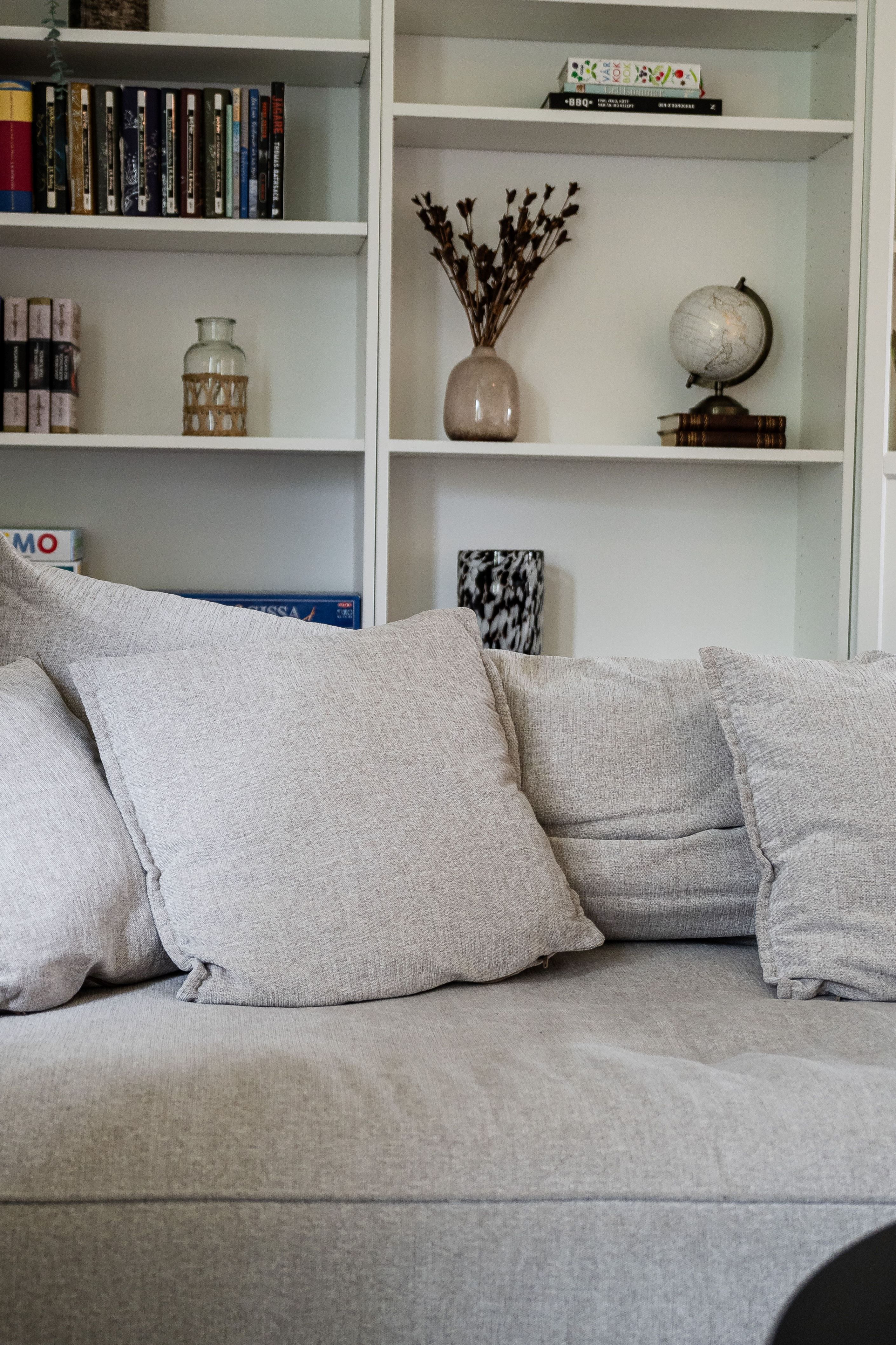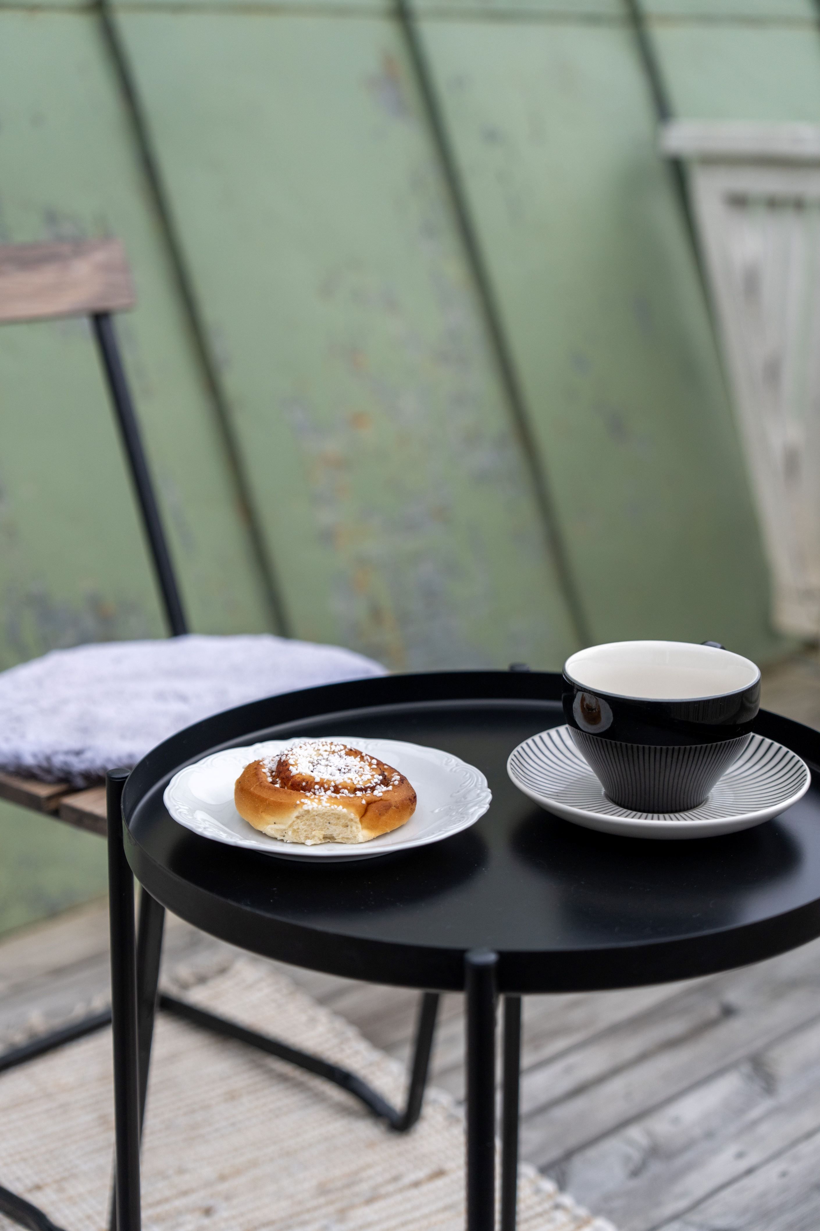 Via fönsterpartier i både öst- och söderläge kommer mängder med solljus in i rummet och känslan är därför hemtrevlig och det höga taket bidrar till en luftig och gemytlig atmosfär.