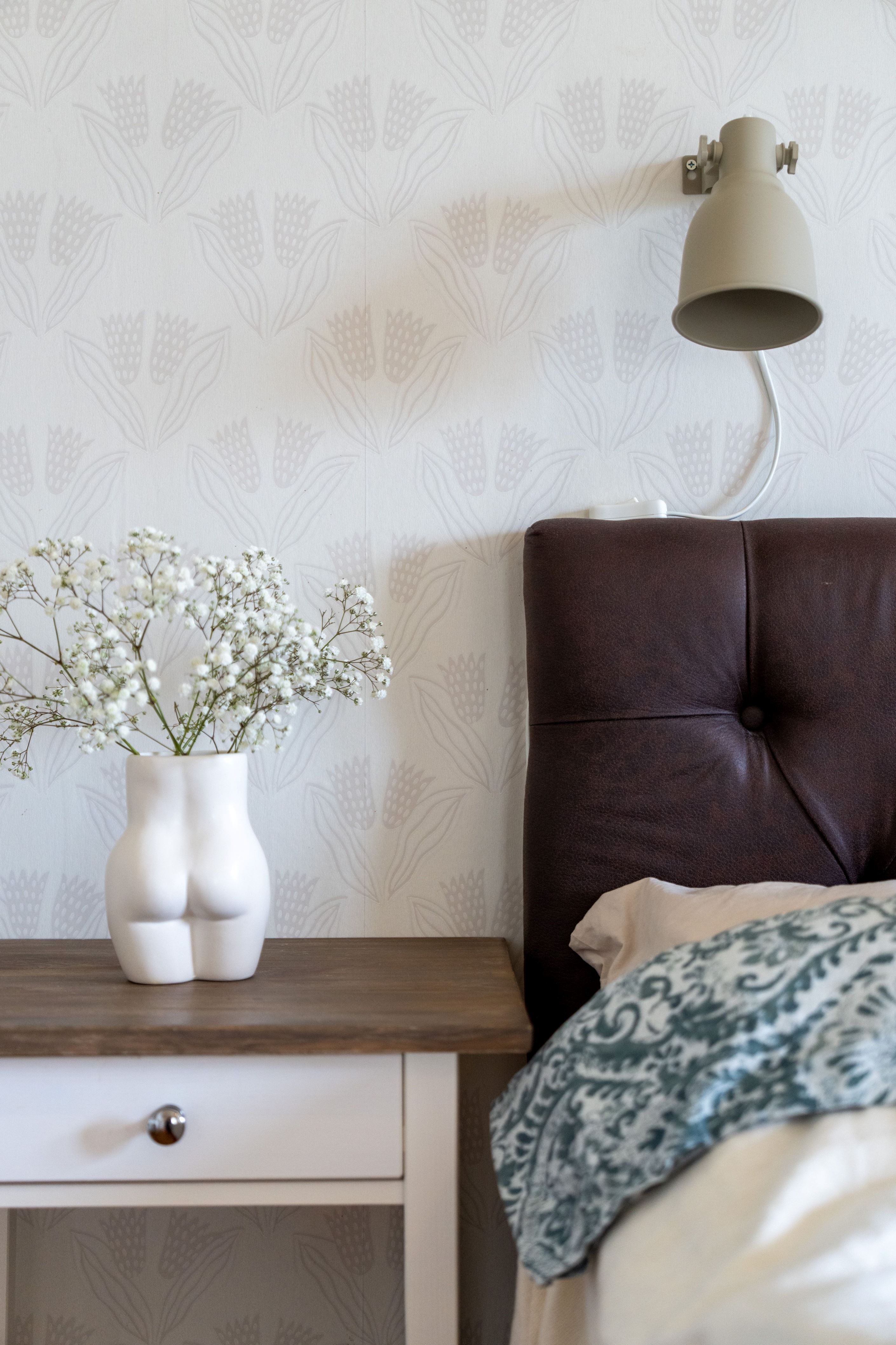I detta sovrum rymmer du både dubbelsäng tillsammans med tillhörande sängbord samt annat önskvärt möblemang.
