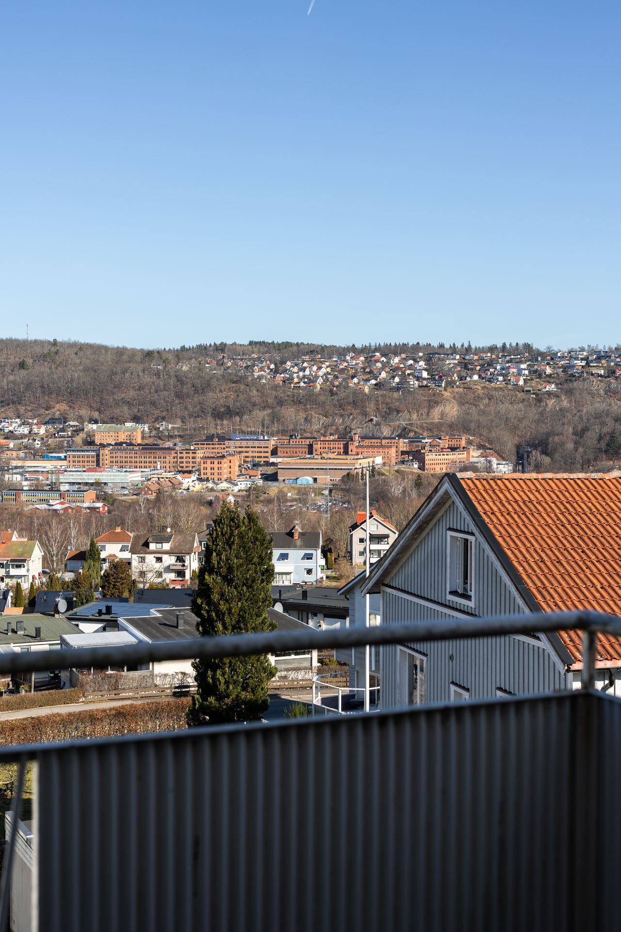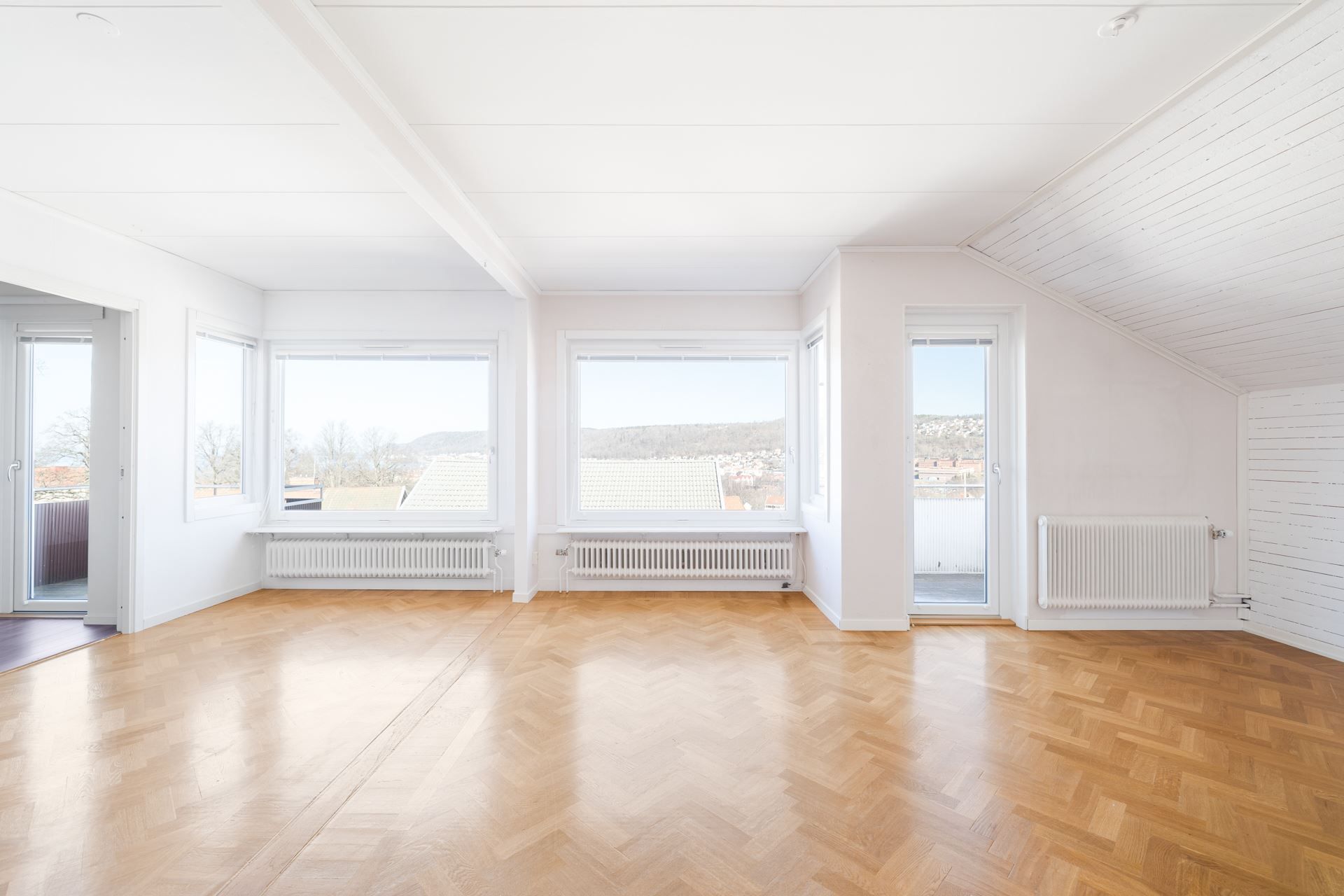 Bostadens hjärta är det generösa allrummet där stora fönster släpper in rikligt med ljus och förstärker känslan av rymd. Här finns gott om plats för både en större soffgrupp och ett matbord för trevliga middagar och sociala tillställningar. Från allrummet kliver du ut på balkongen där utsikten över Huskvarna och Vättern breder ut sig – en plats att koppla av på och njuta av omgivningarna.