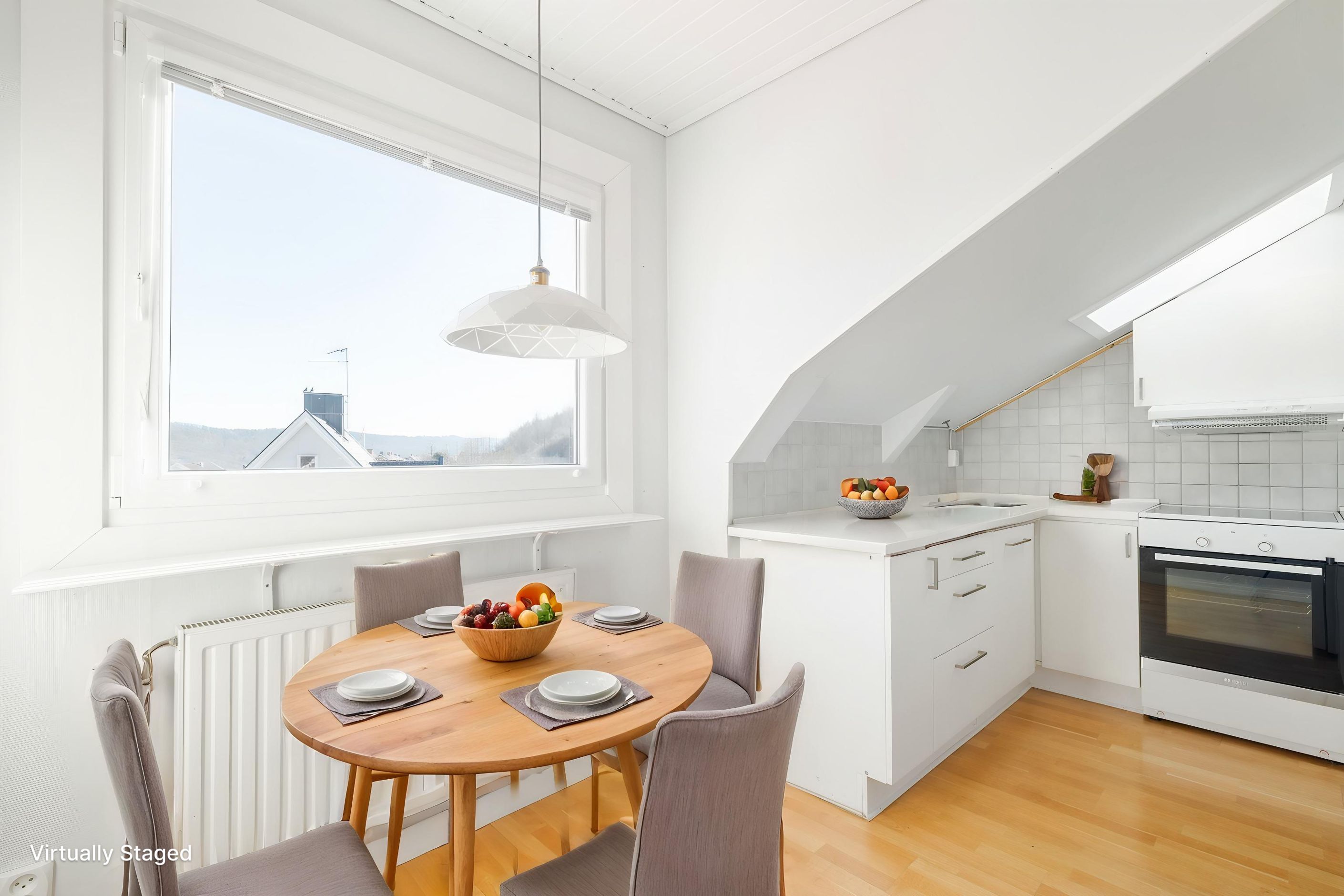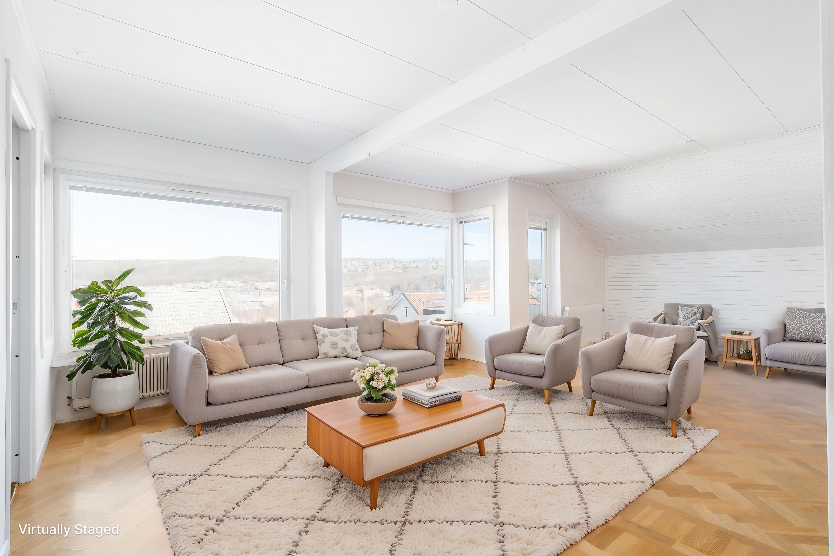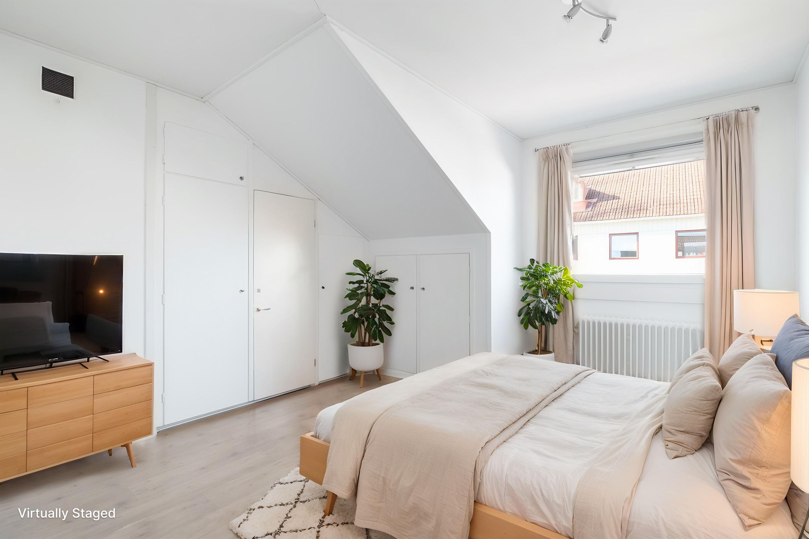 Högst upp i huset på Sturegatan 54 väntar denna ljusa och välplanerade trerummare om 75 kvm – ett hem där utsikten spelar huvudrollen. Här bor du helt utan insyn och med en vidsträckt vy över Huskvarna, Vättern och de grönskande omgivningarna. Från balkongen i västerläge njuter du av många soltimmar och vackra solnedgångar som sätter en särskild prägel på vardagen.