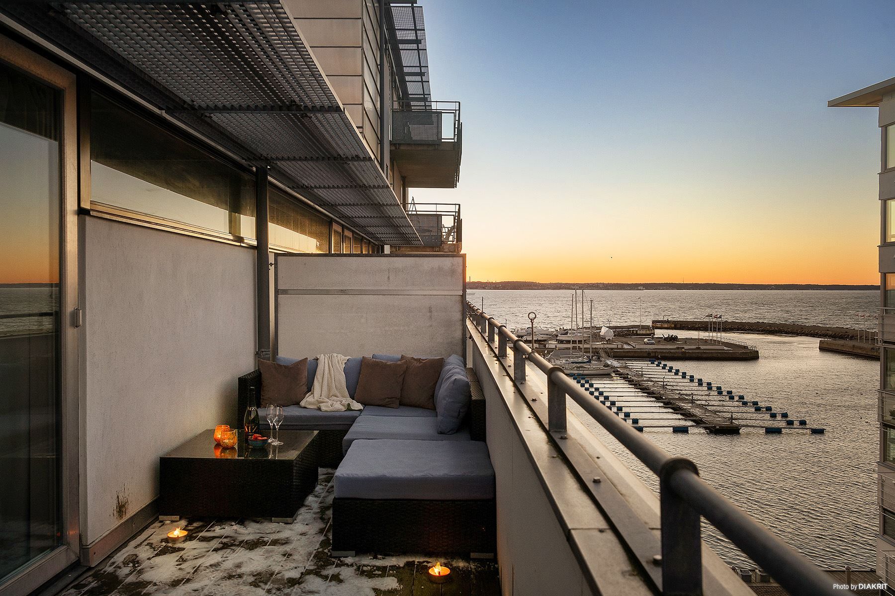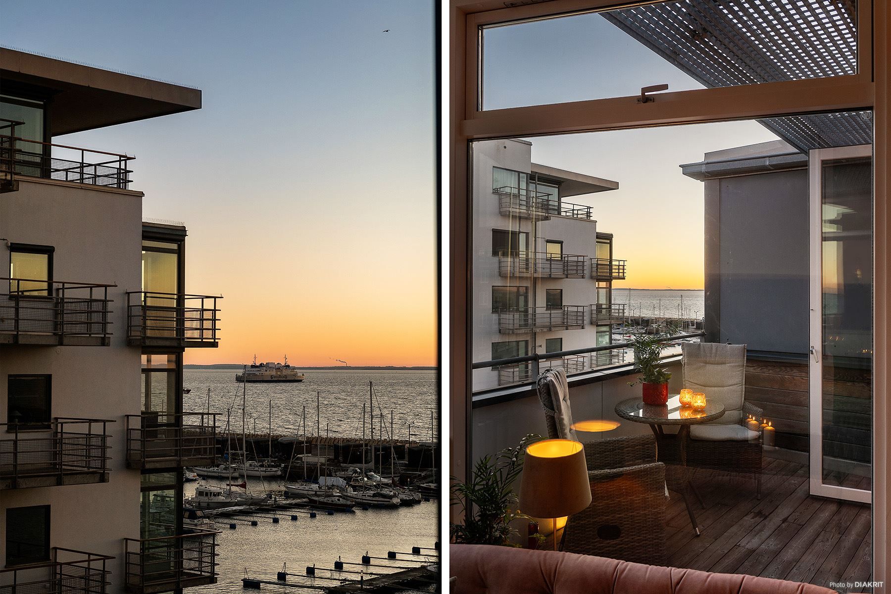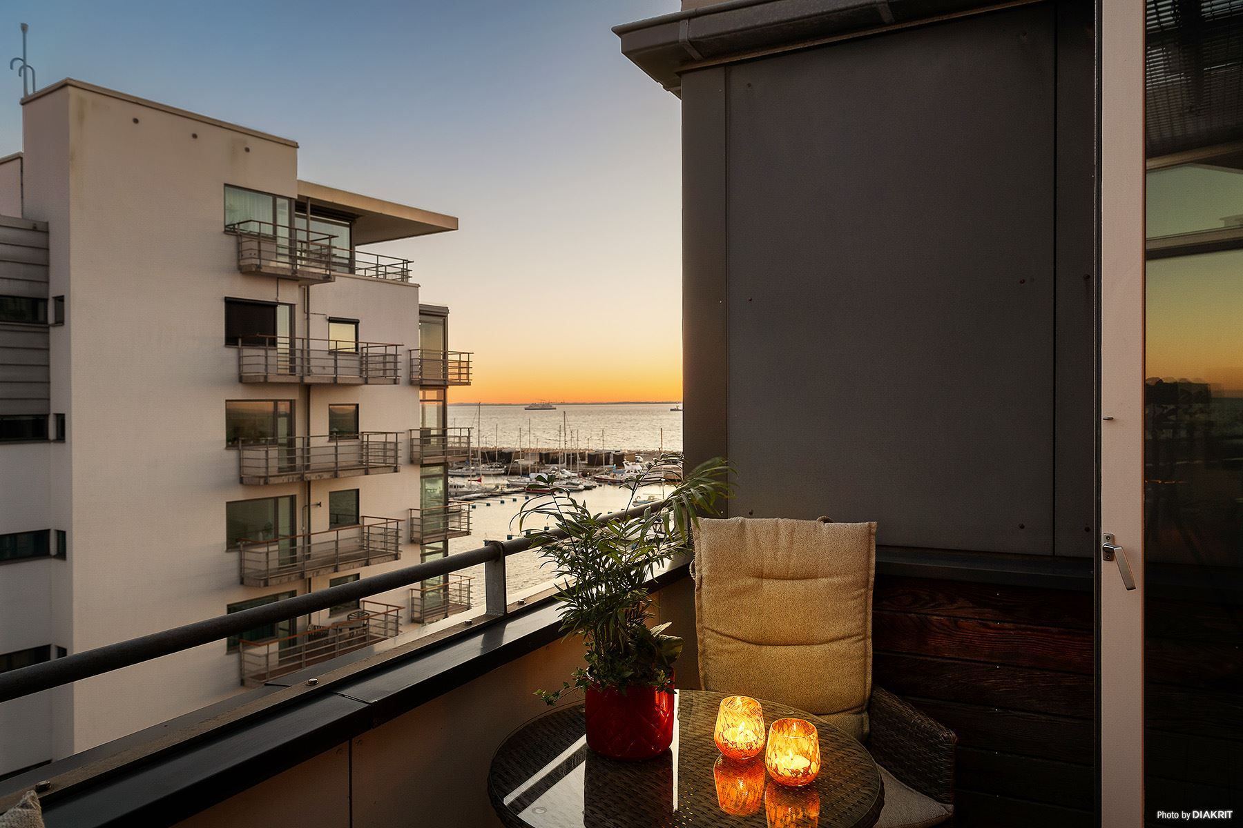 Denna lägenhet, belägen på högsta våningen (5 av 5), bjuder på en hänförande utsikt över Öresund, småbåtshamnen och hamninloppet. Bostaden har tre härliga balkonger med en total yta om 23 kvm. Möjlighet finns att förvärva en friköpt garageplats i källaren, och en hiss från markplan gör vardagen bekväm.
