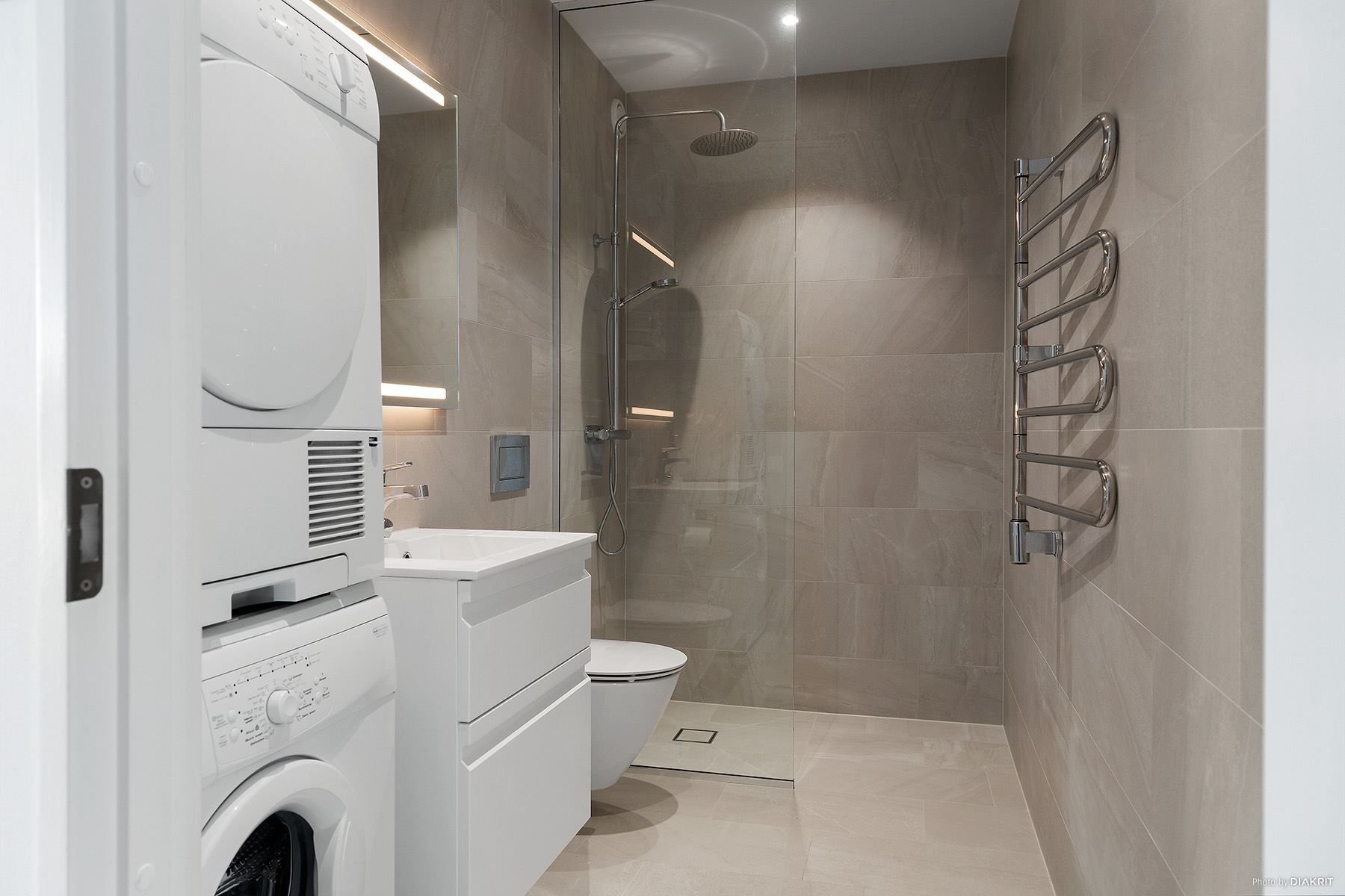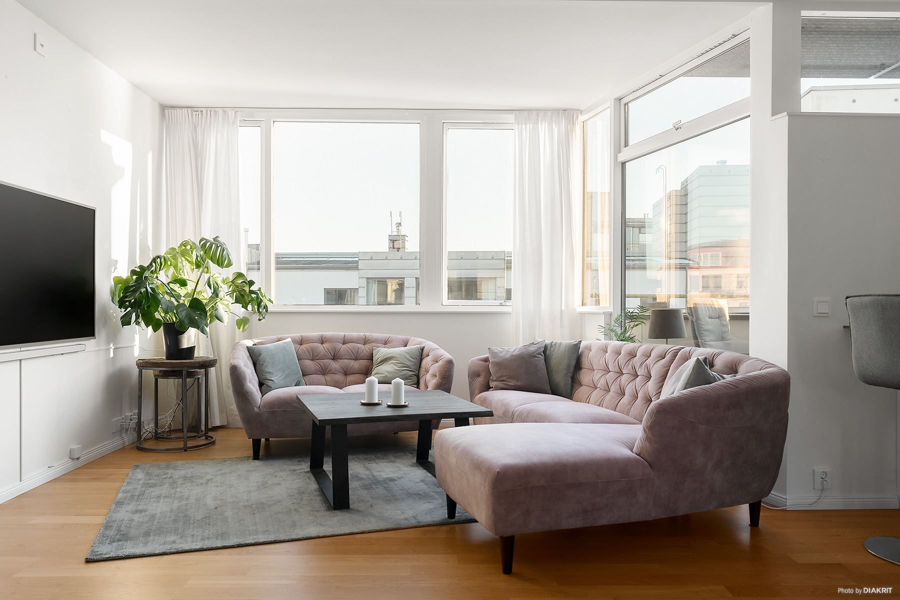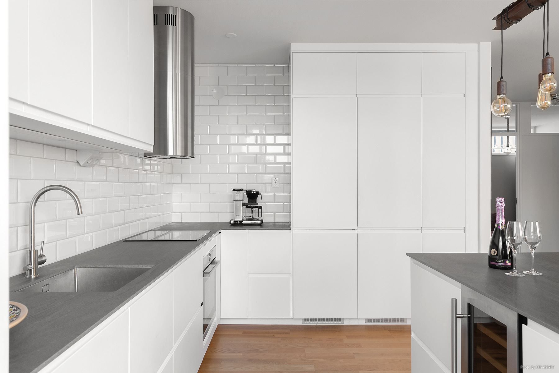 Den optimala planlösningen skapar en rymlig och social atmosfär, där kökets stora köksö smälter samman med vardagsrummet och matplatsen. De stora fönsterpartierna i söderläge ger ett fantastiskt ljusinsläpp, och frånvaron av grannar ovanför garanterar en rofylld boendemiljö.