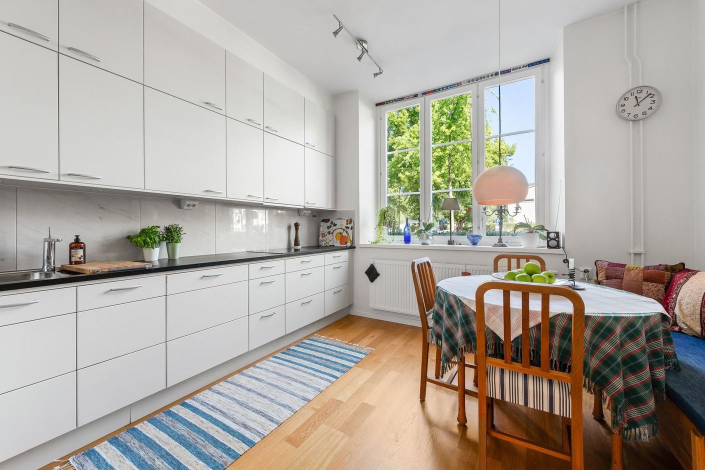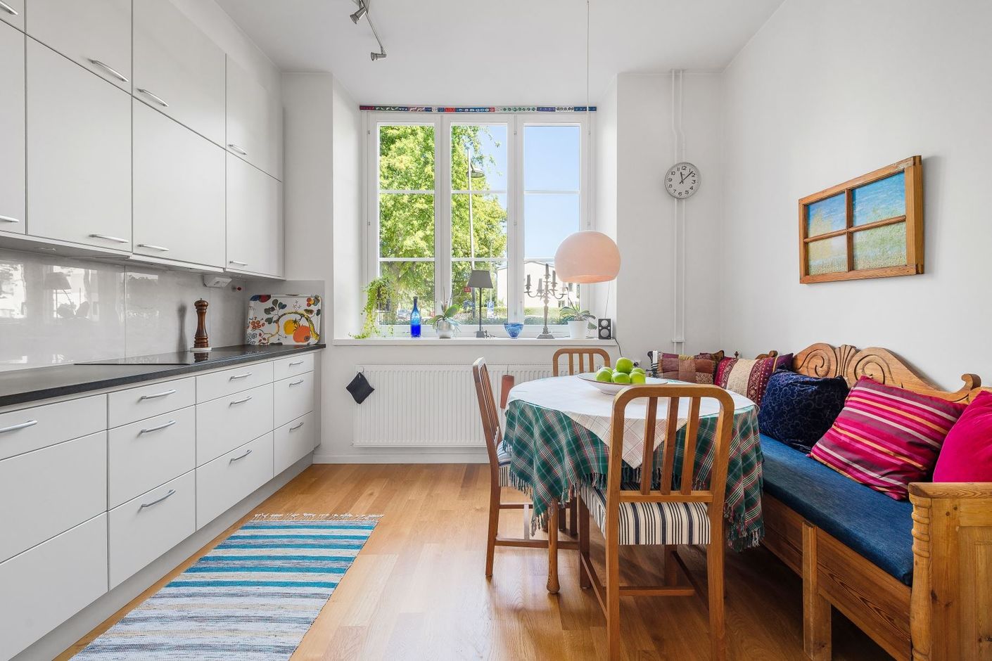 Välkommen till denna smakfullt omgjorda fyrarummare som nu erbjuder en luftig och välplanerad 3:a i gott skick! Den genomgående planlösningen, med generösa fönsterpartier, skapar ett härligt ljusinsläpp samtidigt som du njuter av minimal insyn – perfekt för den som söker lugn och ro i hemmet. Den stora uteplatsen i rakt söderläge är något alldeles extra. Här kan du njuta av solen från morgon till kväll med utsikt över gröna Klockhusparken – en perfekt plats för både avkoppling och sociala stunder. Vardagsrummet är rymligt och lättmöblerat med plats för både soffa, TV-hörna och läshörna. Köket håller hög standard med modern utrustning, gott om arbetsytor och plats för matbord intill fönstret. Bostaden erbjuder två generösa sovrum – varav det ena enkelt kan delas upp i två för dig som behöver ett extra rum (se alternativ planlösning). Två helkaklade badrum i modern stil, varav det ena är utrustat med både tvättmaskin och torktumlare – en bekvämlighet som verkligen uppskattas i vardagen.
