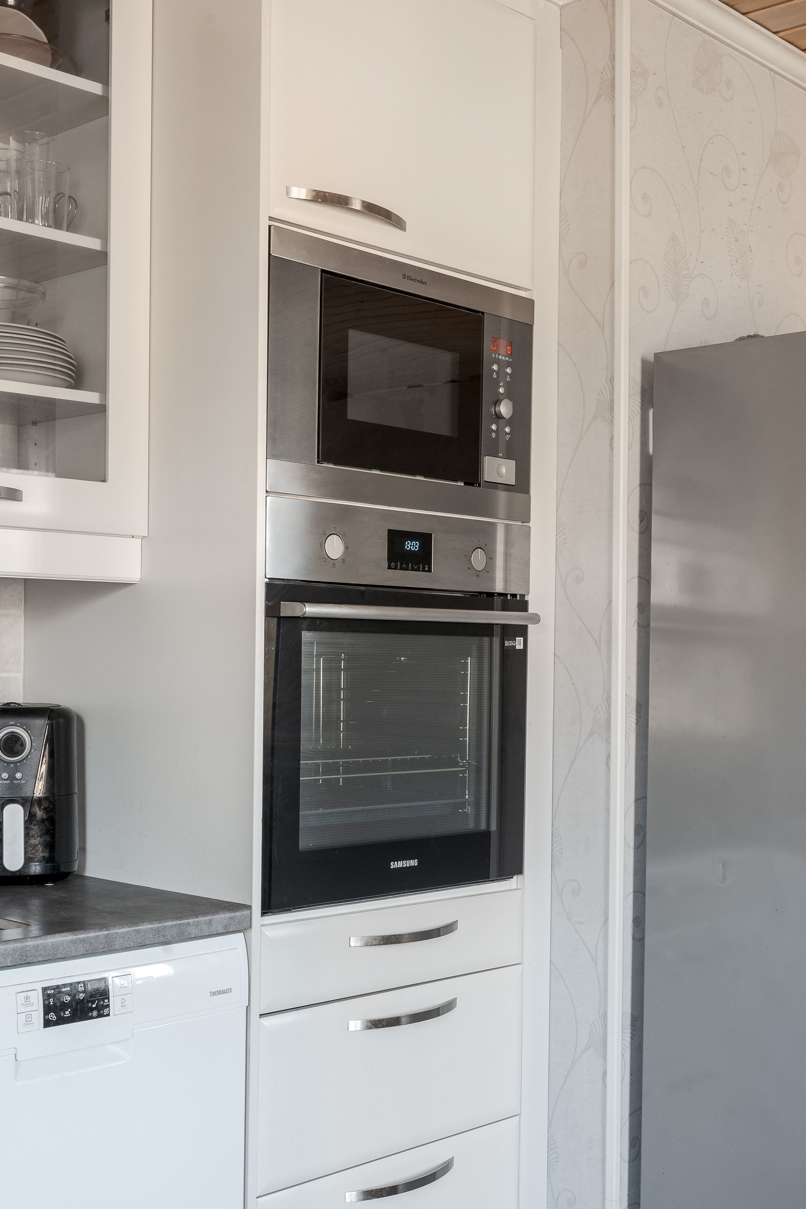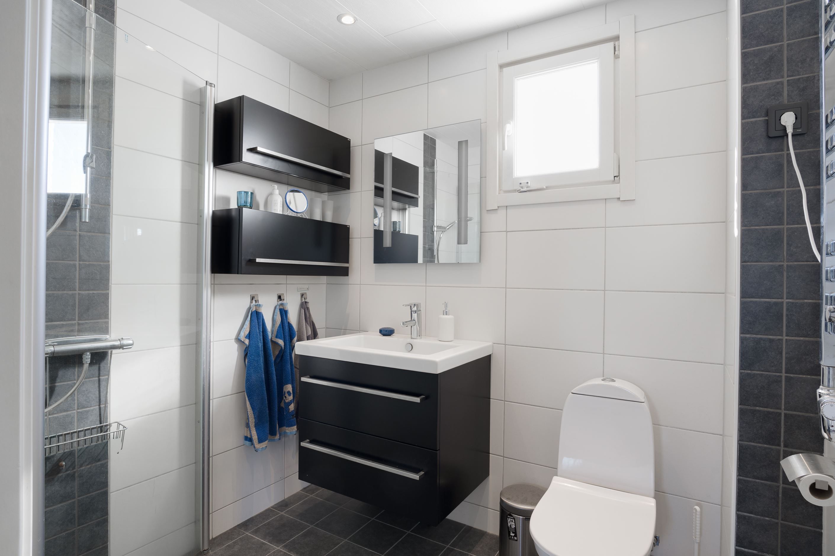 Källaren, med egen ingång, rymmer tvättstuga, teknikrum, förråd och ett extra rum som kan användas som gästrum, ateljé eller verkstad – en flexibel och praktisk yta för olika behov samt garaget med fjärrstyrd port.