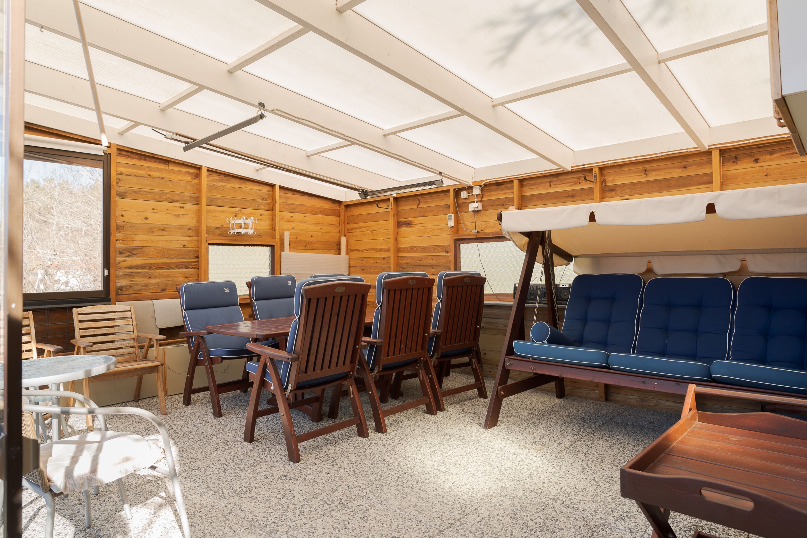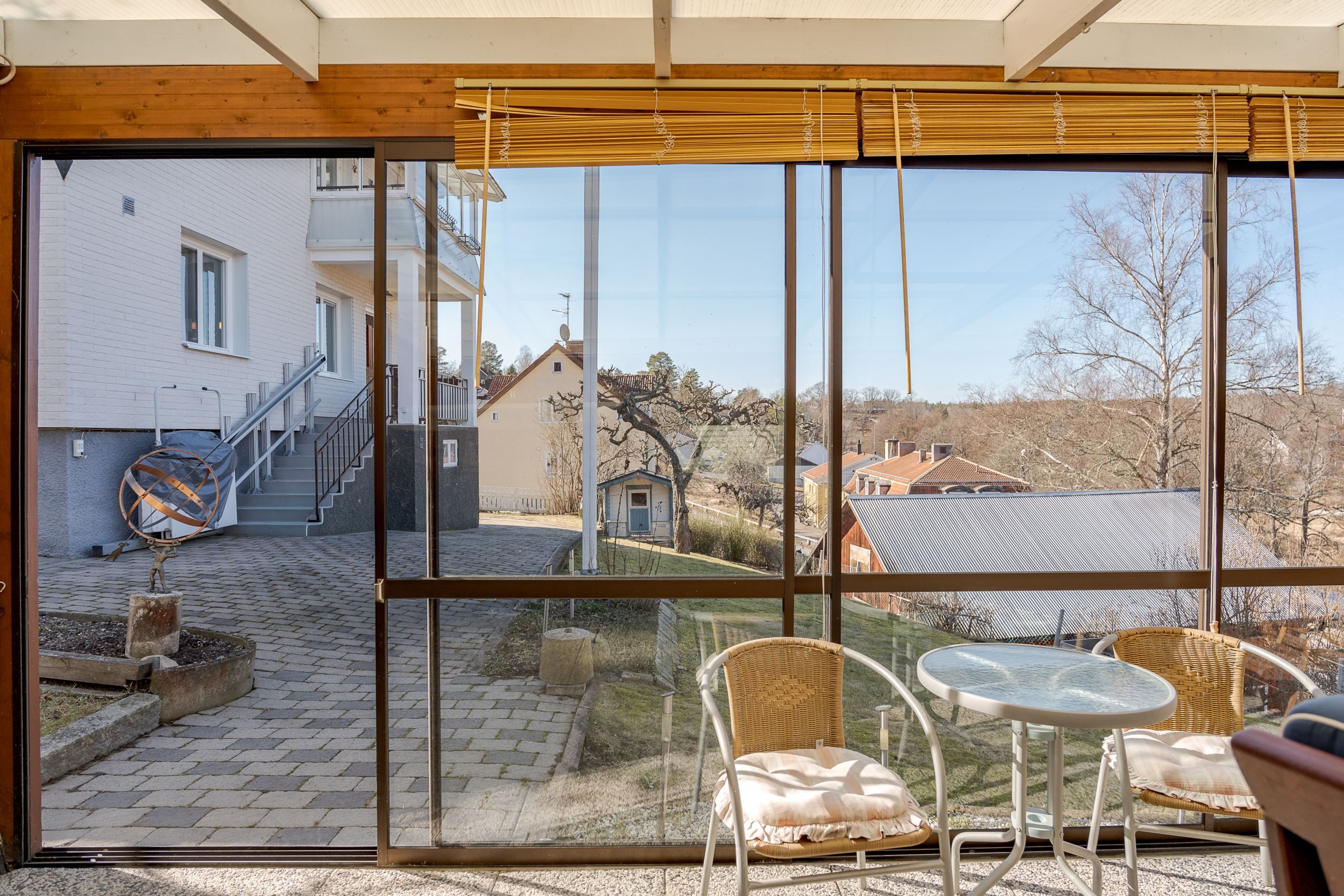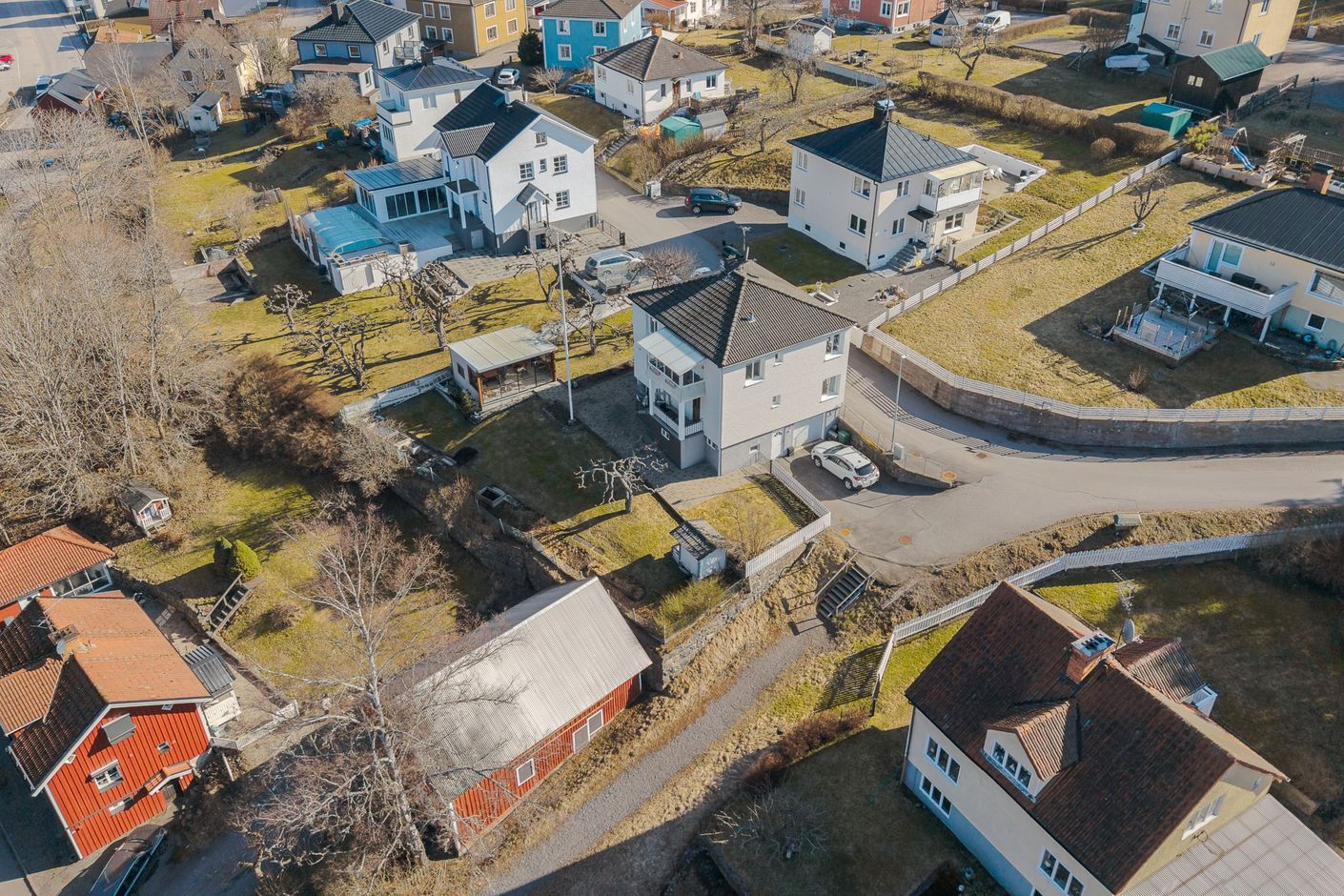 Tomten är välplanerad med gräsmatta, planteringar och ett generöst uterum. På tomten har man solchanser från morgon till kväll i olika vädersträck. Här finns plats för både loungemöbler, matgrupp och grill – sommarhalvåret gör sig extra bra just här. På uppfarten finns plats att parkera bilen om man inte väljer att köra in i garaget. Staket runt om hela fastigheten är smidigt för barn och husdjur.