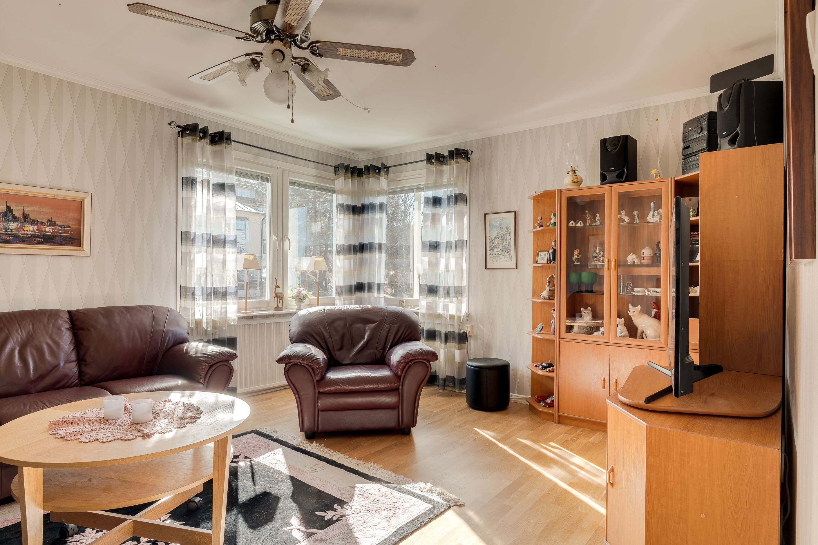 Bostaden är disponerad över entréplan, övre plan samt källare, med en total boarea om 163 m² och 81 kvm biarea. Här finns 4 sovrum, rymliga sällskapsytor och gott om plats för hela familjen. Denna trevliga och vackra bostad har bla nyare 3-glas fönster från Tiivi, tilläggsisolerad tegelfasad, bergvärme, fiber indragen och fina golv och ytskikt. Fastigheten är välskött och i ett väldigt bra skick!