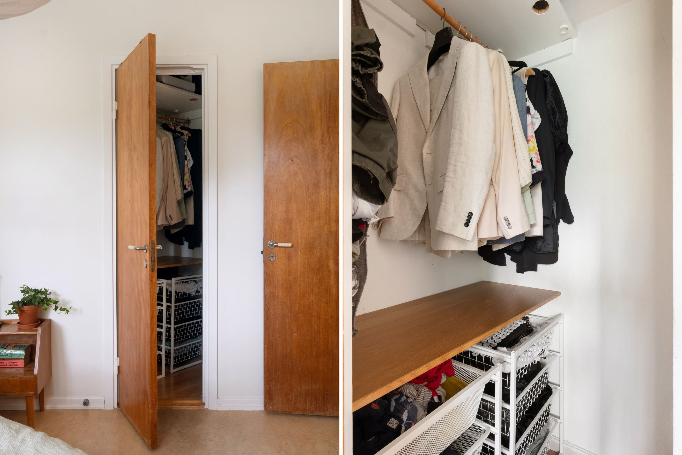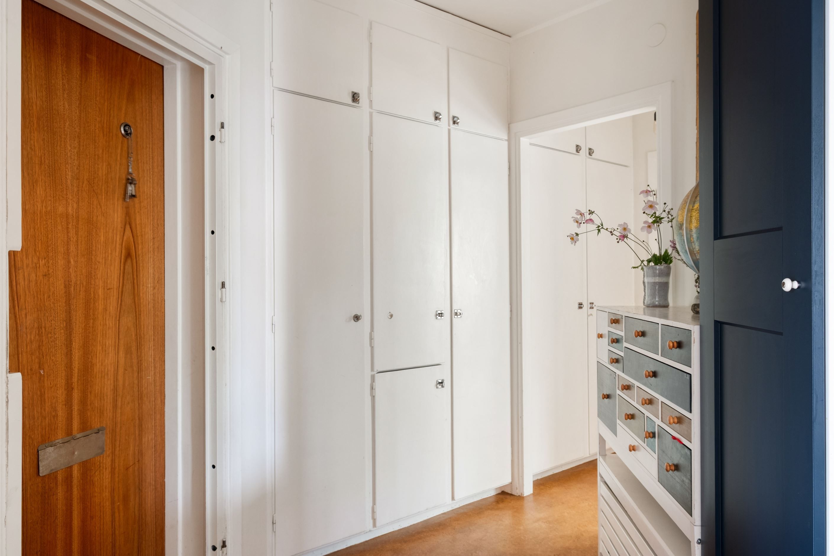 Förvaringsutrymmena är utomordentliga tack vare flera platsbyggda originalgarderober med tillhörande överskåp.