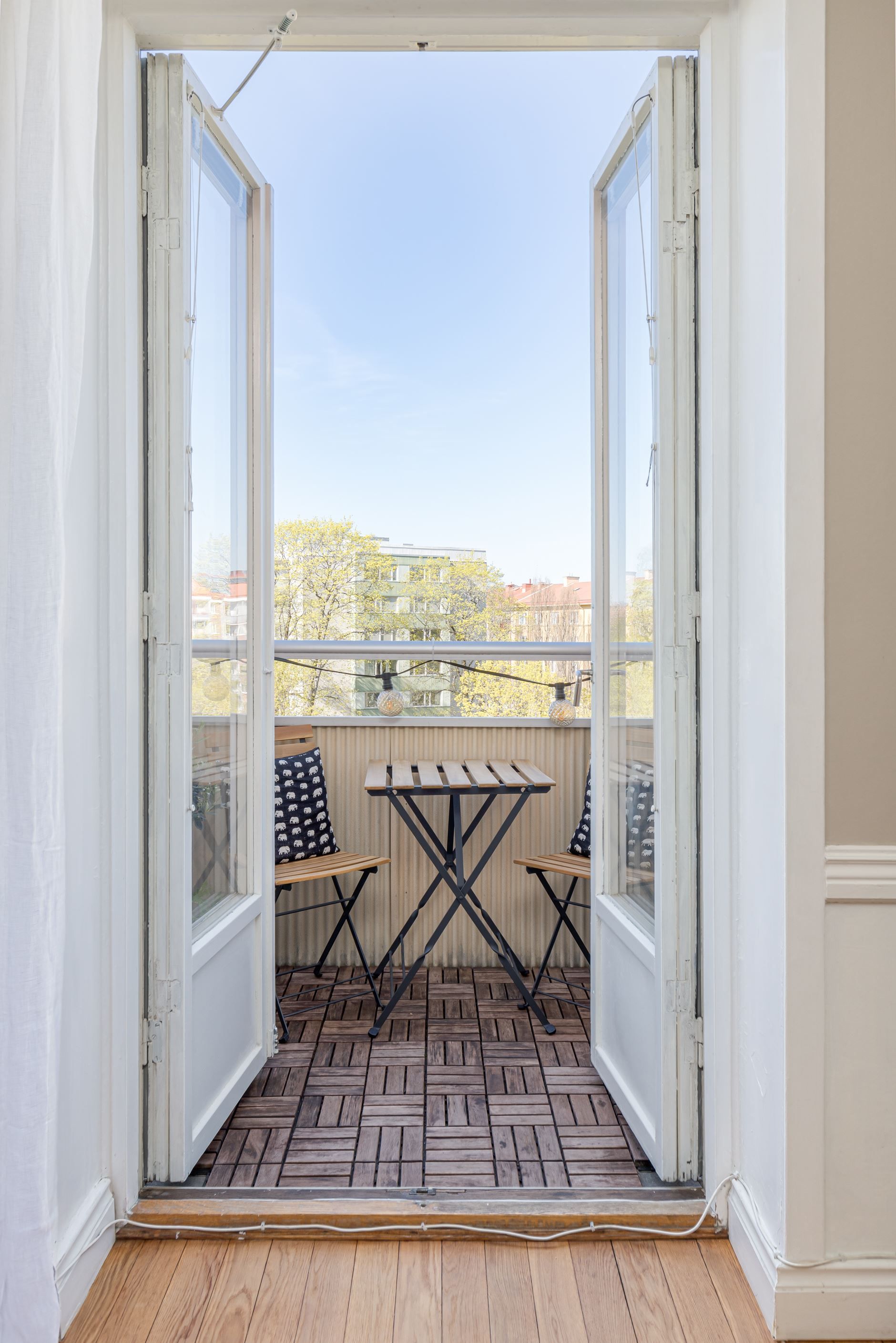 När du kliver in möts du av härlig stavparkett i ek som ger en elegant och tidlös känsla i vardagsrum och hall. På balkongen kan du njuta av avkopplande stunder medan du beundrar den vackra utsikten och tack vare det nyinstallerade uttaget kan du göra det extra mysigt med hjälp av en ljusslinga.