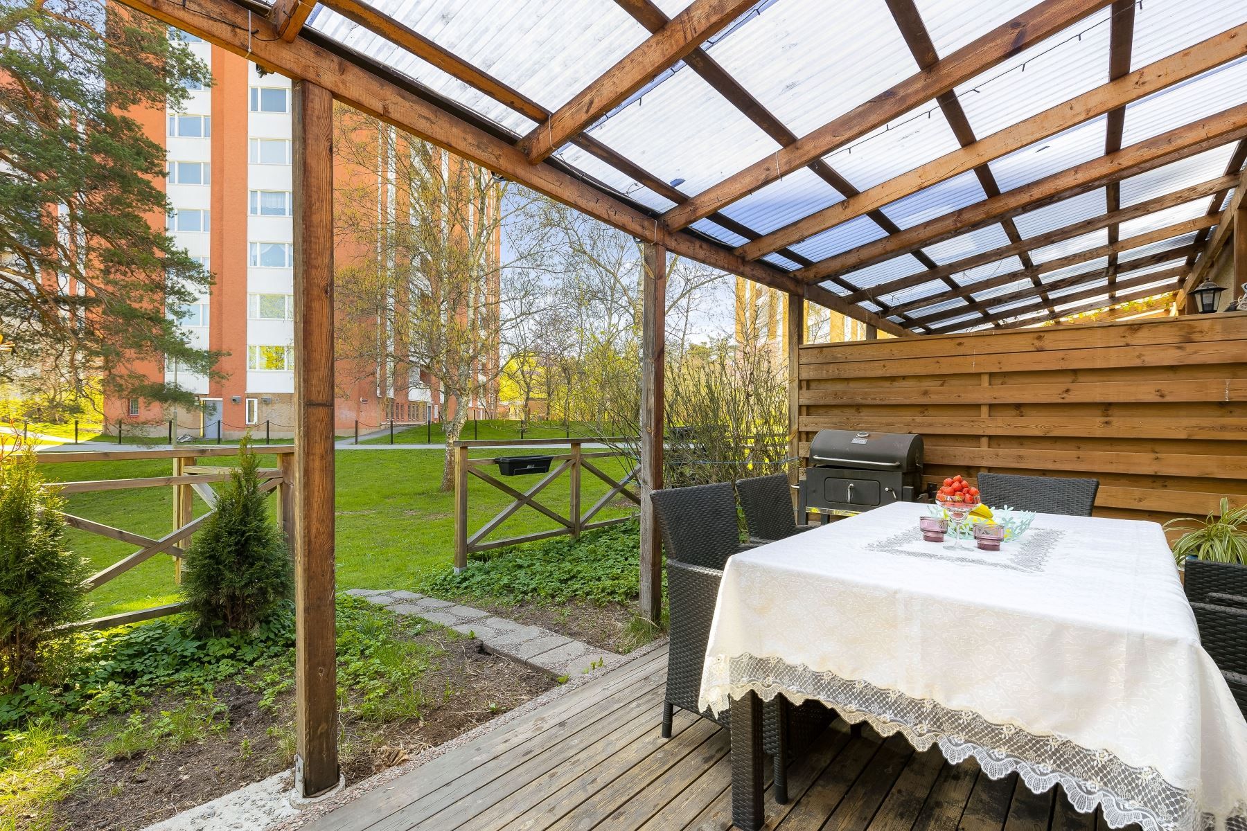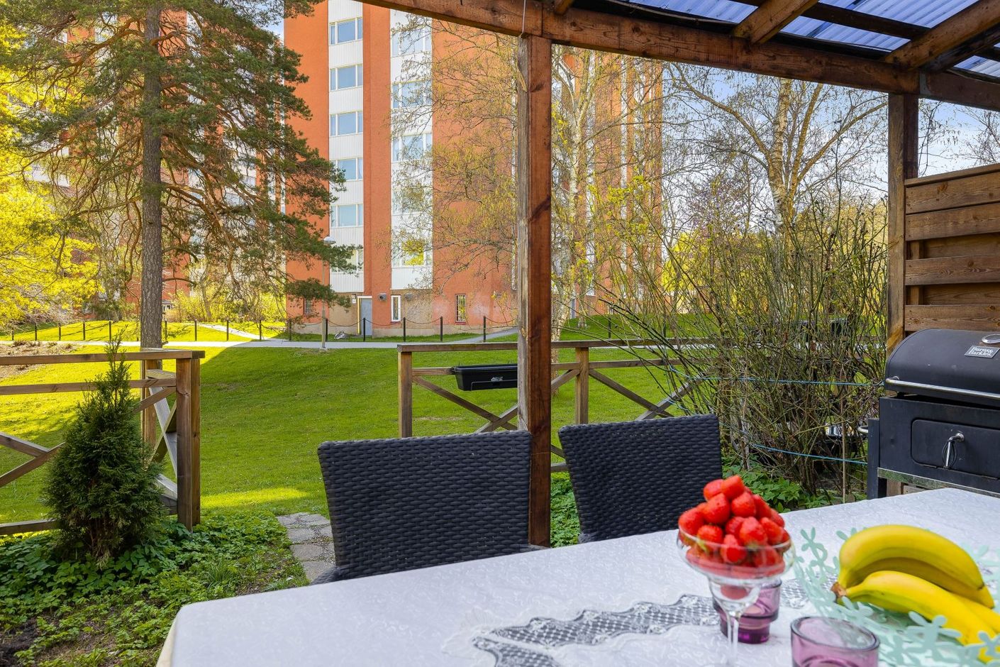 - Renoverat radhus med ett av Akallas bästa och mest centrala läge! På husets baksida finns en fin tomt med träaltan och därefter en stor gräsyta för barnen att kunna leka på. Runt hörnet har du Saimaparken och Nystadsparken med lekplatser, fotbollsplan och plaskis-bassäng! Invändigt är huset i bra skick med fräscht kök och badrum samt gäst-wc! Omtyckt planlösning med 3 stora sovrum samt en klädkammare på övre plan. På entréplanet finns de sociala rummen i form av kök, matplats och vardagsrum. Här finns även en extra wc samt gott om förvaring i garderober och under trappen.