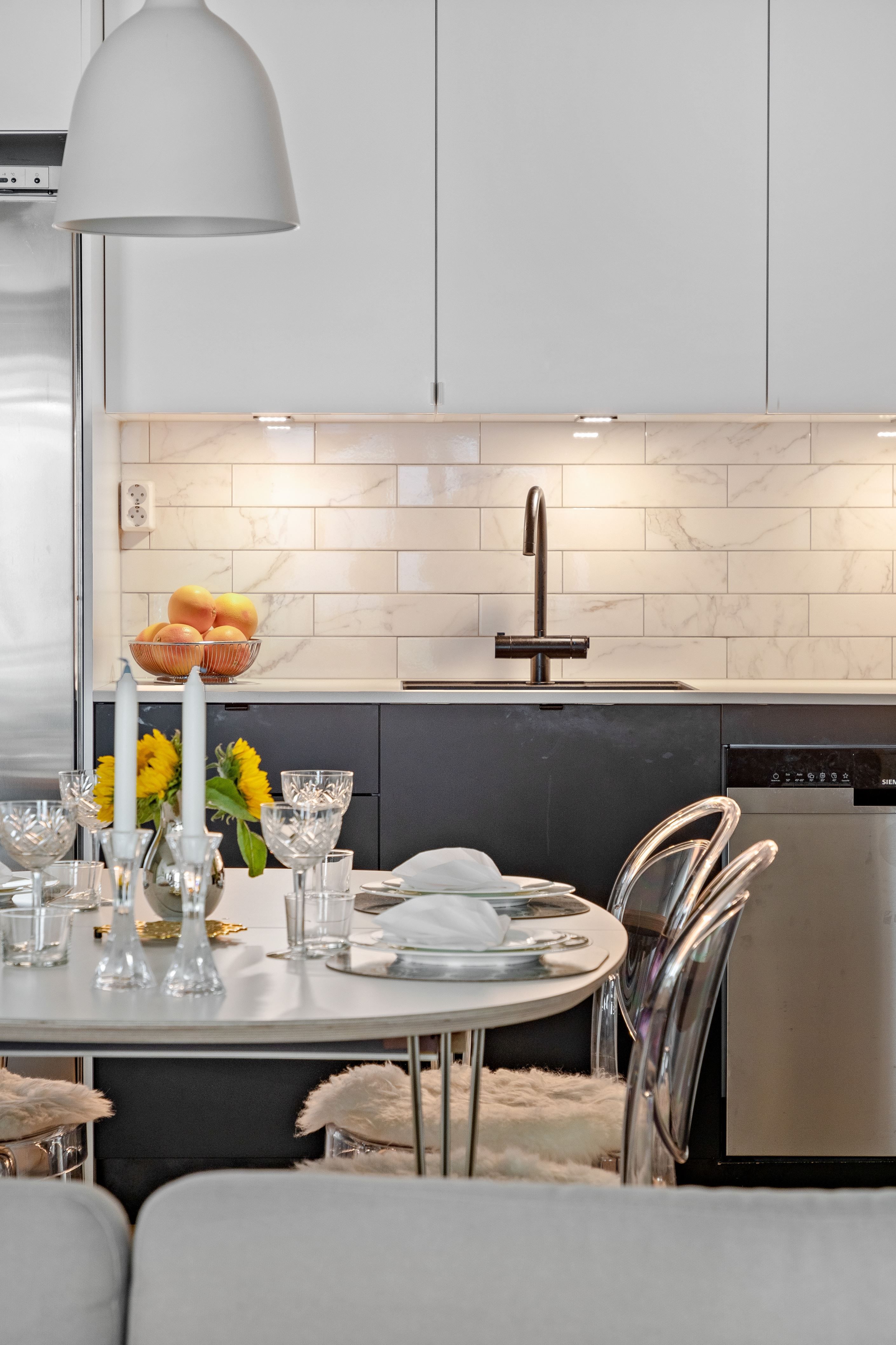Redan i hallen möts du av en genomtänkt planlösning med gott om förvaring. Det öppna vardagsrummet och köket skapar en social yta där ljuset flödar in genom stora fönsterpartier. Köket är modernt och funktionellt med full maskinell utrustning och generösa arbetsytor – perfekt för både vardagsmatlagning och helgmiddagar.